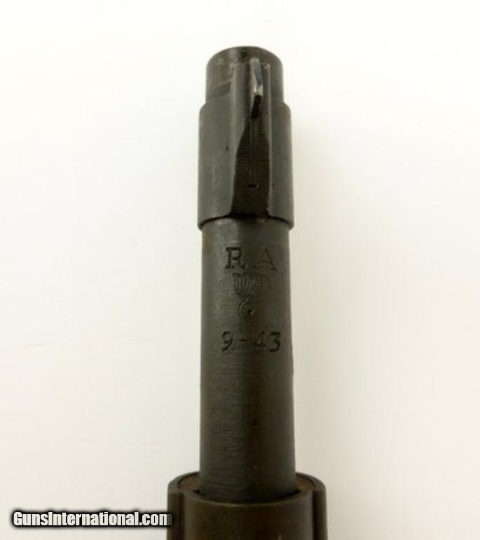 Description: Remington Arms 03-A3 .30-06 Sprg caliber rifle. September 1943 barrel date. Excellent barrel. All Remington parts. Has the FJA cartouche on the left side of the stock and a P firing proof at the wrist. Excellent wood. 98% metal finish. Excellent condition. SOLD Curio/Relic: Yes |