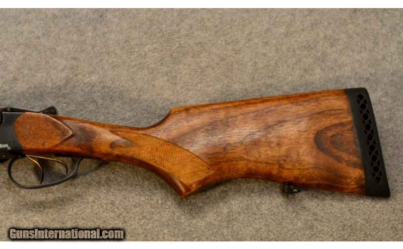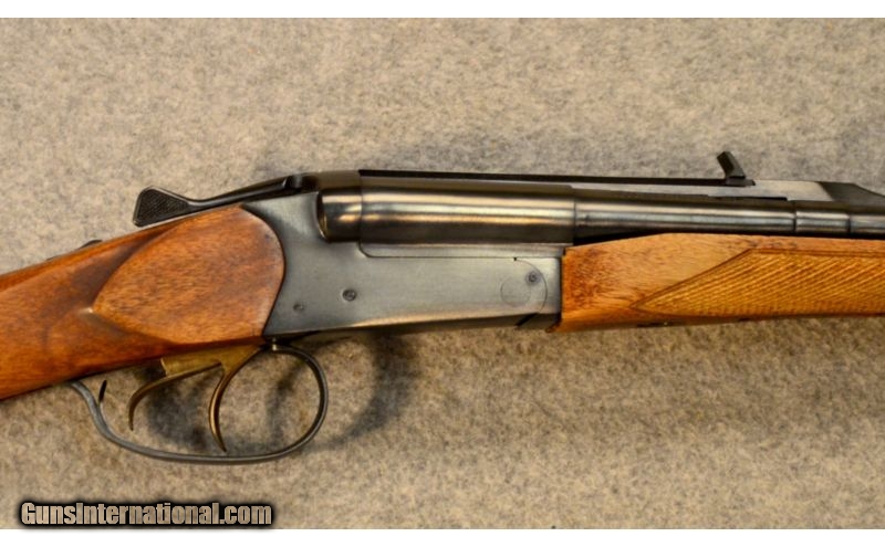 Description: This is a pre-owned SXS rifle. SOLD Caliber Info: .45-70 Government Metal Condition: Excellent condition with no visible damage. Wood Condition: Excellent condition with 1 small dent on the right side of the stock, near the bottom by the recoil pad. Bore Condition: Clean with bright lands. Barrels: 23 ½ inch. Triggers: Double triggers. Stock: Checkered walnut stock with sling swivel. Stock Dimensions: 14 1/8 inch LOP. Fore End: Checkered walnut forend. Butt Pad: Rubber recoil pad. Weight: 6 ½ lbs. Sights: Front post with U notch rear and an 11mm scope rail. Item Location: Glendale, AZ |