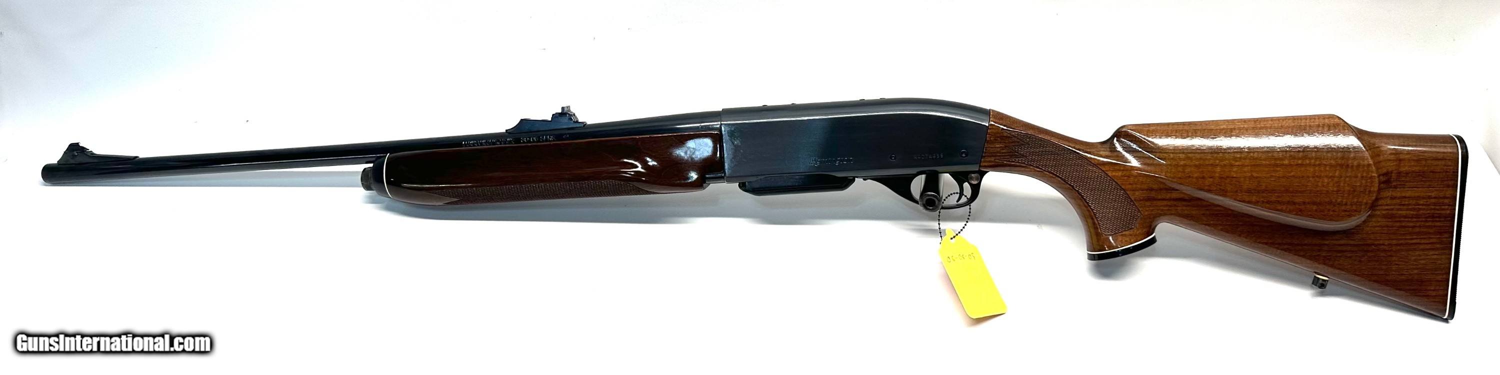 Description: Nice Remington Four rifle. Similar to the 7400 but a little fancier. This rifle is chambered in 30-06 and has a 22" barrel. Bluing only has very minimal handling marks The wood is in very good condition with some very minor swelling where it attaches to the receiver (see pictures) and some scuffling where the sling swivel rode against the wood on the fore end. Has the caliber case head inlayed into the rear barrel lug. Mirror Bore with strong rifling Flat 35.00 shipping No Credit Card Fees SOLD Rifle Caliber: .30-06 Springfield Manufacturer: Remington Model: Four Barrel Length: 22 Condition: Very Good Action: Semi Automatic Manufacture Date: 2008 Item Location: Buxton Maine |