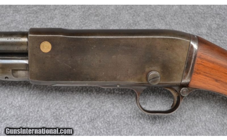 Description: Receiver shows some light old pitting and receiver has turned a grey patina. Bore is bright with strong rifling with a bit of light old pitting. Crack on right side rear behind buttstock. Rear sight is non-original in a new dovetail. Buttsock has been refinished. Forearm is original. Mechanical function is excellent. SOLD Manufacturer: S/N C14XXX Caliber Info: .25 Remington Metal Condition: Good Wood Condition: Good Bore Condition: Good Barrels: 18 Triggers: Original Stock: Uncheckered Walnut Pistol Grip - Refinished Stock Dimensions: 13 7/16" LOP Fore End: Grooved Walnut Butt Pad: Checkered Steel Weight: 7 LB Sights: Bead Front - Non-Original Folding Aperture Rear Item Location: Wheeling, WV |