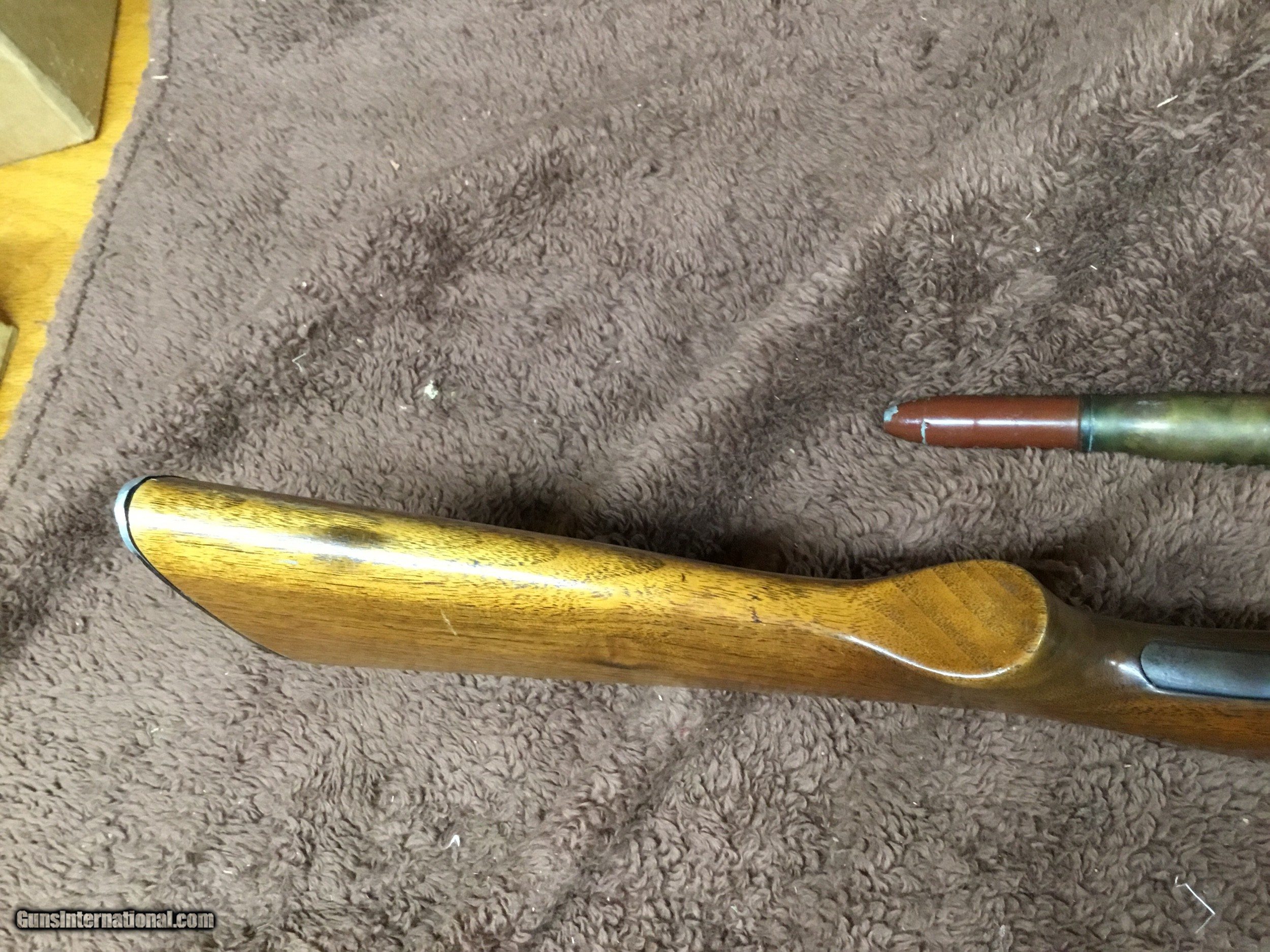 Description: Early Remington Gamemaster model 141..............in 30 caliber gun is super clean ........blue is good and the wood the wood has shallow chip out of top (see pic) drilled and tapped....good job........smooth and tight $499.00...........36.00 to ship Thank you for looking at our items. If it is listed on the site, we still have it in the shop. If you wish to buy, hit buy it now and call the shop to pay. Ask for Bree....... (803) 874-1060. If you are WEST of the Mississippi add $10 more to shipping cost. NO sales to California EXCEPT under certain conditions. If you are in California, please DO NOT push buy it now and just CALL the shop first. ...... (803) 874-1060 NO INTERNATIONAL SALES. SOLD Rifle Caliber: .30 Remington |