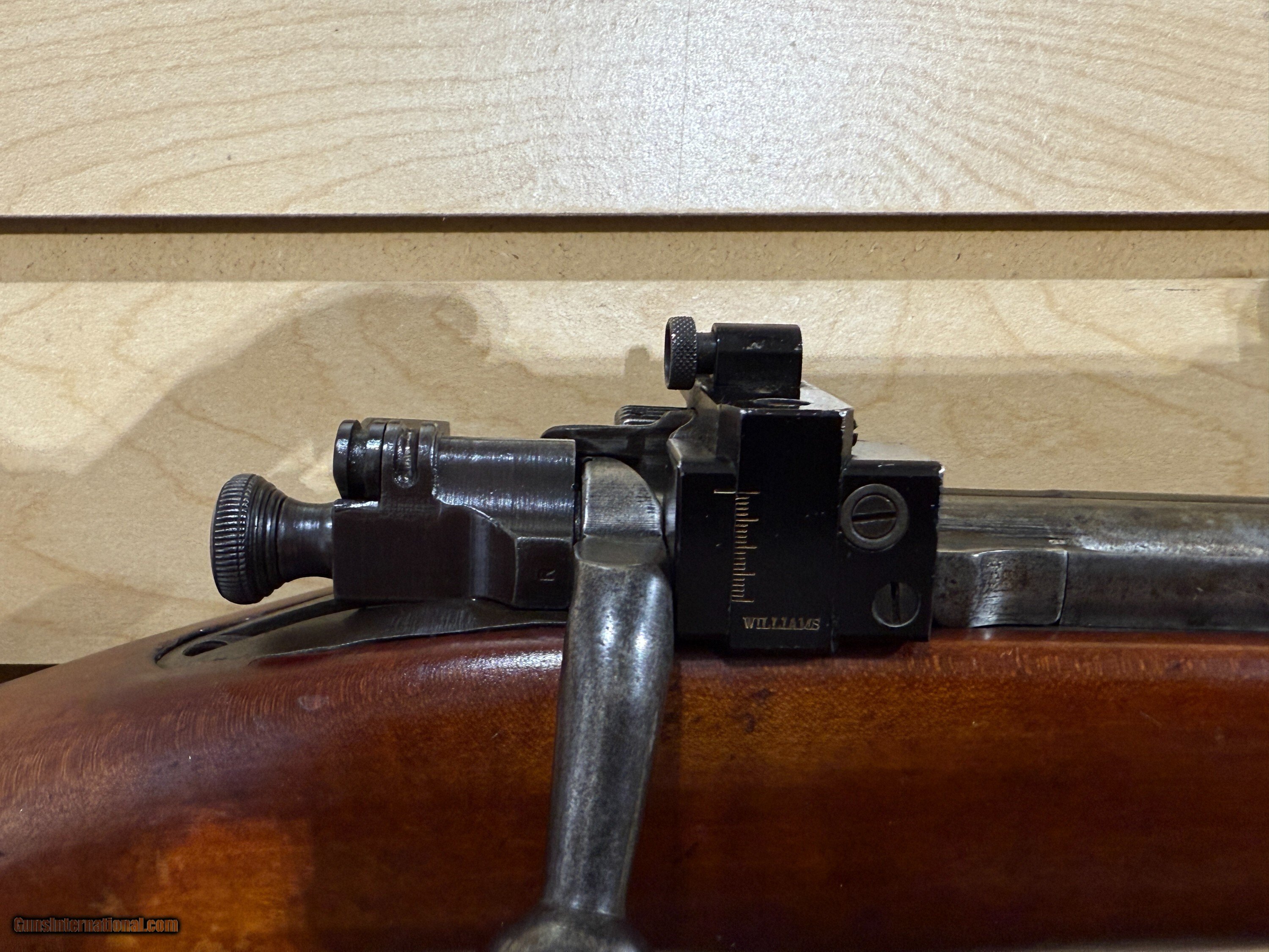 Description: Here we have a Remington Model1903 chambered in 30-06, it has a Williams adjustable rear sight. The M1903 was first used in combat during the Philippine-American War. It also was used as a sniper rifle during World War II, the Korean War, and the Vietnam War. It remains popular as a civilian firearm, collector's piece, a competitive shooting rifle, and as a military drill rifle. This rifle is in good condition, has a clean shiny bore with good rifling. Rifle Caliber: .30-06 Springfield Manufacturer: Remington Model: 1903 Serial Number: 3256228 Barrel Length: 24 Price: $1,325.00 Shipping: $70.00 Contact Seller |