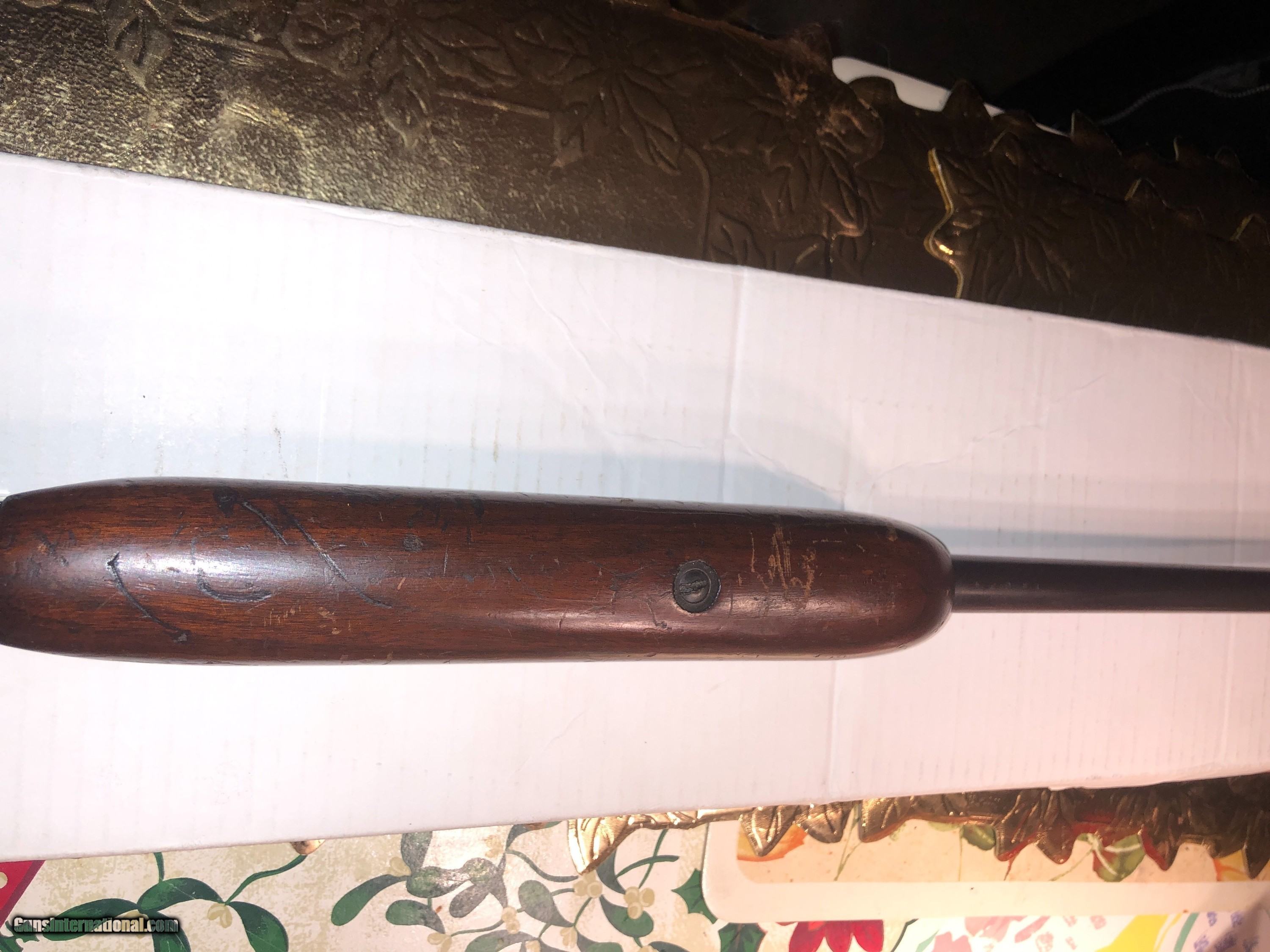 Description: Remington model 241 , 1936 mfr. .22lr semi auto , from my fathers collection , in fair to good condition , barrel been drilled and tapped for scope mount , some marks on right side of receiver , wood is good for its age , please as questions and look at pictures. SOLD Rifle Caliber: .22 Long Rifle Manufacturer: Remington Model: 241 speedmaster Serial Number: 16xxx Condition: fair to good Metal Condition: fair to good Wood Condition: fair to good Bore Condition: good |