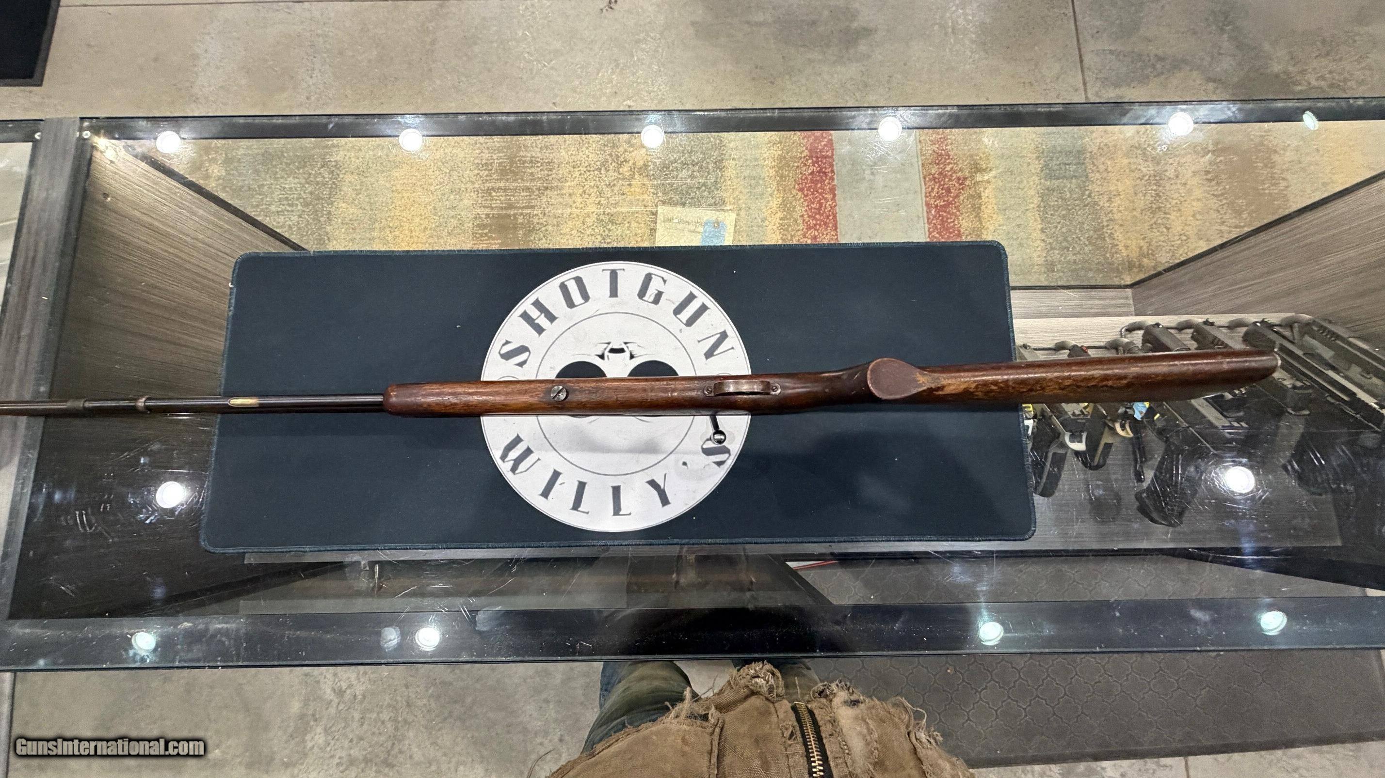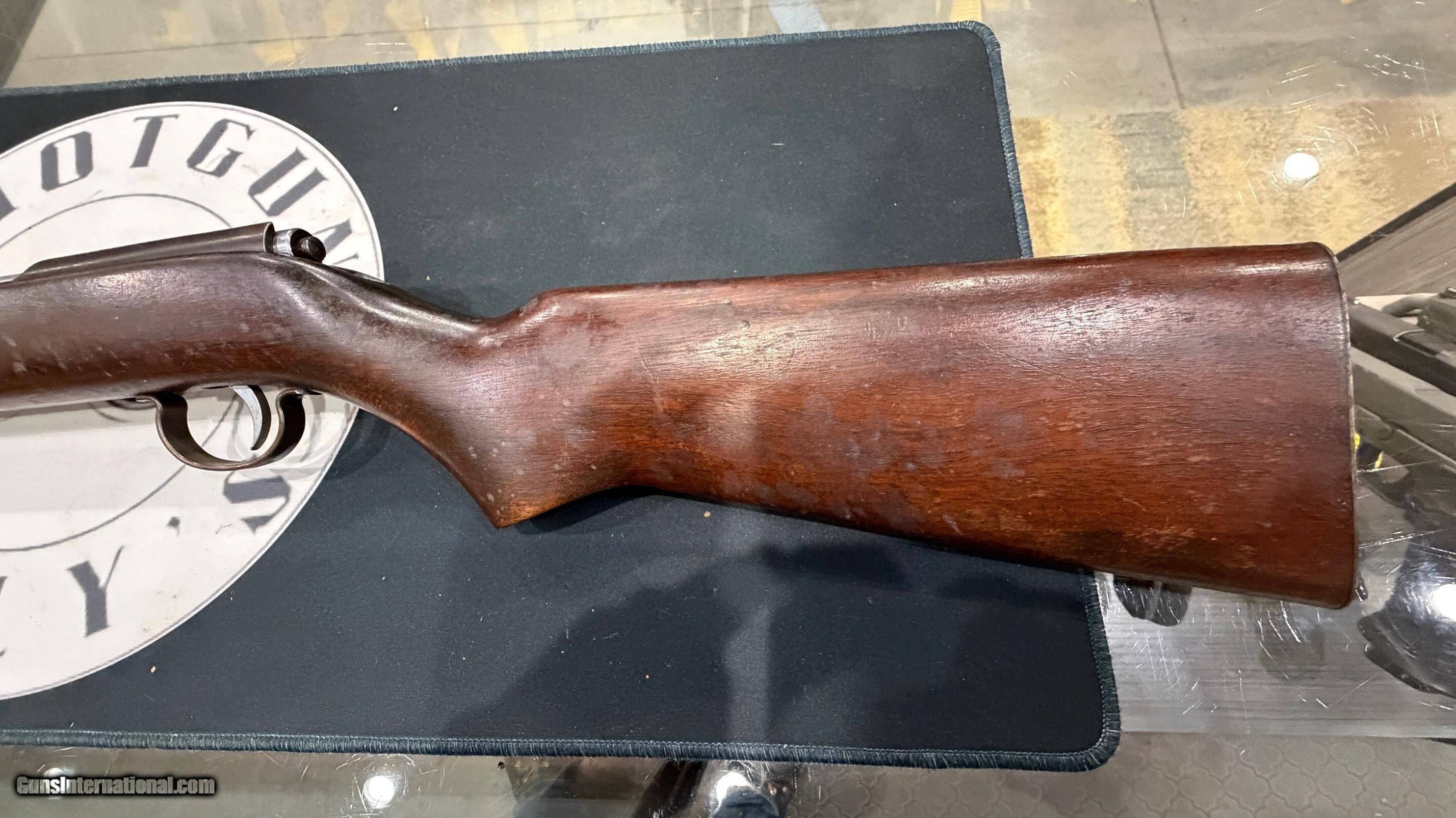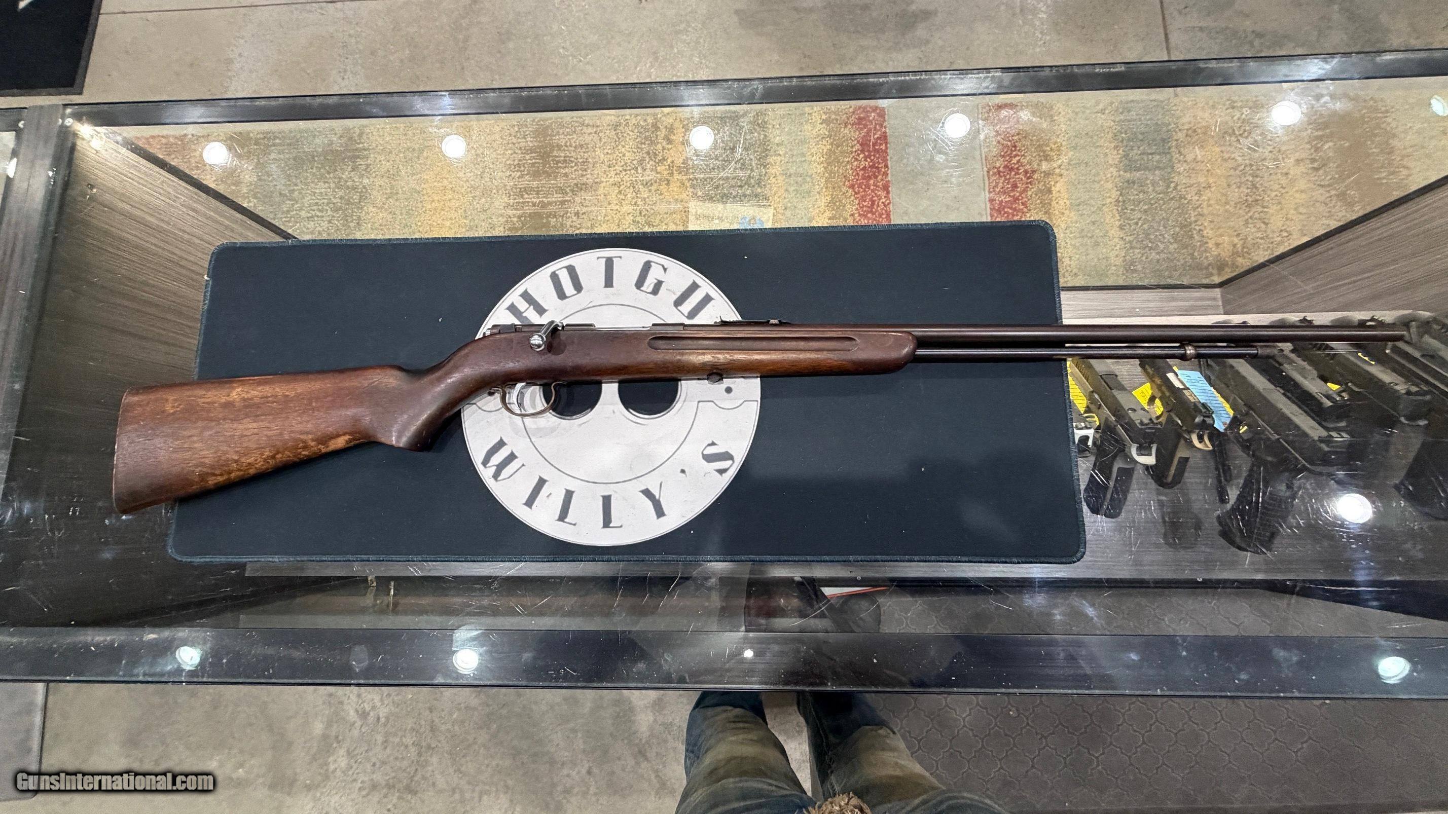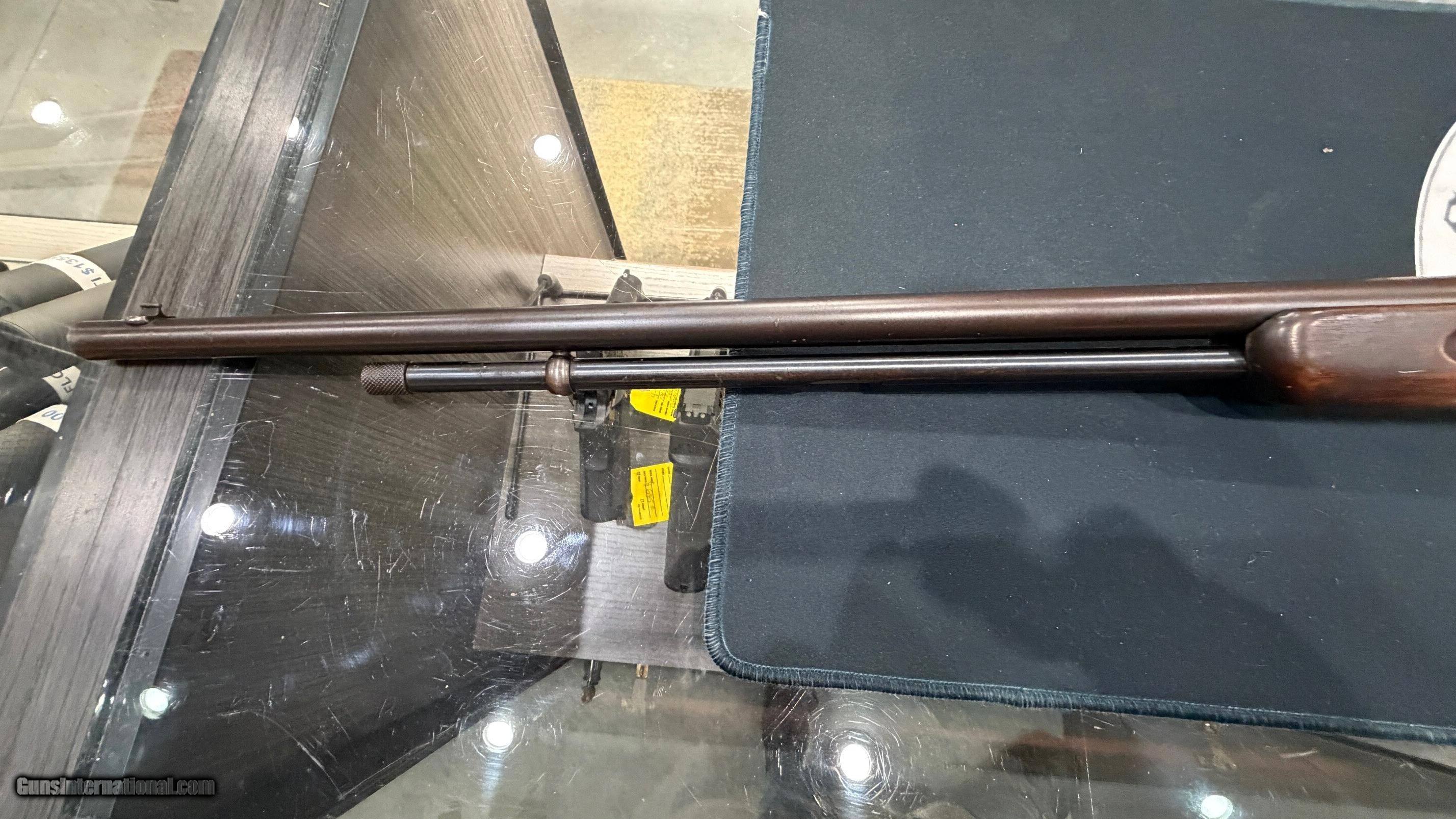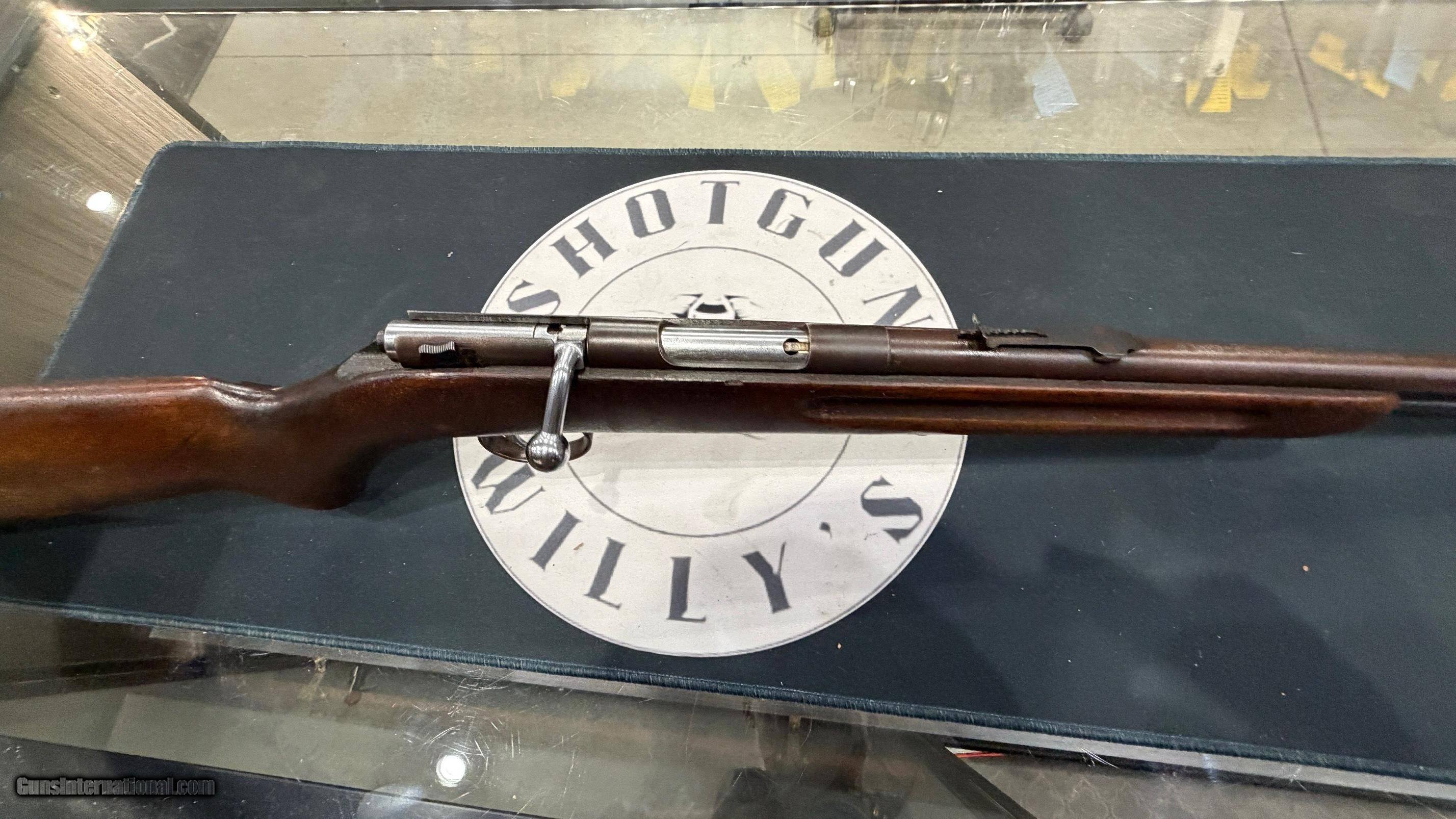 Description: Remington Model 34 – .22 S/L/LR – Tube Feed Bolt Action Description: Classic Remington Model 34 bolt-action rifle chambered for .22 Short, Long, and Long Rifle. This rifle features a 24" barrel, full-length tubular magazine, and walnut stock with the early style finger grooves. A fine example of Remington’s pre-war small game and target rifle production, built between 1932–1935. The rifle shows honest wear consistent with age, but remains in functional condition. Metal finish shows thinning and patina throughout. Wood retains good color and has scattered dings and handling marks, but no major cracks. Bore remains bright with strong rifling. A great vintage plinker or collector piece representing Remington’s early .22 bolt-action craftsmanship. Condition: Good overall. Metal has turned to brown patina with light surface spotting. Wood has scratches and finish wear. Action functions properly, and bore is bright. Specifications:
