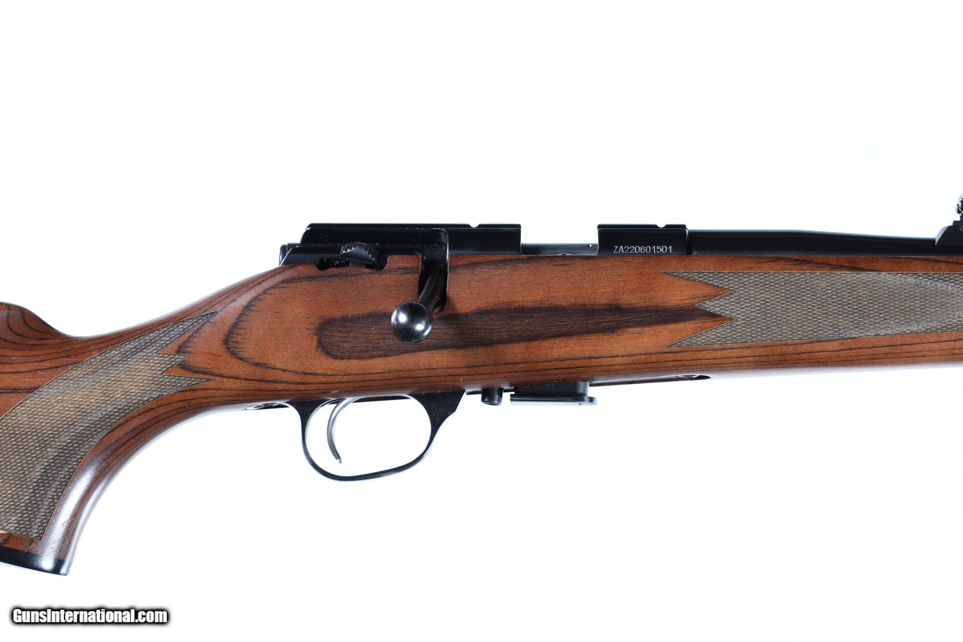 Description: Excellent plus overall condition. Manufactured by Zastava in Serbia, but sold by Remington, this Remington Model 5 bolt action rifle is a high-quality .22 lr design known for precision among the best in its class. The left-side of the receiver is marked “USSG-Rockledge, FL/Zastava-Serbia”, while “REMINGTON/Model Five” is marked on the left to the rear of the receiver. The bolt is electro penciled "2662" on the bottom, with a round steel barrel bearing a hooded ramped blade front sight and an adjustable U-notch rear sight. A factory blued finish on the receiver and barrel are accompanied by a grooved receiver, laminate stock with capped pistol grip and checkering on the wrist and forearm, sling studs present, checkered plastic butt plate, and includes an original 5-round magazine. • Free Shipping, No Credit Card Fees. • Lay-a-way available for this firearm. • 1/3 Down, a 1/3 in 30 Days 1/3 in 60 Days. SOLD Manufacturer: Remington Model: 5 Serial Number: ZA220601501 Barrel Length: 22 |