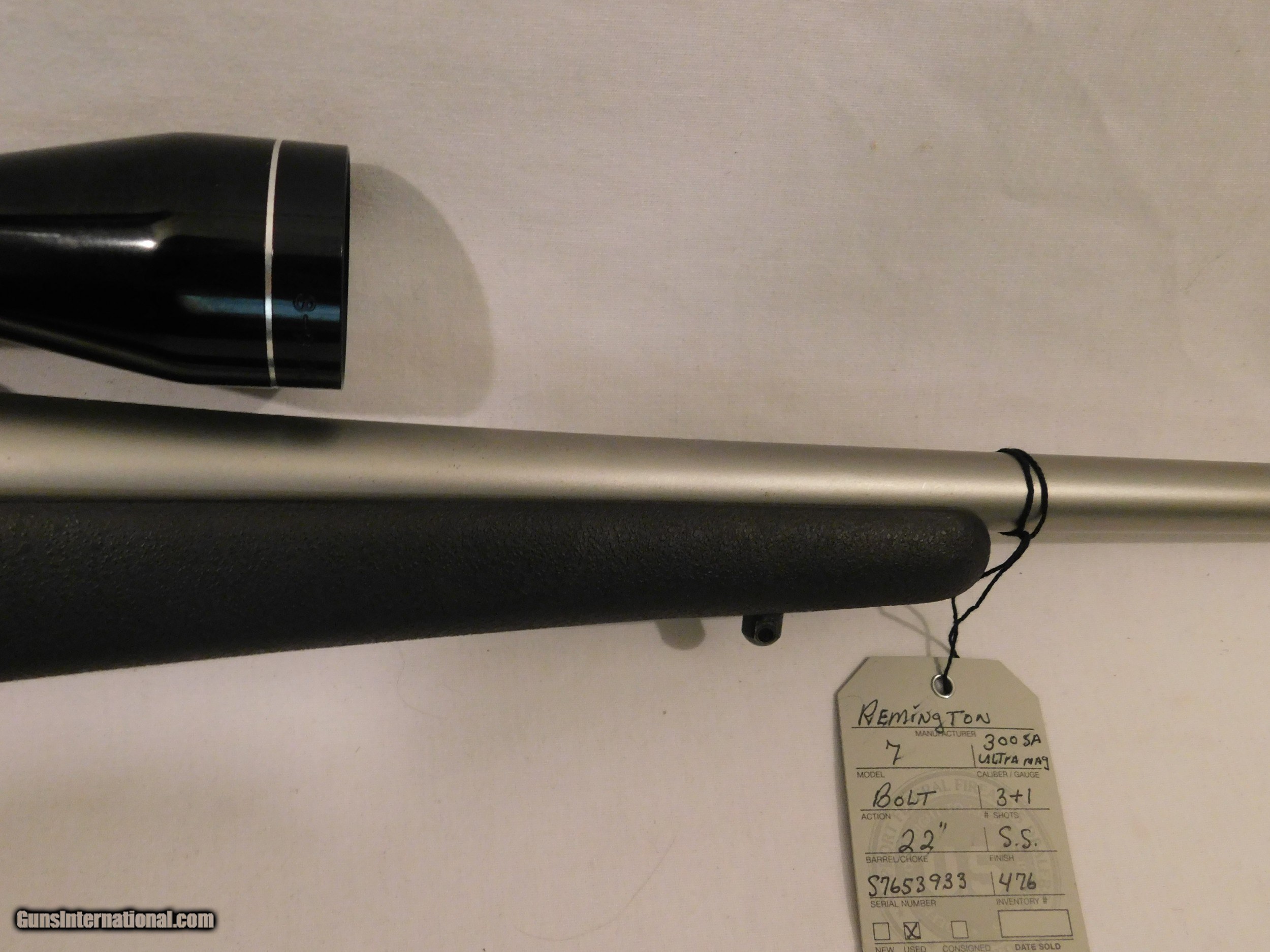 Description: This is a very nice Remington Model 7 300 SA Ultra Mag It is a bolt action rifle with a 22" stainless steel barrel This Model 7 has been well taken care of with very little use Has a Tasco 3-9x40 SN-S7653933 SOLD Manufacturer: Remington Model: Model 7 Serial Number: S7653933 Caliber Info: 300 SA Ultra Mag Bore: very good Condition: Used Metal Condition: very good Bore Condition: Very good Barrels: 22 Barrel Type: round Action: Bolt Triggers: Standard Stock: composite with sling studs Butt Pad: Rubber Finish: stainless steel Sights: None |