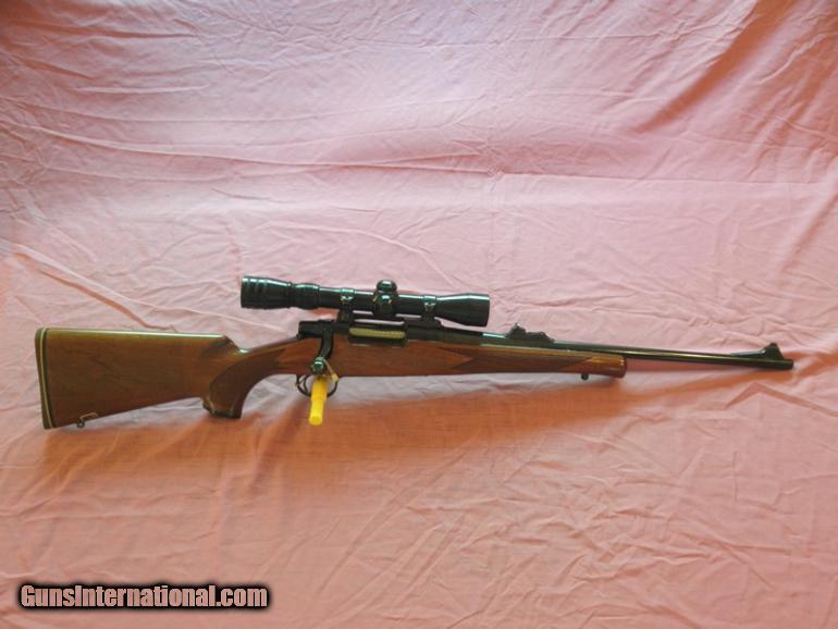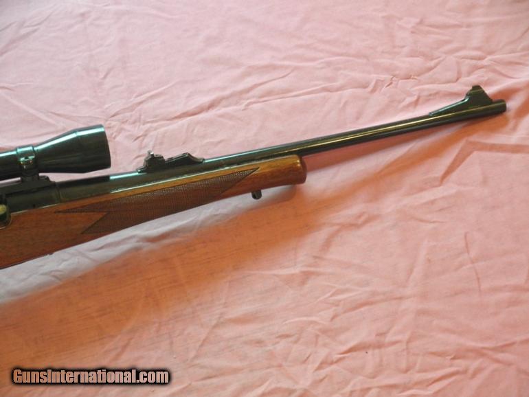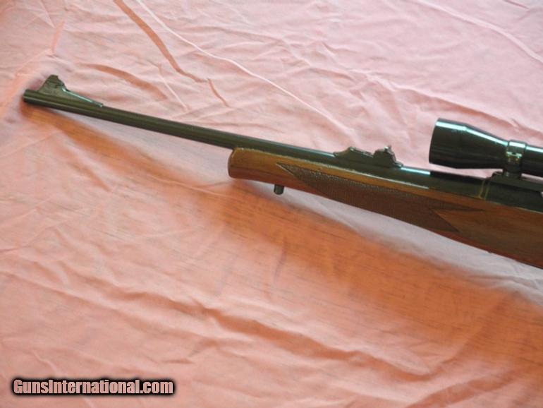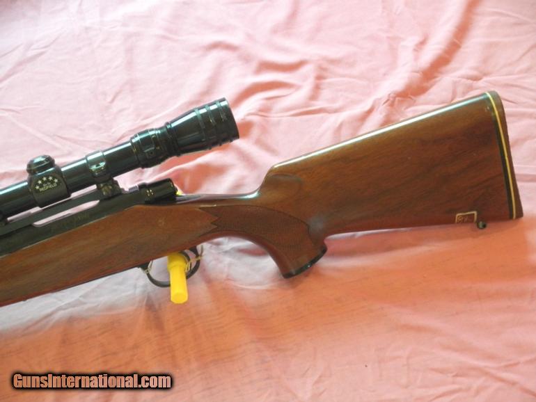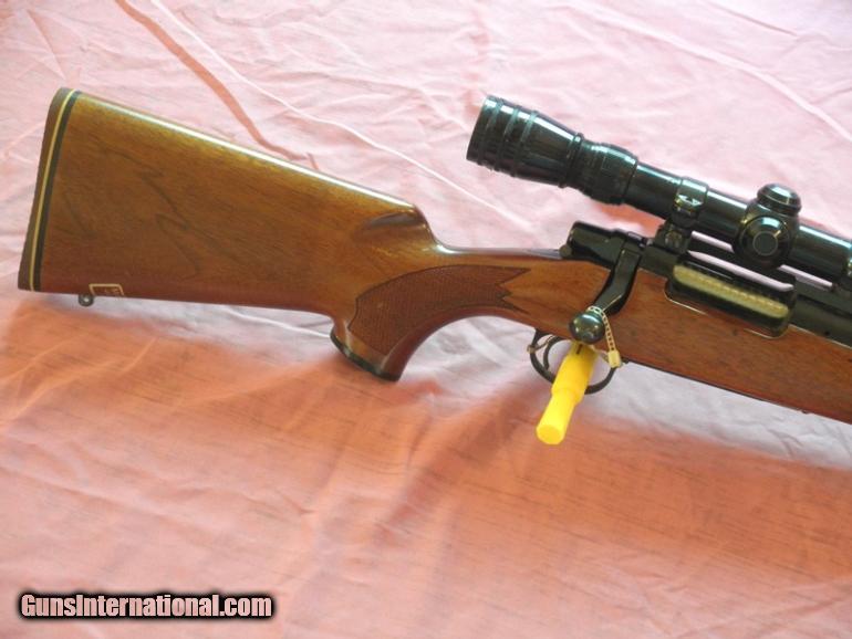 Description: .308 cal., scope, rings, base extra, original sights, Pachmayer white line butt pad, blue 99%, wood 99%, barrel length 19 1/2 inch, stock pull 12 1/4 inch, for woman or child, ser. no. 7633632Z, 816-229-6500 SOLD |