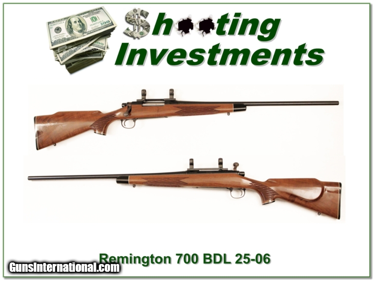 Description: This is a very nice Remington 700 BDL in 25-06. Blue is excellent and wood has only a few minor marks. I am selling this one on consignment and as such lay-a-way can’t be used. It does of course have the standard 3 day inspection. Shipping and insurance is $30 or $18 more if you want it shipped in a new Plano hard case. Please email me with any questions or larger pictures. (I now consign quality firearms only 10%! Let me know if you have any you would like to sell!) [15-0524] Payment: Payment is by Money Order, Cashiers Check or Personal Check. I can now also accept MasterCard and Visa with a 3% convenience fee. PayPal can be used for some items but never firearms. Please let us know if you would like to pay via PayPal. Shipping: The shipping charge will be listed in each description. It is $30 for most guns. Some heavy guns or those insured for over $2000 may be higher. Shipments to Alaska and Hawaii are higher because air shipment is required. Most firearms are shipped within 5 days of receipt of payment. We prefer shipping at the beginning of the week to avoid firearms in transit over weekends. We package all shipments carefully and insure them for the full purchase price, rounded up to the next $100. In the unlikely event that damage occurs, it is important that you save all packaging material for the claims process. Optics are shipped Priority Mail and most other non-firearm shipments are shipped First Class. Returns: Our return policy is simple. If for any reason you are not pleased with your purchase, you may return your item for a refund. The only exception is ammunition, it cannot be returned. It is important to us that you are happy. Guns cannot be fired or dissembled before returning them and must be returned in the same condition as received. Notification of a return must occur with-in 3 days of receipt at your dealer. Shipping, convenience and dealer fees are not refundable and are the responsibility of the buyer. Lay-a-way: If needed, we offer a 60 day lay-a-way option on most firearms. It is 1/3 now, 1/3 in 30 days and 1/3 in 60 days. Lay-a-way firearm sales are final. Consigning your firearms with Shooting Investments: We will help you get top dollar for your firearms. While most local guns shops charge 20% or more, our fee is only 10% with a minimum of $50. At your local gun shop it might take months to sell. Selling on-line provides instant access to thousands of interested buyers. You won’t find any other on-line dealer willing to sell your firearms for only 10% or listing every gun on 4 separate s. Selling through an House typically costs the seller 15% and the buyer an addition 15% (so 30%) and you have to wait several months to sell and longer to receive funds. If properly priced, we will sell your firearms in a week or two. Send us an email or give us a call and we’ll explain how easy it is for you to get top dollar. Trading: We collect guns and usually just trade for guns we want to add to our collections. We often sell guns for others wanting to purchase one of ours. We find this the most fair to both of us. Our Commission is only 10% and we hold the gun you want until yours sells. Please contact us if you want to sell one of yours to buy one of ours. Help for California Buyers: We are happy to ship to California. It is the buyer’s responsibility to make sure any item you buy is legal in your state. We are also happy to help with your purchase of a firearm from someone other than us. If you see a gun you would like to buy but the seller can’t or won’t ship to California we can help. You buy the gun and have it shipped to us. We’ll then ship it to your California dealer. The cost for this service is only $30 + shipping. Let me know if we can help! SOLD |