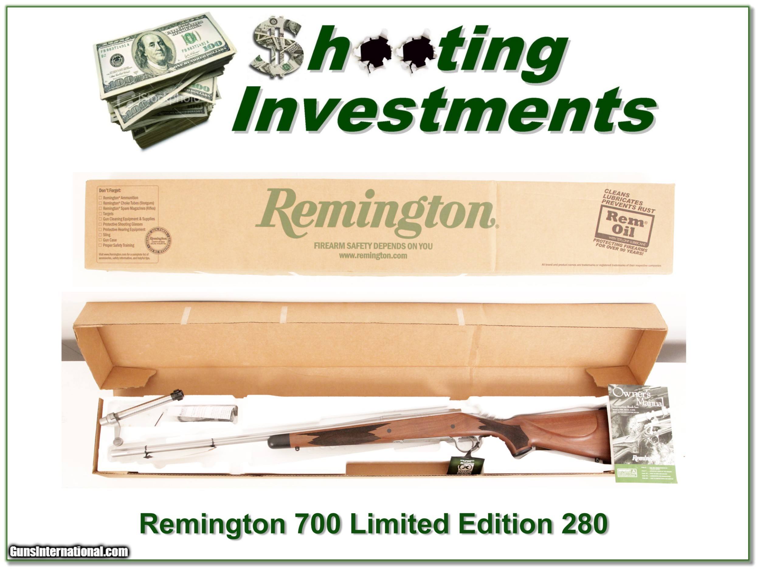 Description: This is Remington 700 Limited Edition. It is the 280 Remington edition with stainless fluted barrel. It’s owner only fired it a few rounds and I find no marks. It comes in box with papers as shown. It will make a fine addition to your collection. I am selling this one on consignment and as such lay-a-way can’t be used. It does of course have the standard 3-day inspection. Shipping and insurance is $39. Please email me with any questions or larger pictures. (Consign your quality firearms with Shooting Investments for only 12%! Let me know if you have any you would like to sell!) 20-0190 Payment: Payment is by Money Order, Cashiers Check or Personal Check. I can now also accept Credit Cards (MasterCard, Visa, Discover & American Express) with a 3% convenience fee. PayPal can be used for some items but never for firearms. Shipping: The shipping charge will be listed in each description. It is $39 for most firearms. Some heavy guns or those insured for over $2000 will be higher. Shipments to Alaska and Hawaii are higher because air shipment is required. Most firearms are shipped on Tuesday and Thursday and usually in 5 days of receipt of payment. We package all shipments carefully and insure them. Optics are shipped Priority Mail and most other non-firearm shipments are shipped First Class. Returns: Our return policy is simple. If for any reason you are not pleased with your purchase, you may return your item for a full refund of purchase price. Ammunition cannot be returned. It is important to us that you are happy. Guns cannot be fired or dissembled before returning them and they must be returned in the same condition as received. Notification of a return must occur with-in 3 days of receipt at your dealer. Shipping, convenience and dealer fees are not refundable and are the responsibility of the buyer. Lay-a-way: If needed, we offer a 60 day lay-a-way option on most firearms. It is 1/3 now, 1/3 in 30 days and 1/3 in 60 days. Lay-a-way firearm sales are final and if not completed the first payment cannot be returned. Consigning your firearms with Shooting Investments: We will help you get top dollar for your firearms. While most local guns shops charge 20% or more, our fee is only 12% with a minimum of $75. At your local gun shop it might take months to sell. Selling on-line provides instant access to thousands of interested buyers. You won’t find any other on-line dealer willing to sell your firearms for only 12% or listing every gun on 3 separate s. Selling through an House typically costs the seller 15% and the buyer an addition 15% (so 30%) and you have to wait several months to sell and longer to receive funds. If properly priced, we will sell your firearms in a few weeks. Send us an email or give us a call and we’ll explain how easy it is for you to get top dollar. Trading: Trading for use is really just buying your gun to re-sell. If you have a gun you want to trade, please email a picture and we will let you know what we can give or it. You will always get more if we sell it for you on consignment. Help for California Buyers: We are happy to ship to California. It is the buyer’s responsibility to make sure any item you buy is legal in your state. We are also happy to help with your purchase of a firearm from someone other than us. If you see a gun you would like to buy but the seller can’t or won’t ship to California they can ship to use and we’ll then ship it to your California dealer. The cost for this service is only $30 + shipping. Let us know if we can help! SOLD |