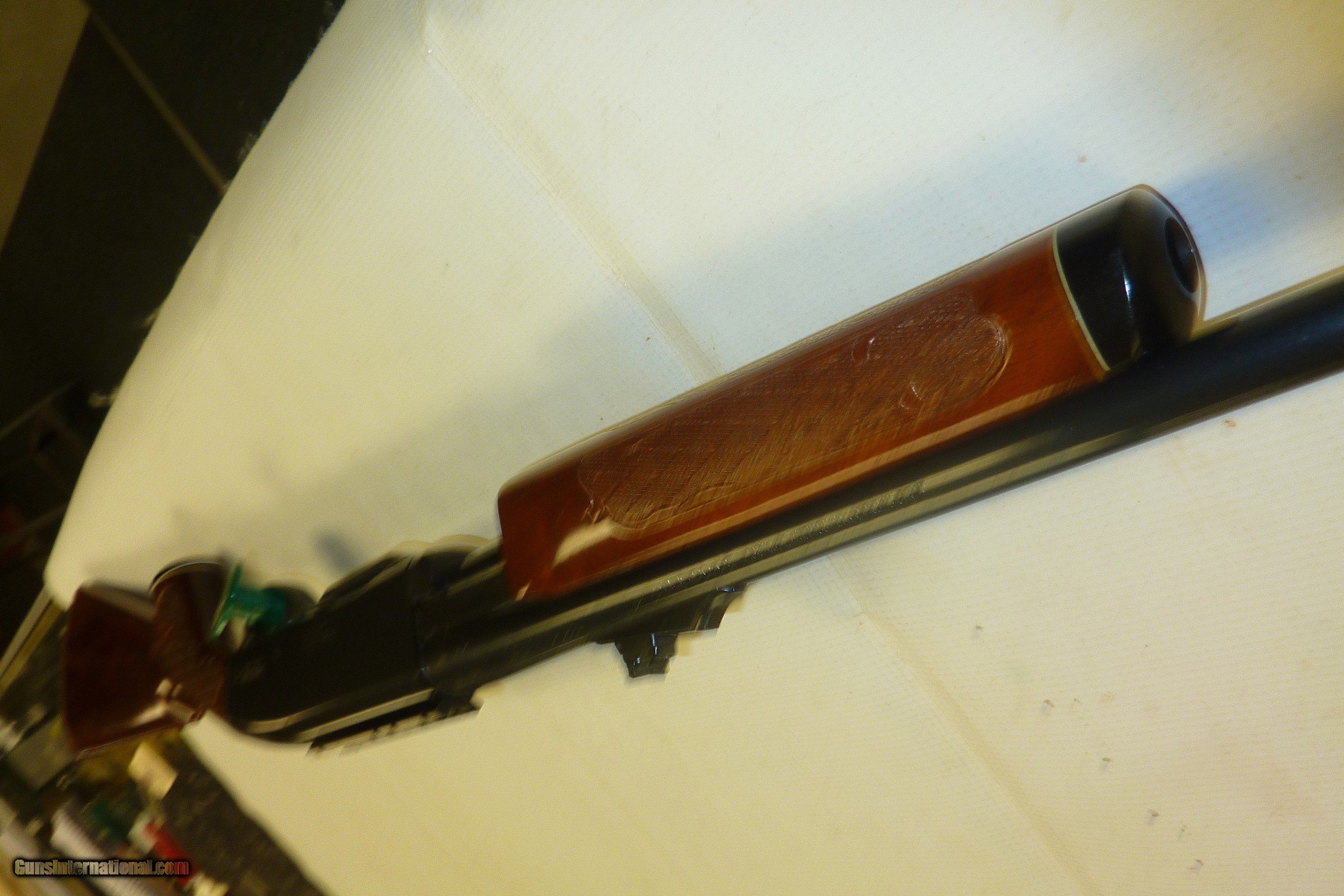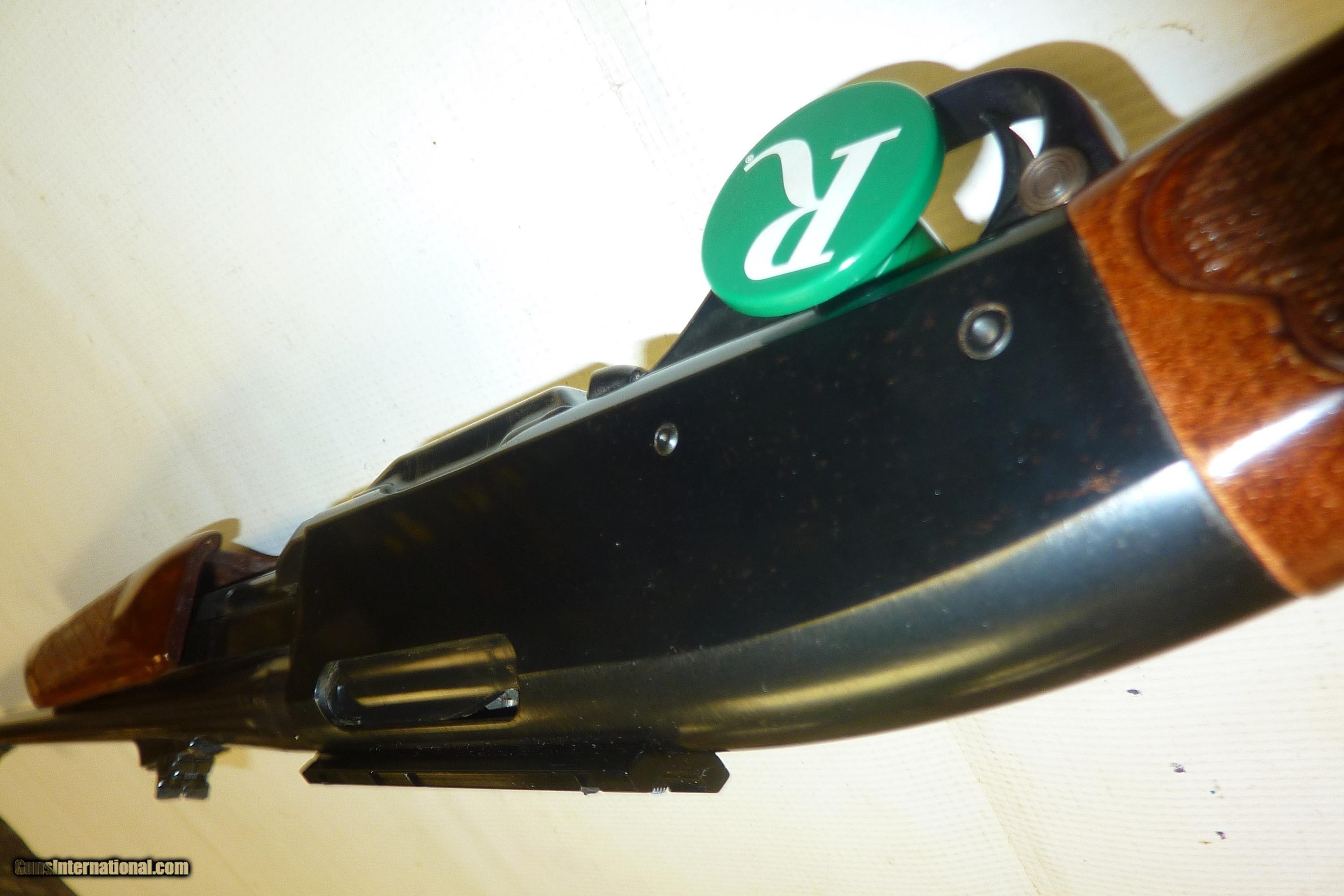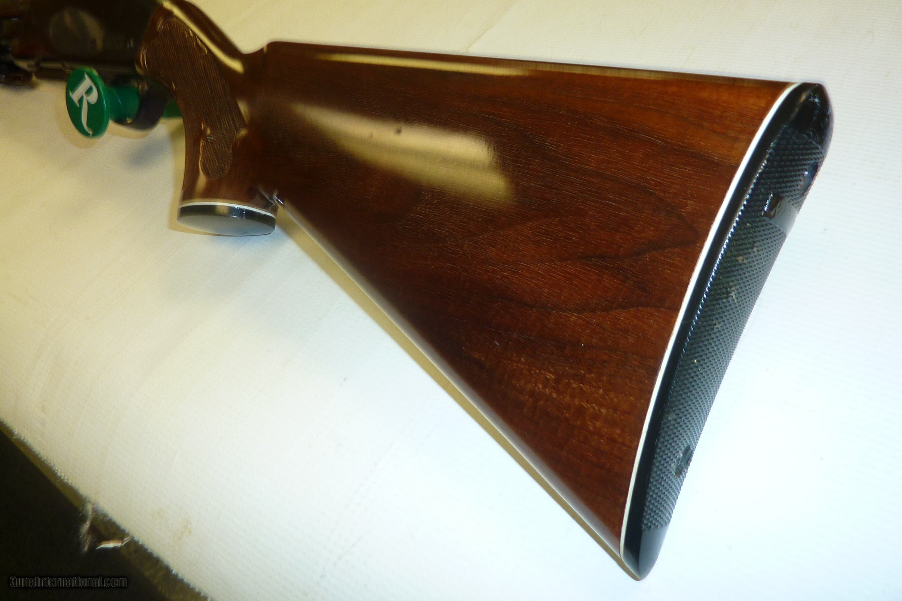 Description: REMINGTON MODEL 760 GAMEMASTER 30-06 CARBINE 18.5" BARREL PUMP ACTION RIFLE. CHECKERED WALNUT STOCK AND FOREND WITH VERY LIGHT HANDLING MARKS. BLUED RECEIVER AND BARREL, WITH VERY MINOR HANDLING MARKS. ADJUSTABLE REAR SIGHT, RAMP FRONT SIGHT. THE RECEIVER FACTORY DRILLED EOR A SCOPE BASE WHICH IS INCLUDED. 1 4RD DETACHABLE ORIGINAL STEEL MAGAZINE. BRIGHT BORE, TIGHT SMOOTH ACTION. THE FIREARM WAS CLEANED, INSPECTED, AND TEST-FIRED WITH NO ISSUES. SERIAL # A7472425. SHIPPING AND INSURANCE IS $60.00. ADDITIONAL SHIPPING TO AK,HI,CA,PR. SOLD |