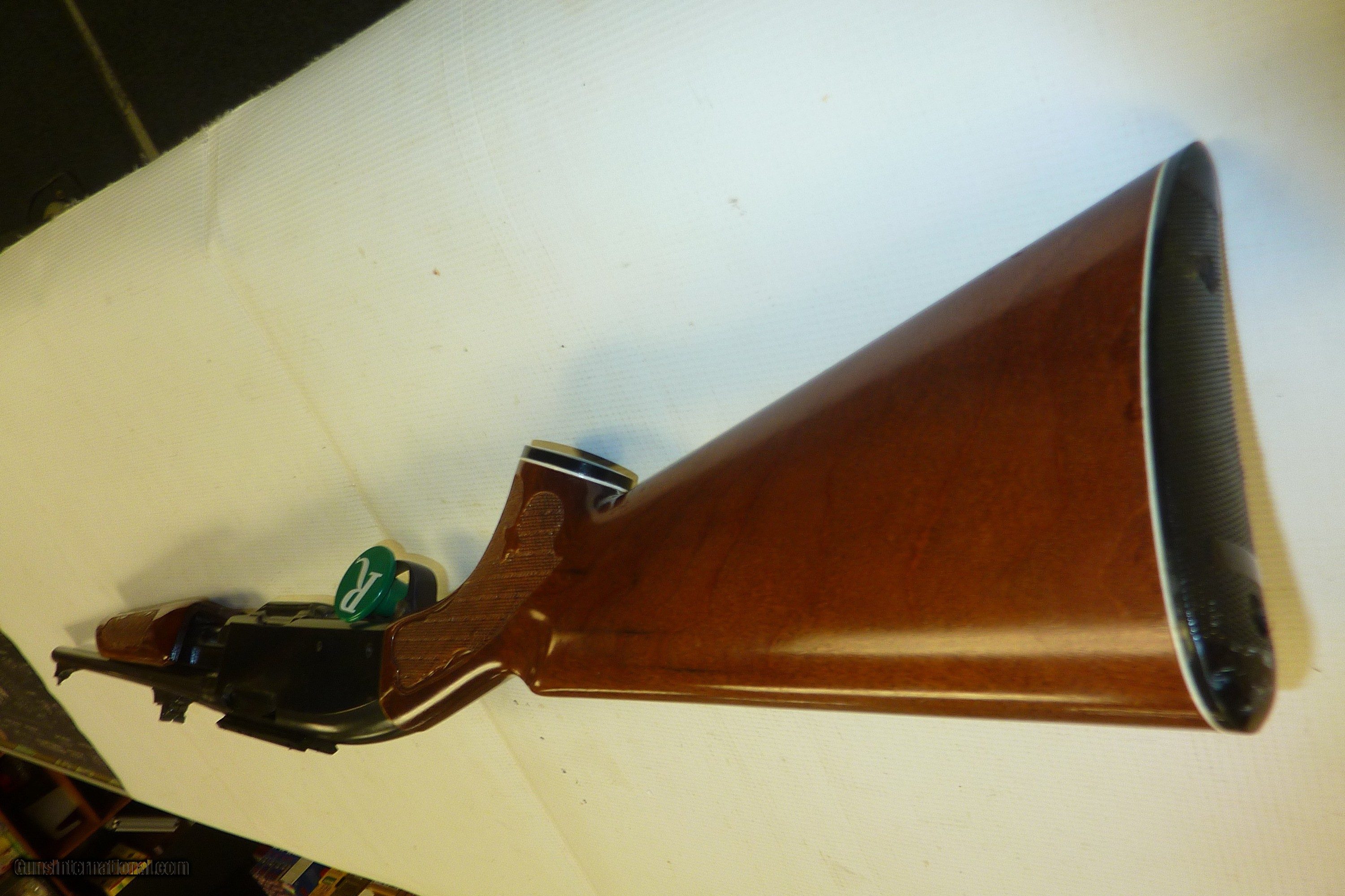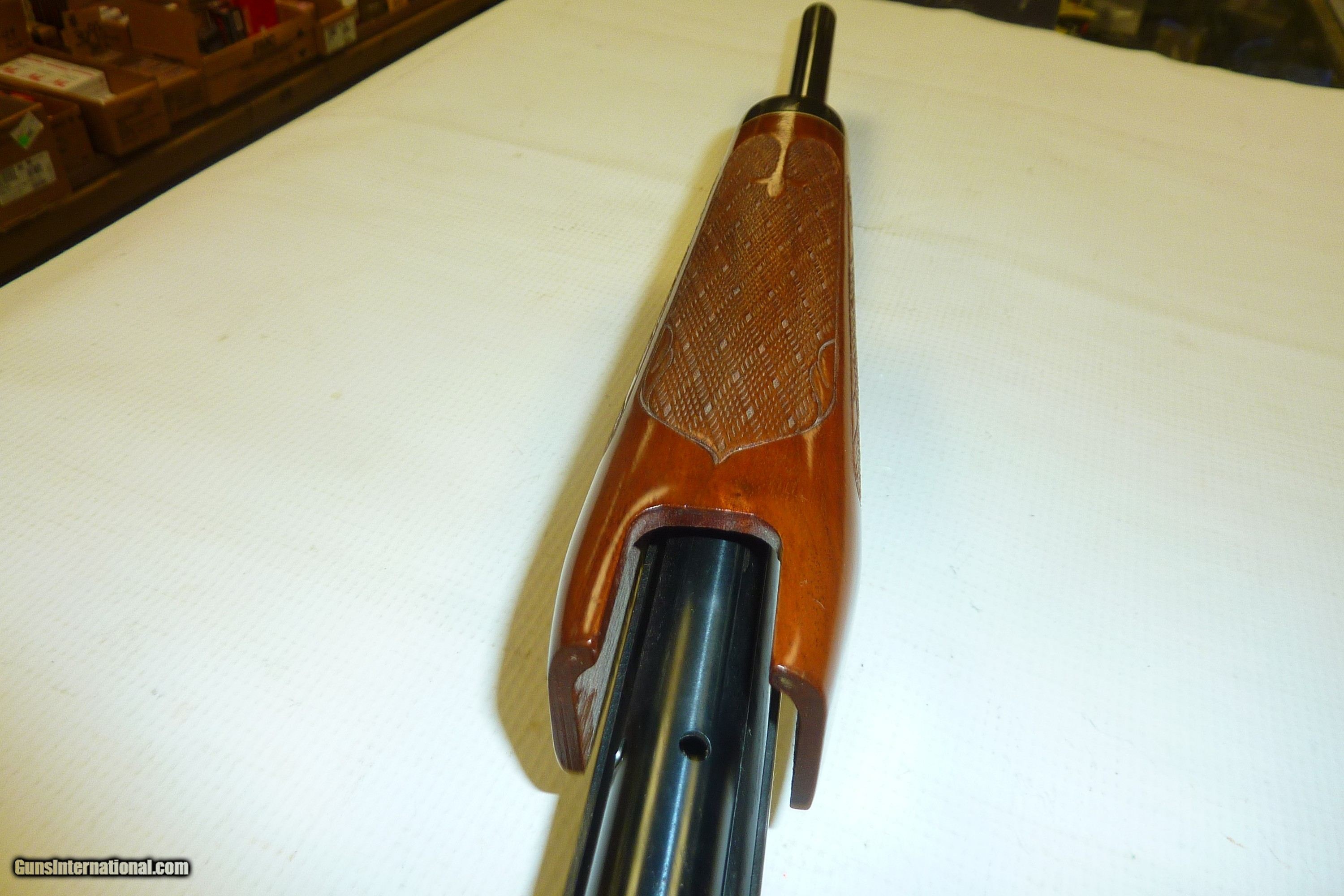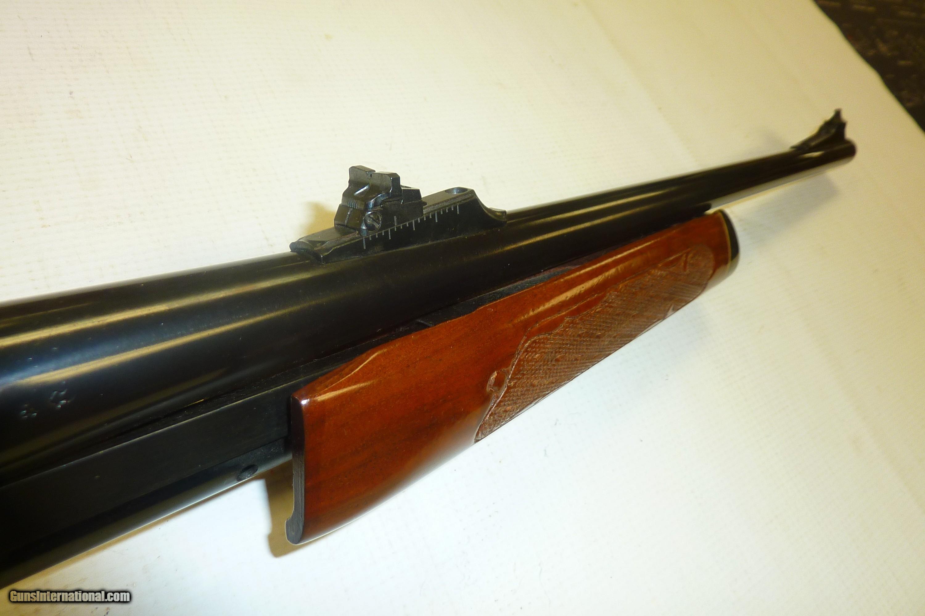 Description: REMINGTON MODEL 760 GAMEMASTER 30-06 CARBINE 18.5" BARREL PUMP ACTION RIFLE. CHECKERED WALNUT STOCK AND FOREND WITH VERY LIGHT HANDLING MARKS. BLUED RECEIVER AND BARREL, WITH VERY MINOR HANDLING MARKS. ADJUSTABLE REAR SIGHT, RAMP FRONT SIGHT. THE RECEIVER FACTORY DRILLED EOR A SCOPE BASE WHICH IS INCLUDED. 1 4RD DETACHABLE ORIGINAL STEEL MAGAZINE. BRIGHT BORE, TIGHT SMOOTH ACTION. THE FIREARM WAS CLEANED, INSPECTED, AND TEST-FIRED WITH NO ISSUES. SERIAL # A7472425. SHIPPING AND INSURANCE IS $60.00. ADDITIONAL SHIPPING TO AK,HI,CA,PR. SOLD |