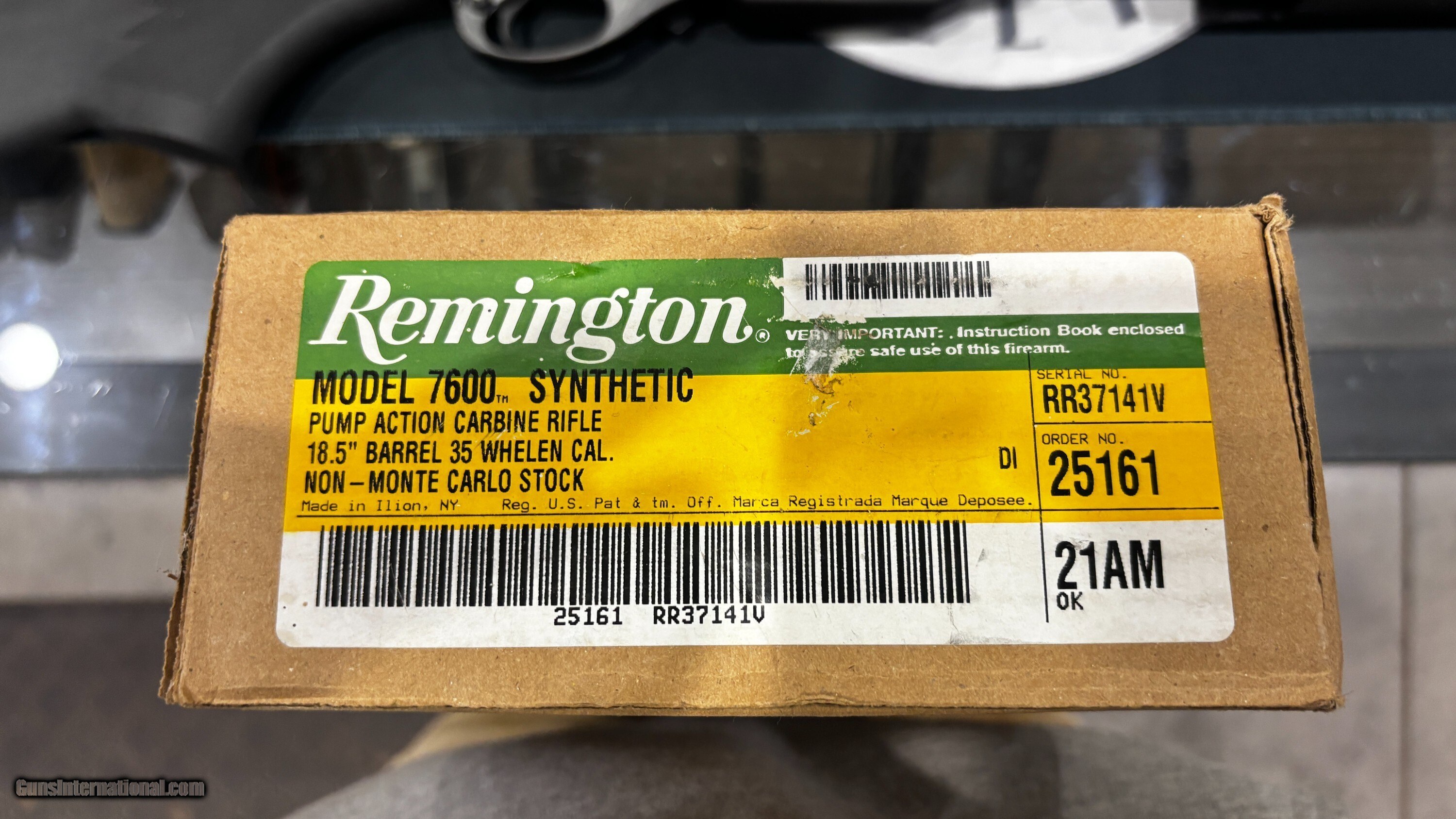 Description: Remington Model 7600 Carbine — .35 WHELEN — Synthetic Stock — NIB / Unfired (Rem Oil box, manual, lock) Quick Facts