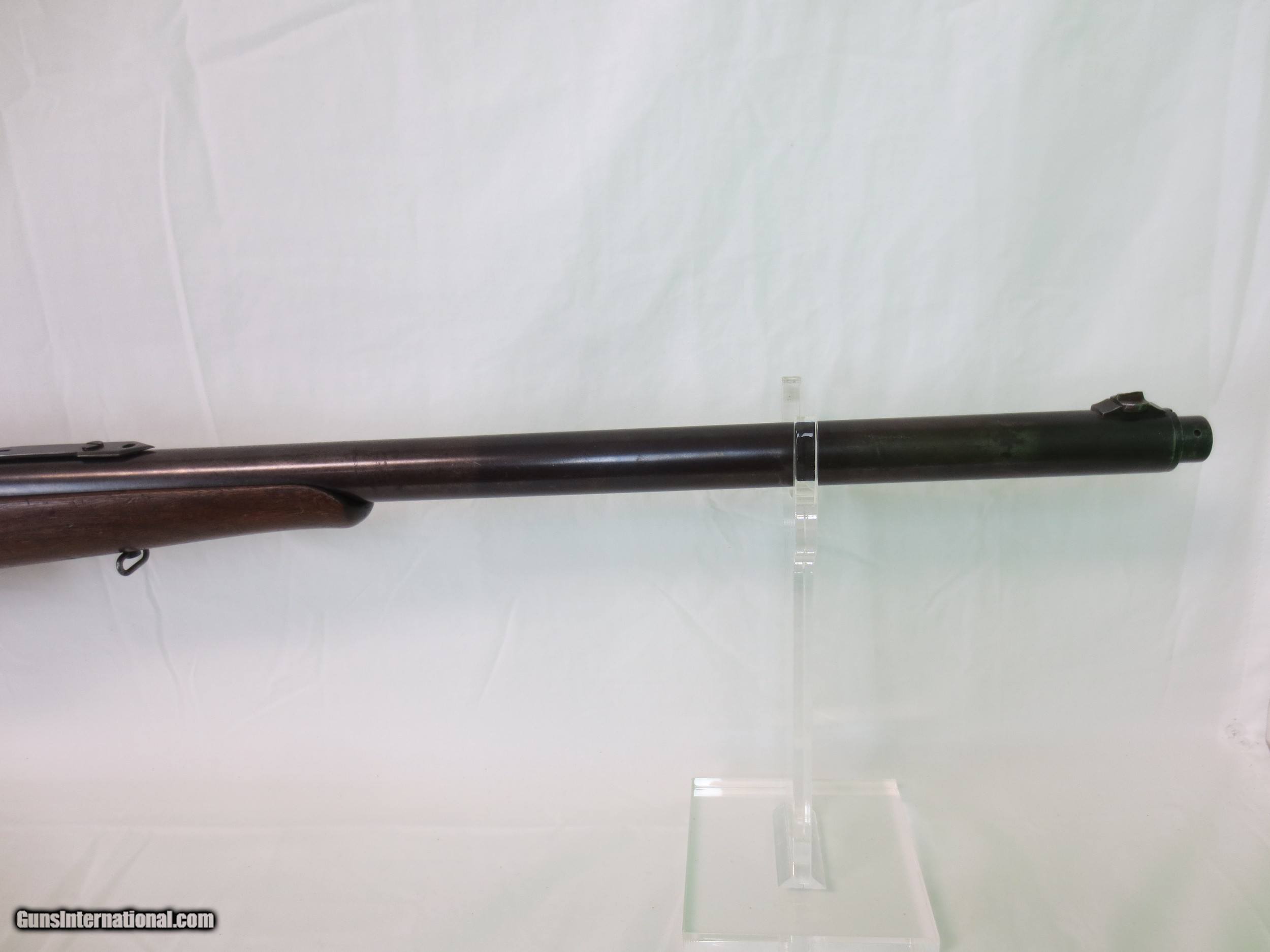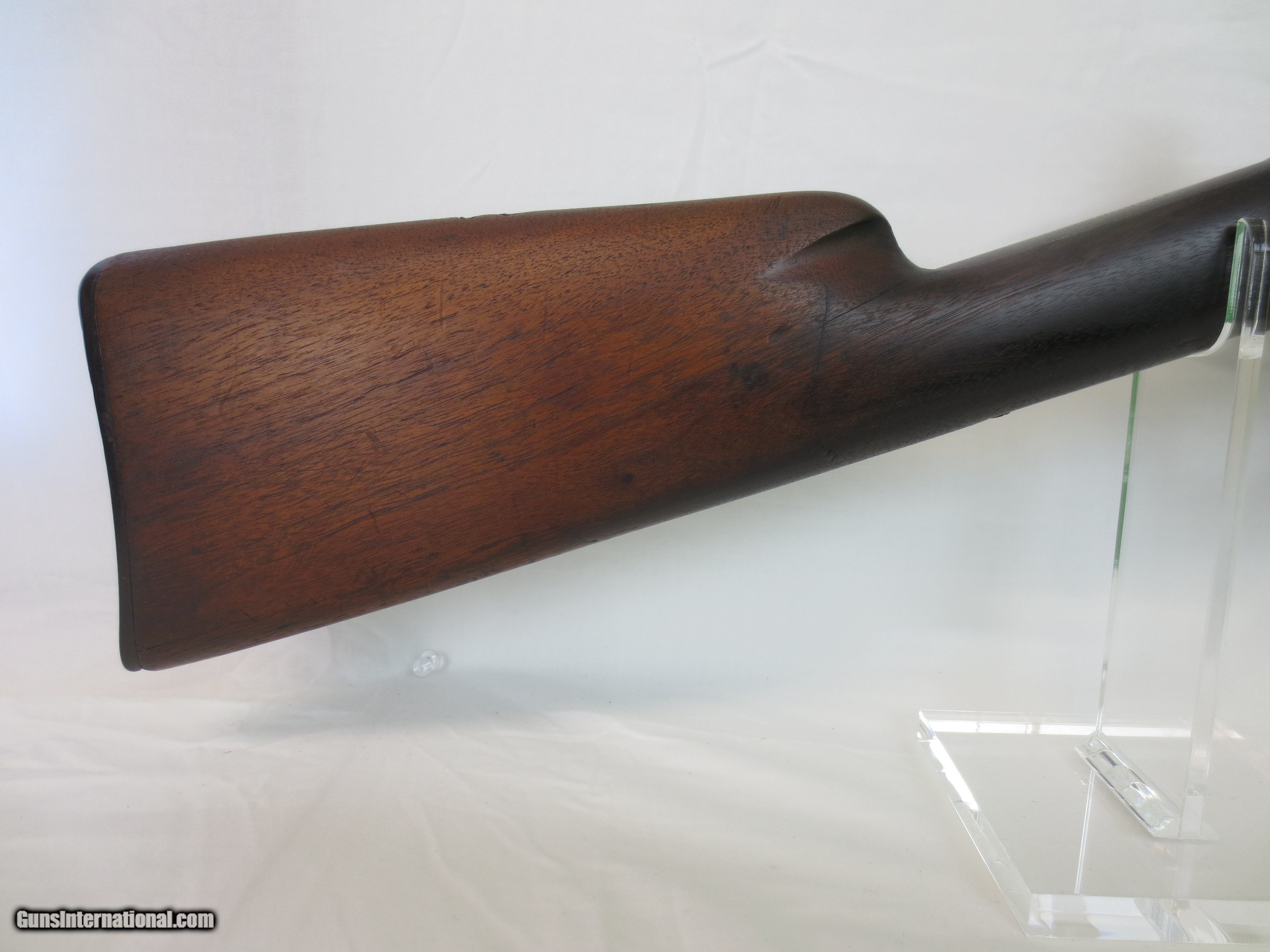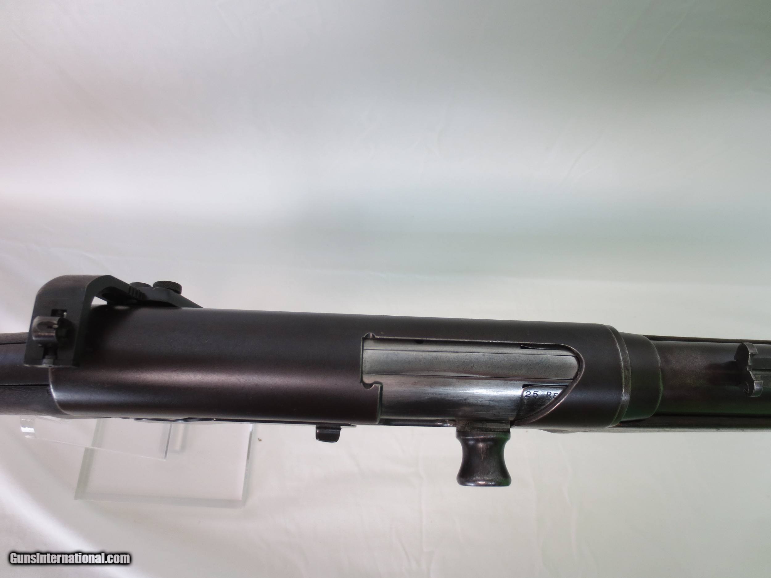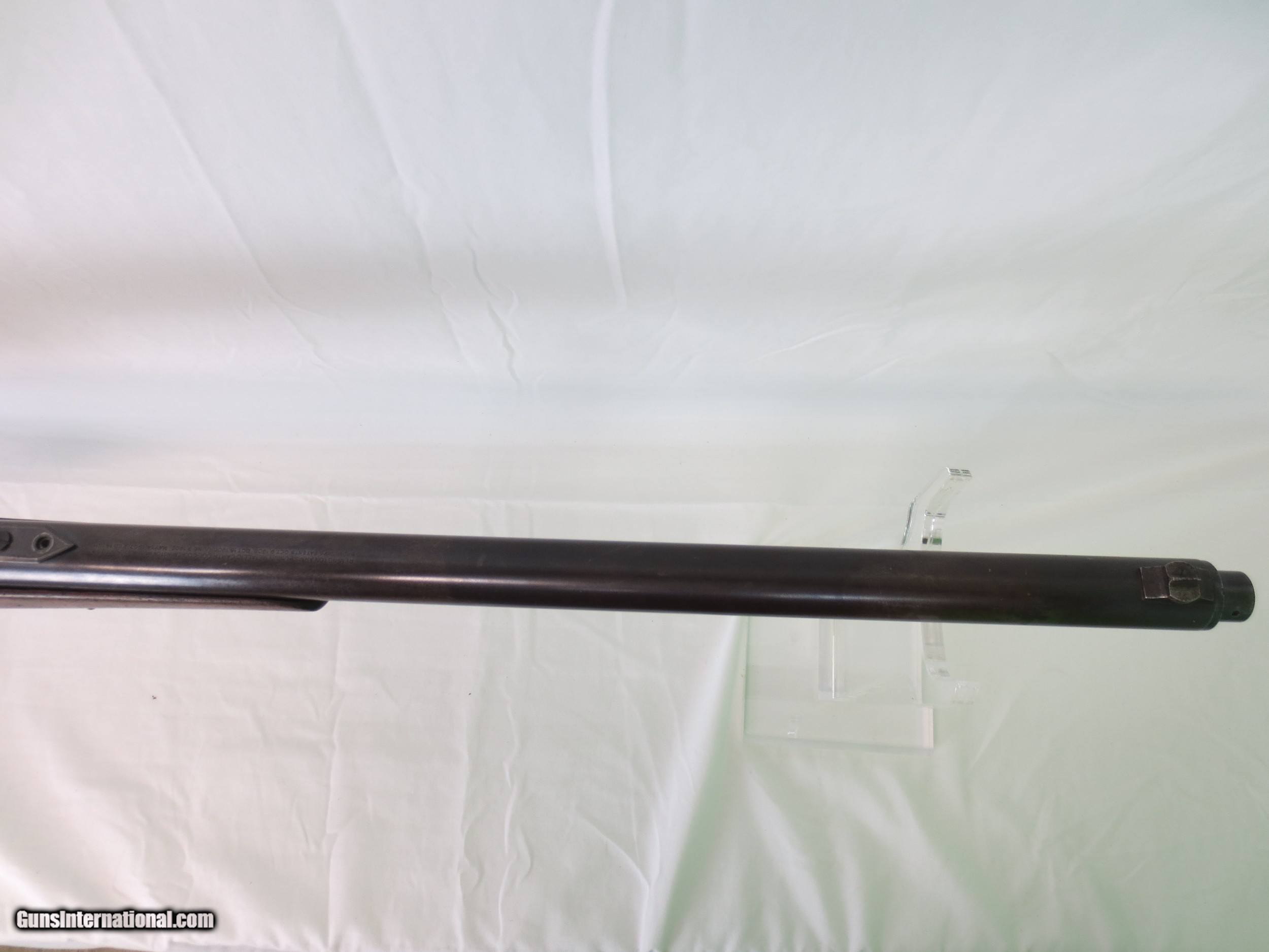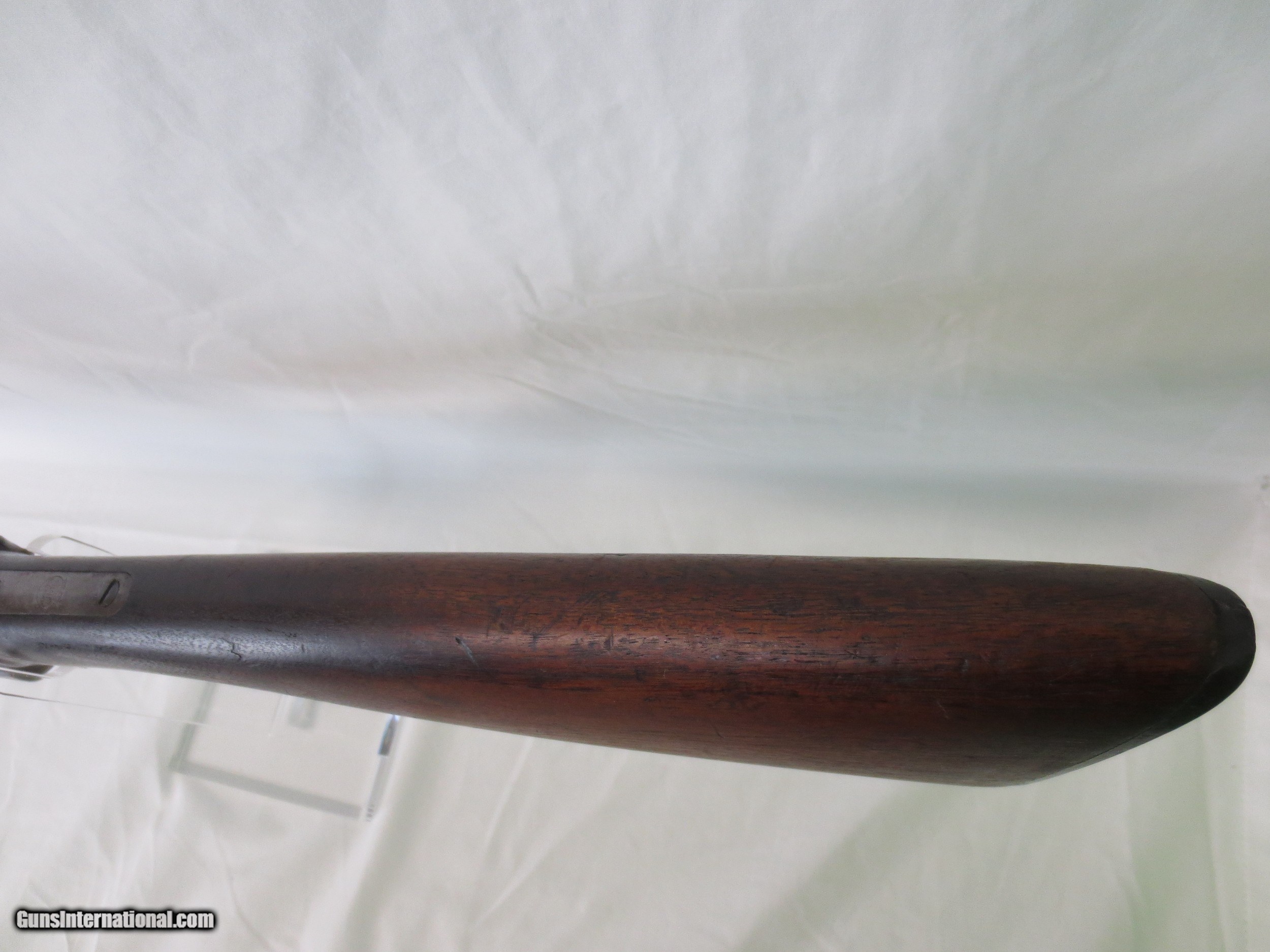 Description: Remington Model 8 in 25 Remington. Serial # 31380 dates to manufacture in 1912. Features a 22” barrel with some light pitting in the bore. The lands and grooves are quite visible. The outer barrel is dent / rust free. The bluing is good for 111 years old, with some spotty plum and thin areas overall. There is an area of light pitting on the barrel just behind / right of the front sight. The stock and forearm are crack free and appear to be in the original finish. Overall, the English stock and forearm are nice for the age with just the usual use marks and scratches. Nice plastic butt plate. The rear sight is an unusual adjustable peep, manufacturer unknown, unmarked. Original rear sight needs a screw. Please review the pictures and email me ask questions. Shipping, insurance, packaging & handling is a flat $50.00 east of the Mississippi, $65.00 west. I ship on Saturdays and Mondays. Please note that I do not ship to California. If you require FFL to FFL shipping add $25 to total price. Thanks for your interest. SOLD Rifle Caliber: .25 Remington |