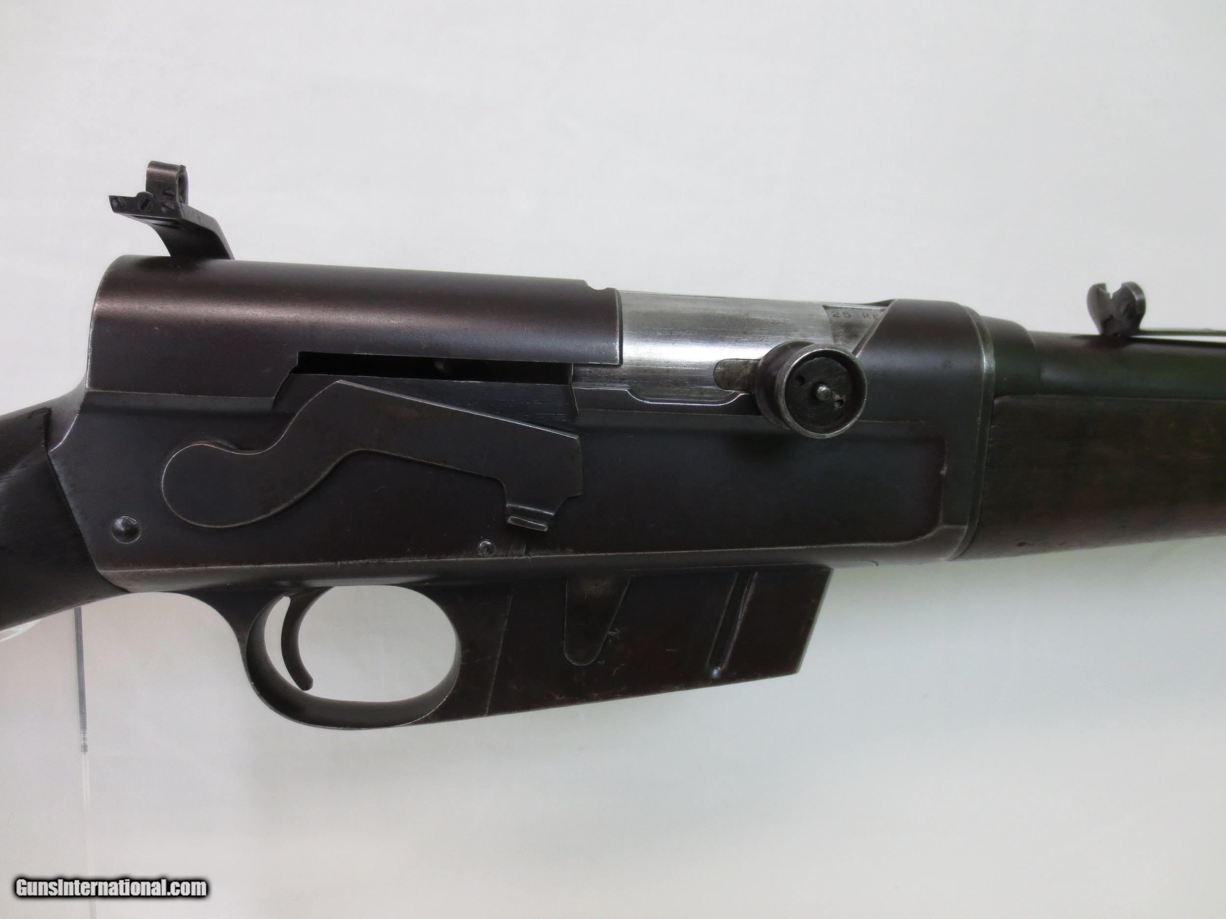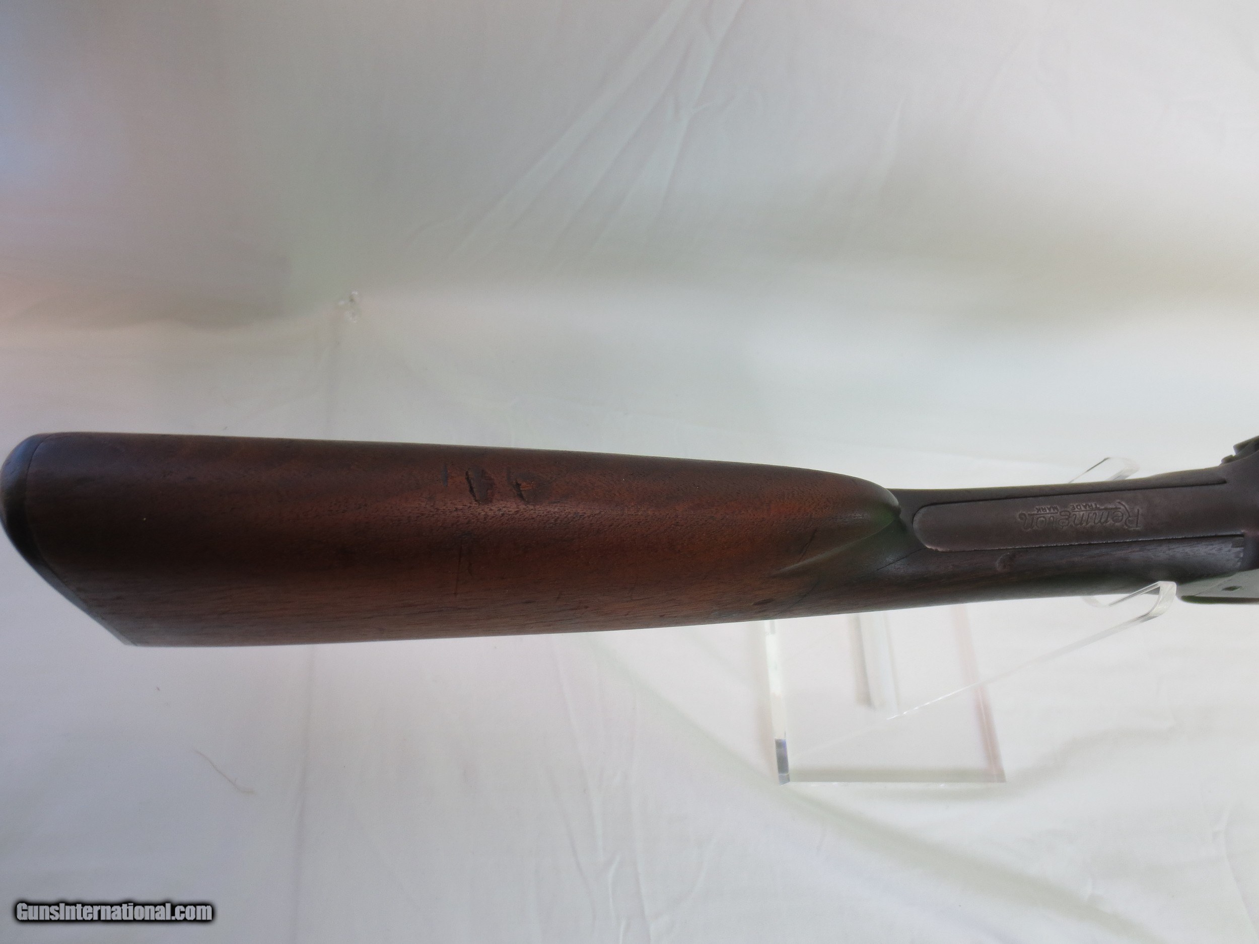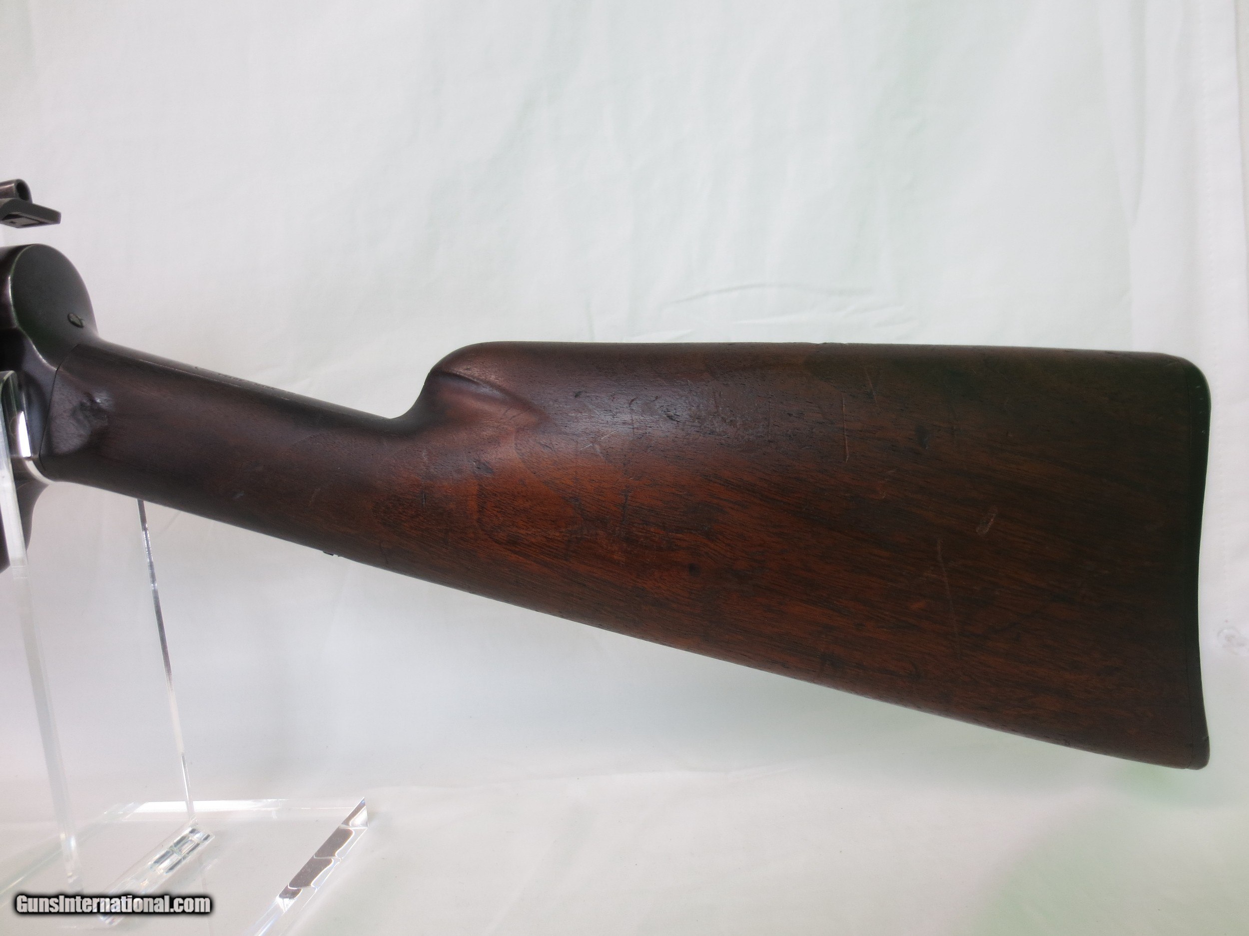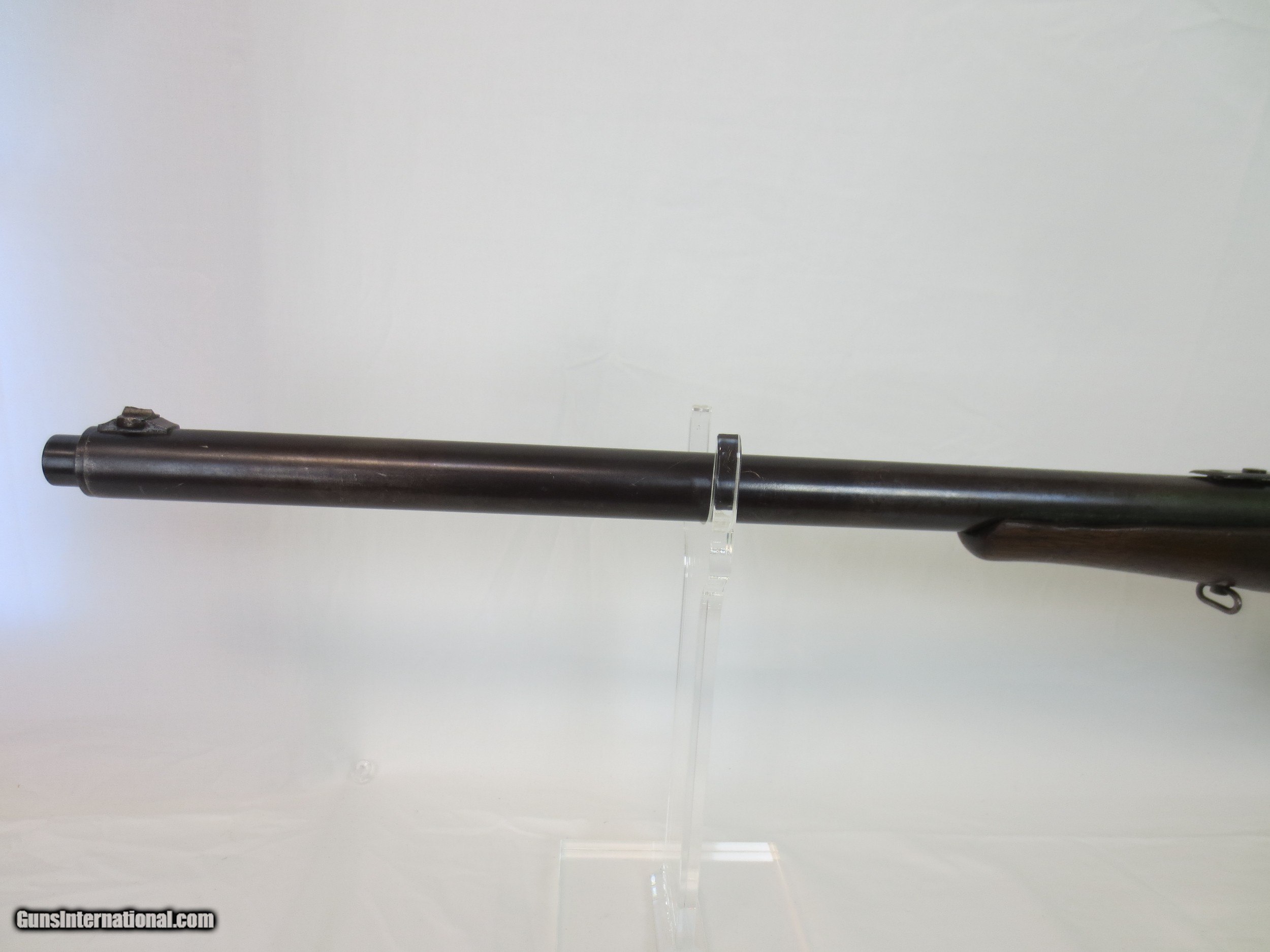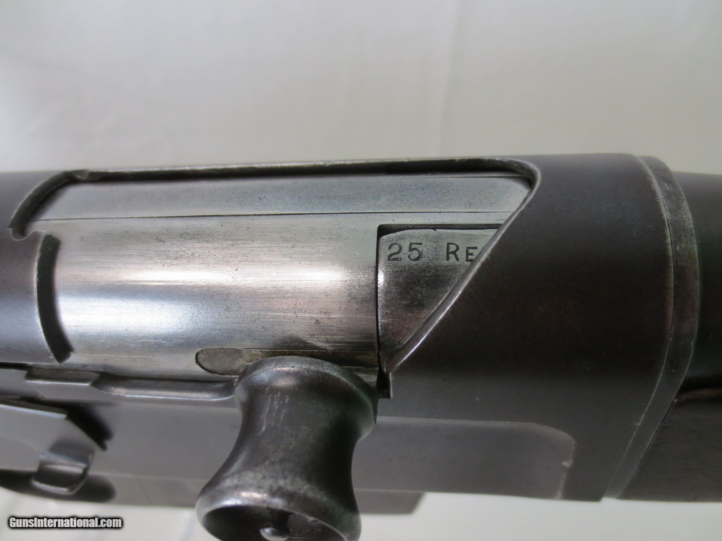 Description: Remington Model 8 in 25 Remington. Serial # 31380 dates to manufacture in 1912. Features a 22” barrel with some light pitting in the bore. The lands and grooves are quite visible. The outer barrel is dent / rust free. The bluing is good for 111 years old, with some spotty plum and thin areas overall. There is an area of light pitting on the barrel just behind / right of the front sight. The stock and forearm are crack free and appear to be in the original finish. Overall, the English stock and forearm are nice for the age with just the usual use marks and scratches. Nice plastic butt plate. The rear sight is an unusual adjustable peep, manufacturer unknown, unmarked. Original rear sight needs a screw. Please review the pictures and email me ask questions. Shipping, insurance, packaging & handling is a flat $50.00 east of the Mississippi, $65.00 west. I ship on Saturdays and Mondays. Please note that I do not ship to California. If you require FFL to FFL shipping add $25 to total price. Thanks for your interest. SOLD Rifle Caliber: .25 Remington |