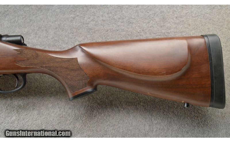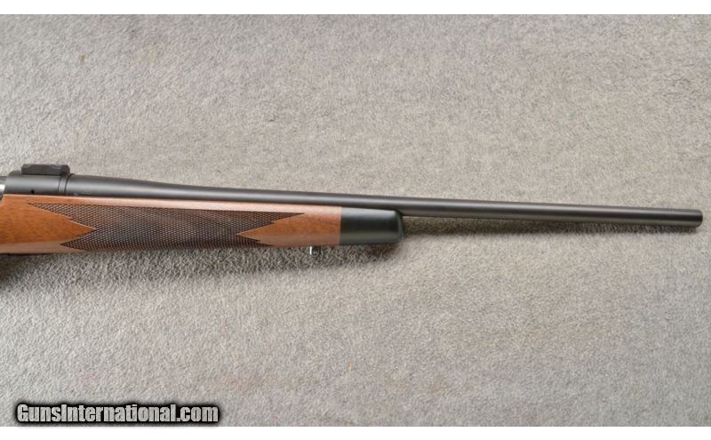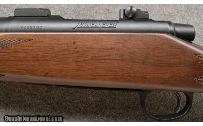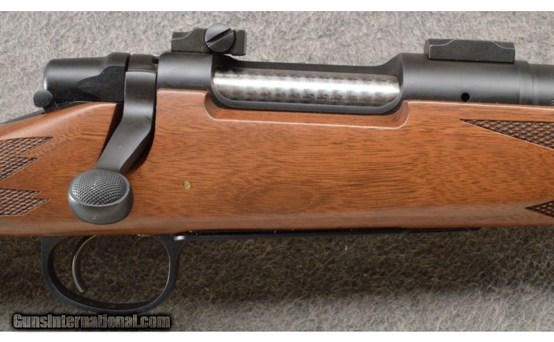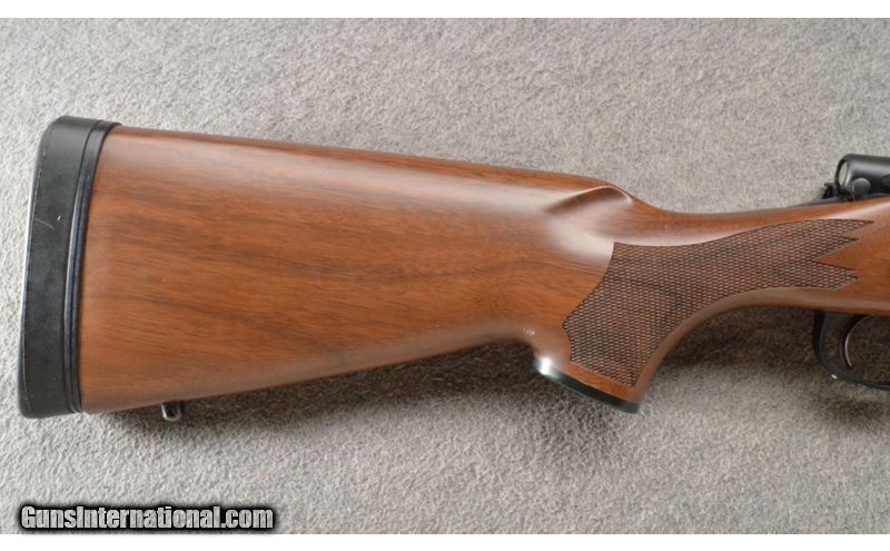 Description: This is a very nice and hard to find Remington Model Seven in .243 Win. The rifle has a very nice walnut stock with a raised comb, black grip cap and checkered pistol grip stock. The blue receiver and 20 inch barrel are new looking. Tis nice rifle comes with a set of Leupold style scope bases. .243 Winchester SOLD Chambers: Bolt action repeater. Metal Condition: Excellent with 1 small scratch on the barrel. Wood Condition: Excellent with a couple of small marks. Barrels: 20 inch blue. Triggers: Single blue. Stock Dimensions: 13 å_ inch LOP. Fore End: Matching checkered walnut with a black tip and a sling stud. Butt Pad: Remington soft black rubber butt pad. Sights: Leupold style scope bases included. Item Location: Owatonna, MN |