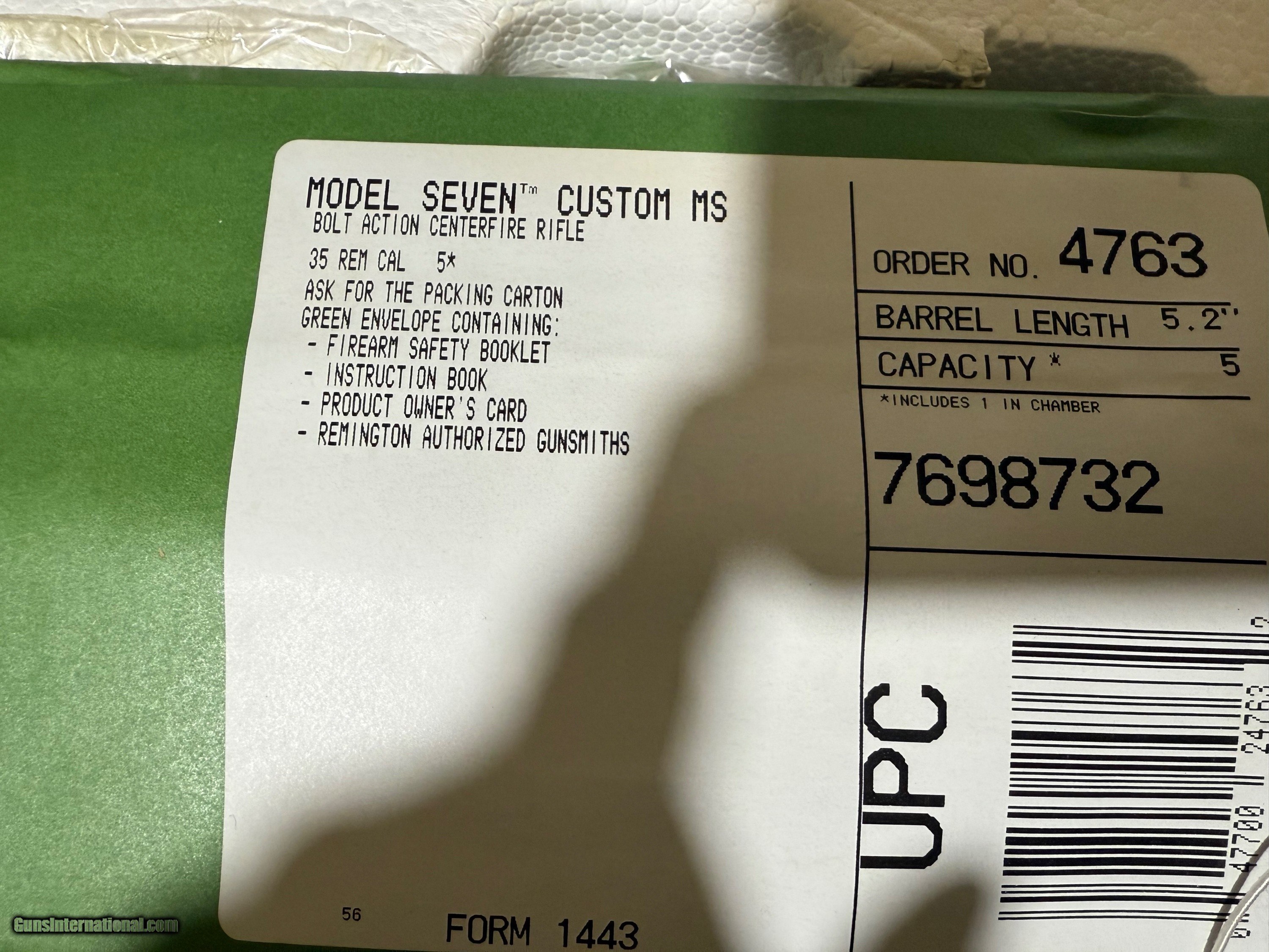 Description: New in the box Rare Remington model seven custom shop MS mannlicher rare 35 rem shipping $89.00 SOLD Rifle Caliber: .35 Remington |