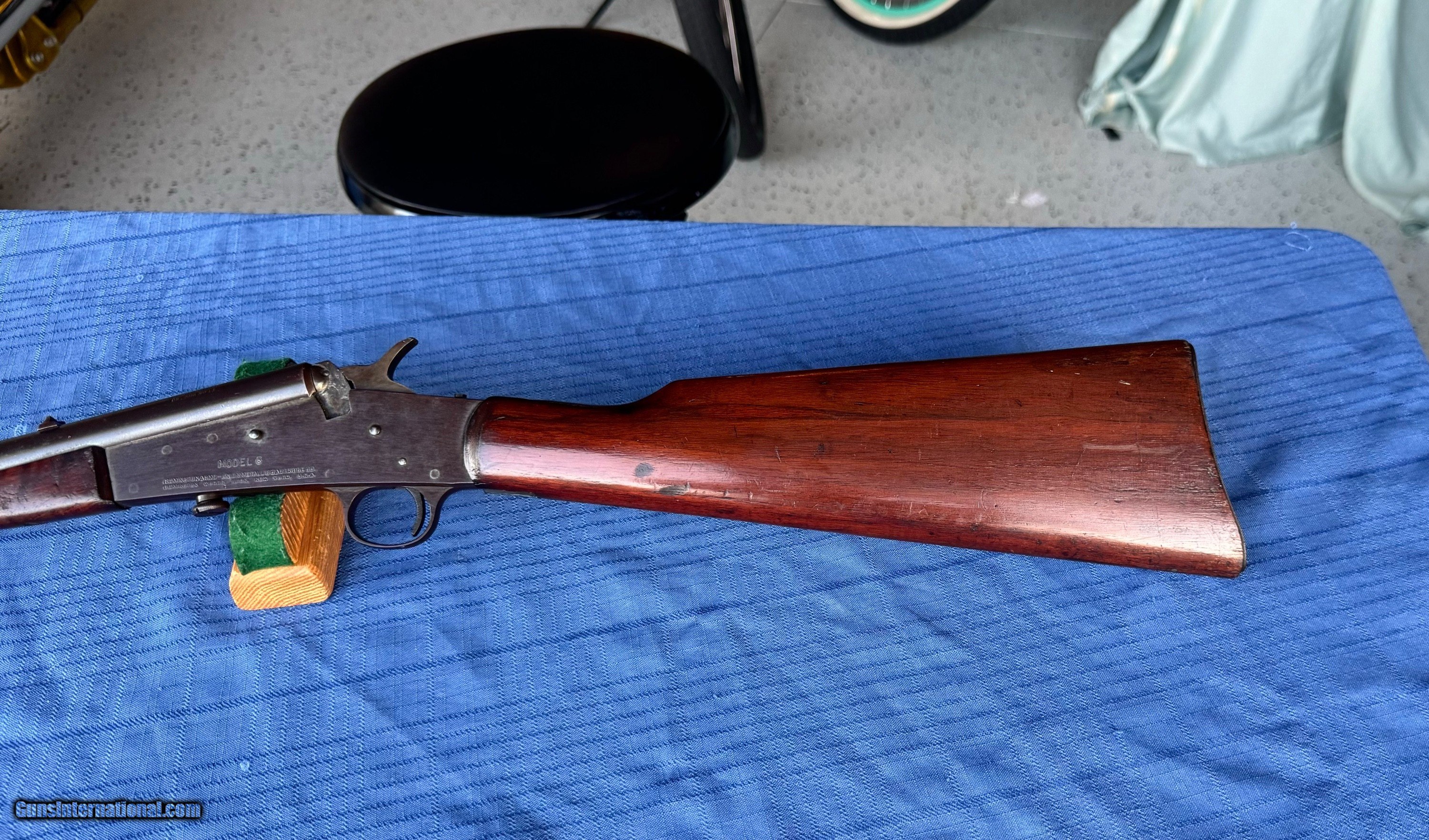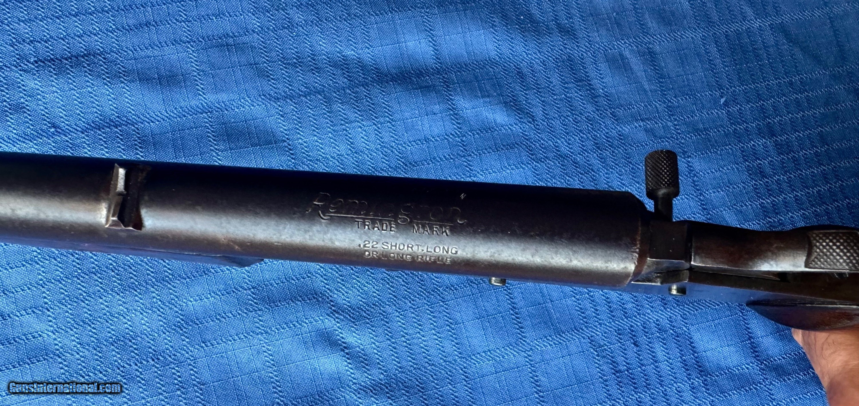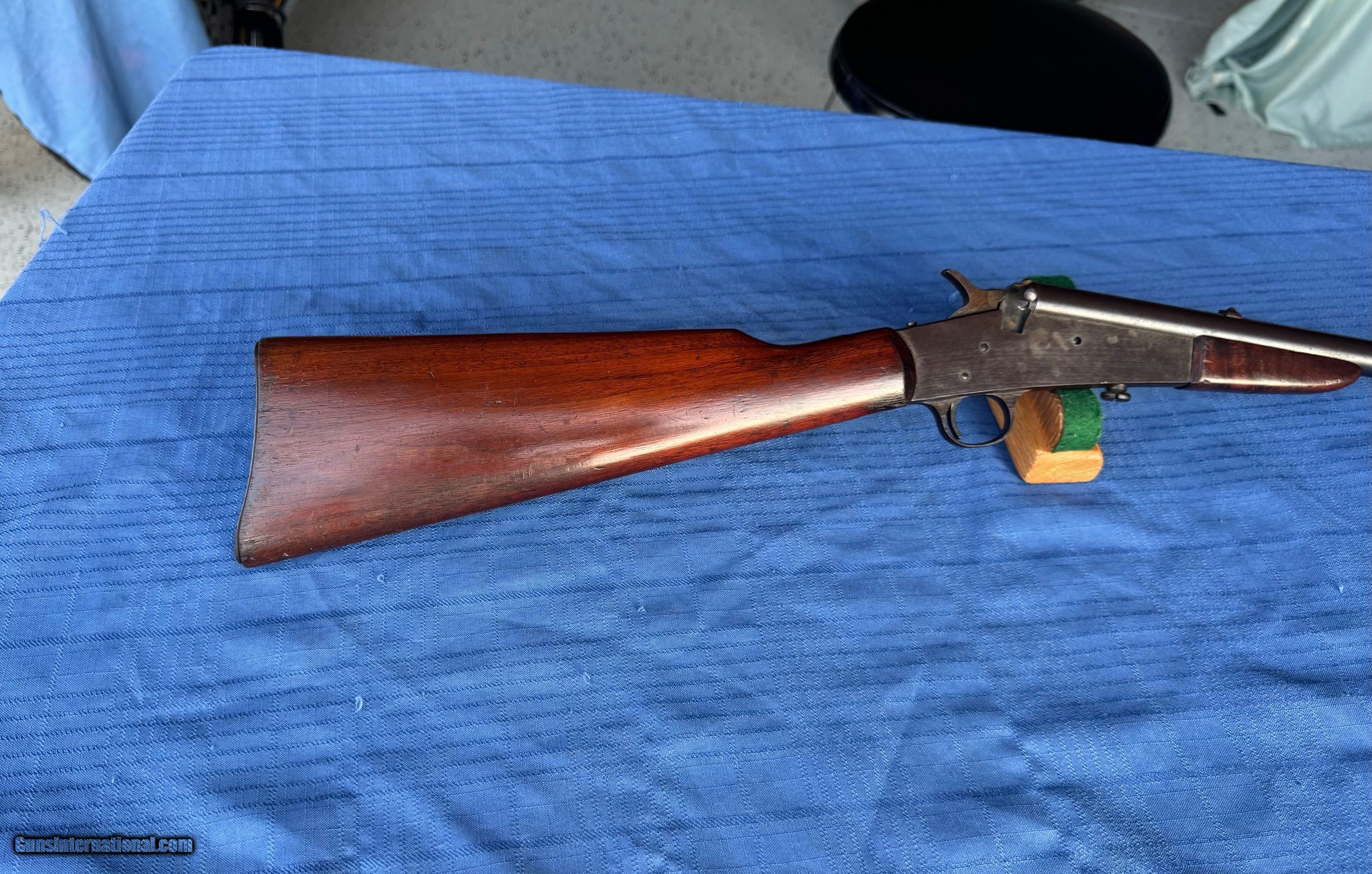 Description: Excellent Example of a Remington No. 6 rifle ! Gun has most all the original blue finish still remaining with handling marks . Frame has most all of the original case colors that's have turned a Smokey Color patina . Walnut stocks are in excellent original condition! Wood to metal fit is Excellent. Bore and mechanics are in excellent condition! Gun is in excellent working condition! Please review my photos and email me with any questions? 3 day inspection as allways ! Thankyou for looking ! Little Jo SOLD Antique: Yes Rifle Caliber: .22 Long Manufacturer: Remington Model: No. 6 Condition: Excellent |