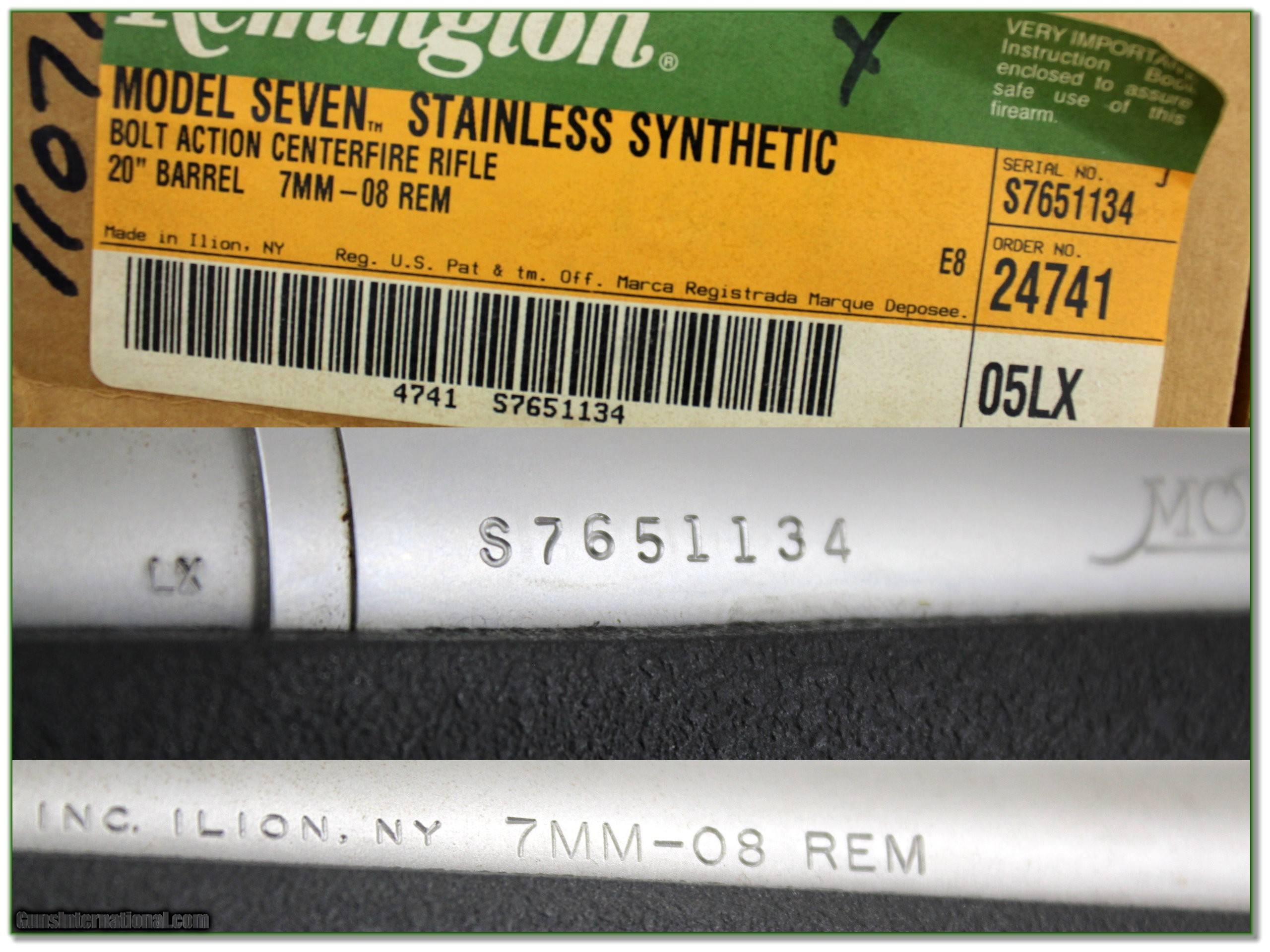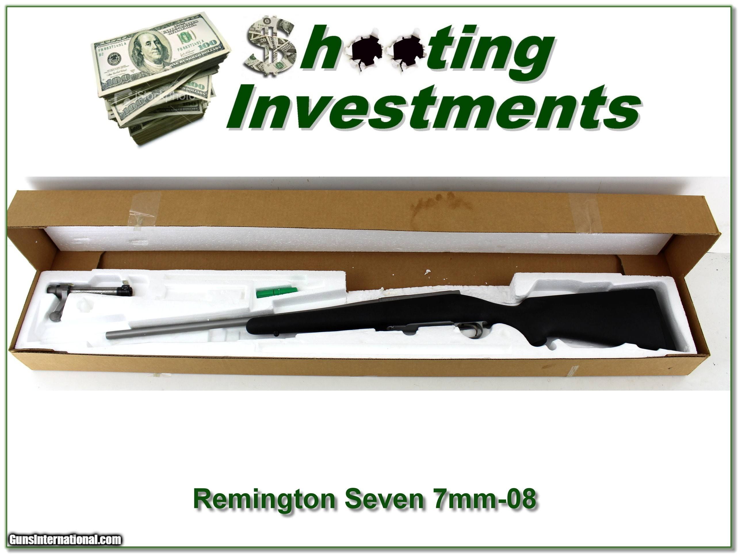 Description: All-weather hunters, this is a like new and in the box Remington Seven Stainless in 7mm-08 Remington. It was made in 2003 and has a 20in barrel. From the bolt jeweling and face I’m sure not more than test fired. It will make a classic lightweight, all-weather hunting gun! Or a fine addition to your collection. It comes as seen in box but I don’t have the manual. Shipping and insurance is $49. Please email me with any questions or larger pictures. (Consign your quality firearms with Shooting Investments for only 12%! Let me know if you have any you would like to sell!) 24-0175 Payment: Payment is by Money Order, Cashier’s Check or Personal Check. I can now also accept Credit Cards (MasterCard, Visa, Discover & American Express) with a 3% convenience fee. Shipping: The shipping charge will be listed in each description. It is $49 for most firearms. Some heavy guns or those insured for over $2000 will be higher. Shipments to Alaska and Hawaii are higher because air shipment is required. Most firearms are shipped on Tuesday and Thursday and usually in 5 days of receipt of payment. We package all shipments carefully and insure them. Optics are shipped Priority Mail and most other non-firearm shipments are shipped First Class. Returns: Our return policy is simple. If for any reason you are not pleased with your purchase, you may return your item for a full refund of purchase price. Ammunition cannot be returned. It is important to us that you are happy. Guns cannot be fired or dissembled before returning them and they must be returned in the same condition as received. Notification of a return must occur within 3 days of receipt at your dealer. Shipping, convenience and dealer fees are not refundable and are the responsibility of the buyer. Lay-a-way: If needed, we offer a 60 day lay-a-way option on most firearms. It is 1/3 now, 1/3 in 30 days and 1/3 in 60 days. Lay-a-way firearm sales are final and cannot be returned. If a lay-a-way is not completed the first payment cannot be refunded. Consigning your firearms with Shooting Investments: We will help you get top dollar for your firearms. While most local guns shops charge 20% or more, our fee is only 12% with a minimum of $75. At your local gun shop it might take months to sell. Selling on-line provides instant access to thousands of interested buyers. You won’t find any other on-line dealer willing to sell your firearms for only 12% or listing every gun on 3 separate s. Selling through an House typically costs the seller 15% and the buyer an addition 15% (so 30%) and you have to wait several months to sell and longer to receive funds. If properly priced, we will sell your firearms within a few weeks. Send us an email or give us a call and we’ll explain how easy it is for you to get top dollar. Trading: Trading for us is really just buying your gun to re-sell. If you have a gun you want to trade, please email a picture and we will let you know what we can give for it. You will always get more if we sell it for you on consignment. SOLD |