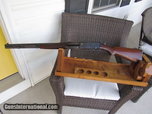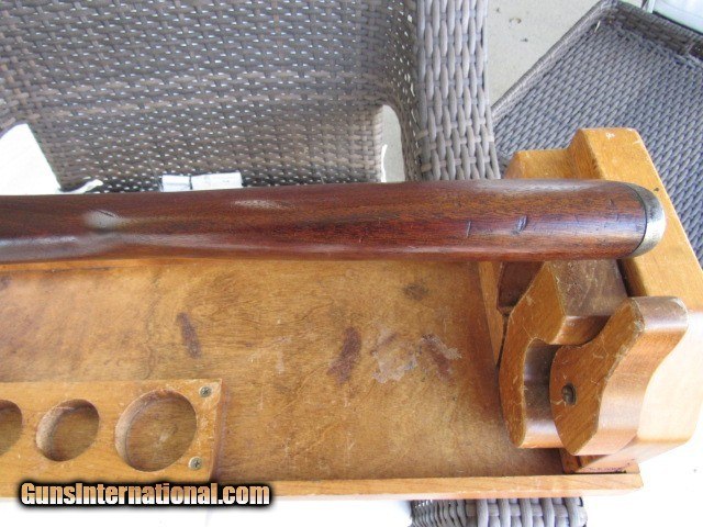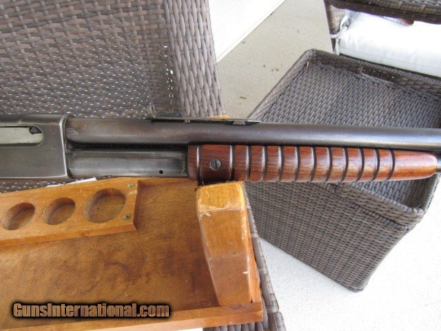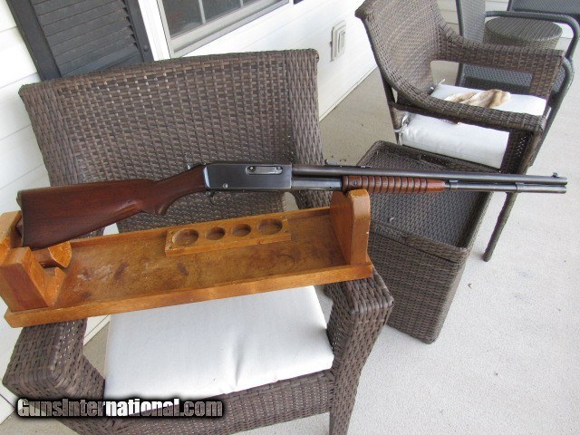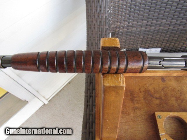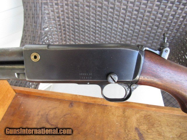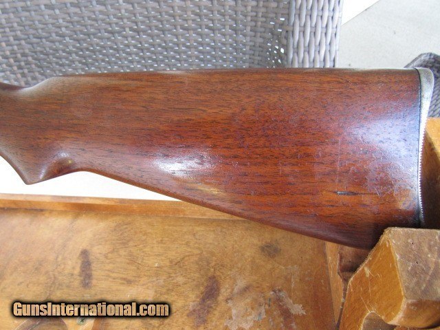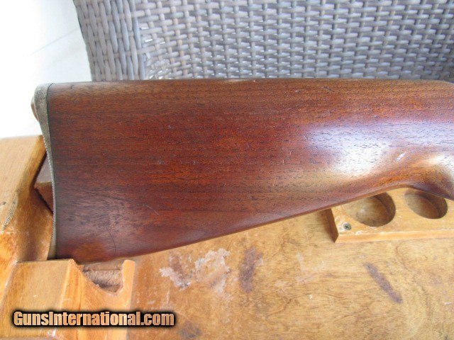 Description: ******* SALE PENDING DAVE IN PA ******* ******* Fall special - Free Shipping!! ******* Scarce Remington Model 14 1/2 in the desirable 44 Rem/44-40 Winchester caliber with 22.5" round barrel, full magazine, plain pistol grip walnut butt stock with correct "upside down" butt plate, walnut grooved fore arm, open sights, pump action, 10-shot capacity, with a correct Lyman receiver peep sight properly marked "R14" on the underside of the base, serial number 111168, barrel date code "BY" indicates manufacture in January 1930. CONDITION: Stocks are sound with no splits or cracks, never sanded or refinished, still tight and proud. There is a very small grain check on the left side of the butt stock. Typically these stocks split up near the receiver and at the front end of the fore arm. Thankfully this piece is void of those blemishes. Bore is near mint, super bright and shiny, very sharp rifling, rated at 9.75 of 10 only because it has been fired and can't be listed as "new." Receiver and barrel retain 70% bright original blue with some carry wear to the underside front of receiver and a couple of nicks on the barrel. All markings are crisp. Mag tube correctly has the two retaining bands and retains 50% original blue due to proper function of the action (when the fore arm is pumped to eject the spent shell and load the next one, the entire magazine tube assembly slides, which is the way this model was designed). Rifle retains the original and correct front and rear sights. Peep sight operates perfectly, as does the action. Seldom offered for sale, these are highly desired by collectors and shooters alike, so don't miss out! No international sales. Must ship to FFL or C&R license (recent changes in NY State law requires shipment to an FFL only if going to a NY State buyer). Payment by personal check, bank check or postal money order (sorry no credit cards). 3 day non-firing inspection. Buyer pays return shipping. Packed with care and shipped USPS Mail with tracking. SOLD Curio/Relic: Yes Rifle Caliber: .44-40 Winchester Manufacturer: Remington Model: 14 1/2 Serial Number: 111168 Barrel Length: 22" Round Condition: Excellent Metal Condition: Very good Wood Condition: Excellent Bore Condition: Mint Action: Pump Triggers: Standard/plain Stock: Walnut Butt Pad: Steel Sights: Standard Manufacture Date: 1930 Item Location: New York |