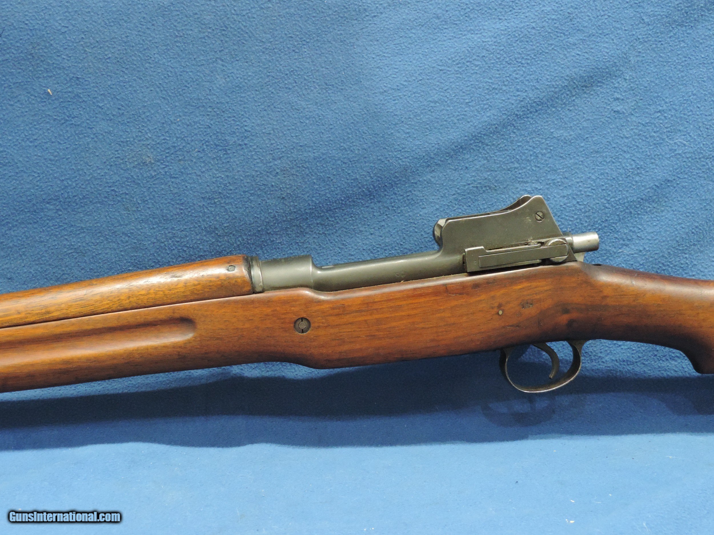 Description: INV. 9850 SWEET U.S. REMINGTON 1917 (ENFIELD), CAL. .30-06 SER.193433. THIS BEAUTY LOOKS LIKE IT MAY NEVER HAVE GONE TO WAR. THE REMINGTON RECEIVER AND REMINGTON MARKED BARREL HAVE THE CORRECT FLAMING BOMB, ORDINANCE STAMP AND IS DATED 4-18. IT HAS RETAINED ABOUT 90-95% 0F THE ARSENAL PARKERIZING. THERE IS NO RUST, PITTING OR SCRATCHES. THE STOCK HAS RETAINED ABOUT 85-90% OF THE ORIGINAL LACQUER. IT IS IN FINE SHAPE WITH JUST A FEW LIGHT SURFACE DINGS, NO SPLITS ANYWERE.THE BOLT, SLIDE RAIL AND BOLT FACE SHOW IT HAS HAD VERY LITTLE USE. THE BORE IS QUITE BRIGHT WITH SHARP CRIP RIFLING AND LIGHT SCATTERED FROST. IT IS A SUPER EXAMPLE OF A GUN THAT WAS KNOWN FOR IT'S ACCURACY IN TWO WARS. IT SHOULD BE GREAT FUN AT THE RANGE OR IN A MILITARY COLLECTION. ***PURCHASE SATISFACTION GUARANTEED. To purchase this firearm or if you want to request more information contact us at: Email ckguns[at]ymail[dot]com Phone 201-512-0002 Cell 201-575-6838 FAX 201-215-4759 We accept most major credit cards. Prices shown are Discounted 3% for Cash or Check. The buyer must be familiar with all the laws governing the purchase and the ownership of firearms in their own city and state. The Yankee Armorer, Inc is not responsible for any failure to comply with or observe these laws. The Yankee Armorer, Inc will only ship after full payment and receipt of all required documents. Shipping: Add $35.00 for handguns, $45.00 for long guns. New Jersey buyers are subject to a 7% sales tax. The Yankee Armorer, Inc offers a 3 day inspection period with full refund upon return of intact firearm and in the original condition. The Yankee Armorer, Inc offers a no interest lay away program - 25% down; 25% in 30 days; 25% in 60 days; and full payment in 90 days. Any violation of this policy is subject to restocking and forfeiture of all payments. Any variation from this policy must be agreed to in advance. Unshipped Cancelled sales are subject to a 20% restocking fee. Be advised that all firearms sold by The Yankee Armorer, Inc. or the Gun Exchange, LLC (SELLER) are sold as collector’s items. They have not been fired or tested for safety and must be examined by a license gunsmith prior to use. By purchasing any item from the (SELLER), you are agreeing to hold the (SELLER) free from any damages or lawsuits of any nature. Any item left for transfer or storage will be charged to $25.00 per month, per item from the day of its receipt. Any variation from this policy must be agreed to in advance. Store hours 10:00 am to 5:00 pm Tuesday -Saturday. It's always best to call for appointment. Store 201-512-0002, cell 201-575-6838. SOLD |