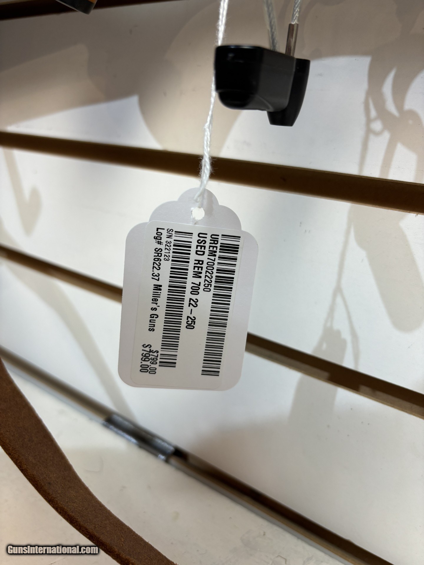 Description: USED. Remington 700 in 22-250, barrel is 24 inches, bore is clean and rifling is crisp. The wood has very few handling marks. The barrel has lost approximately 25 percent of bluing, overall this would be a perfect varmint rifle. SOLD Manufacturer: Remington Model: 700 Serial Number: 322123 Condition: Good |
