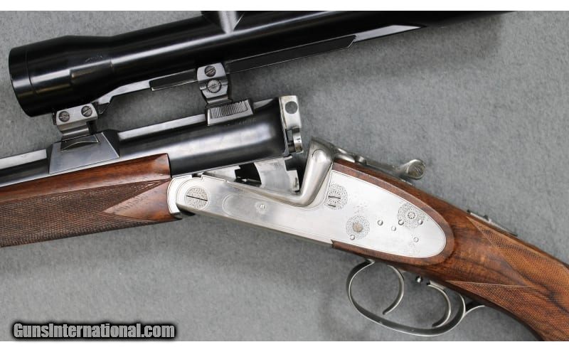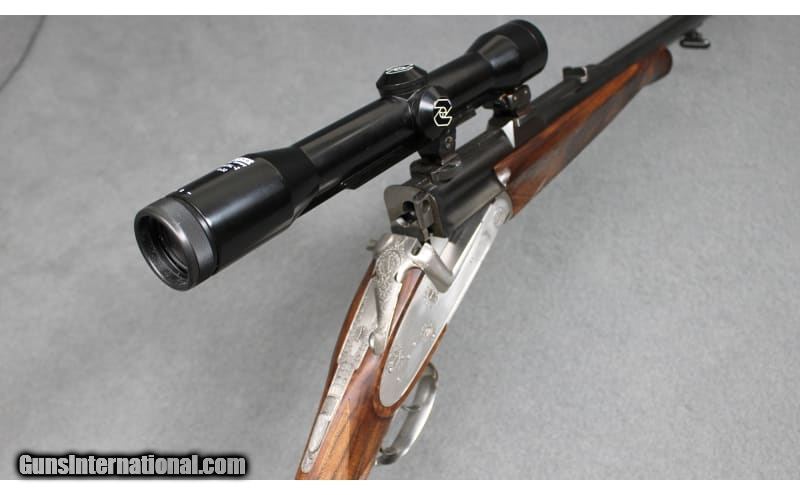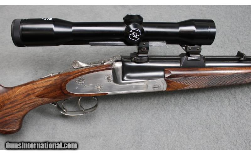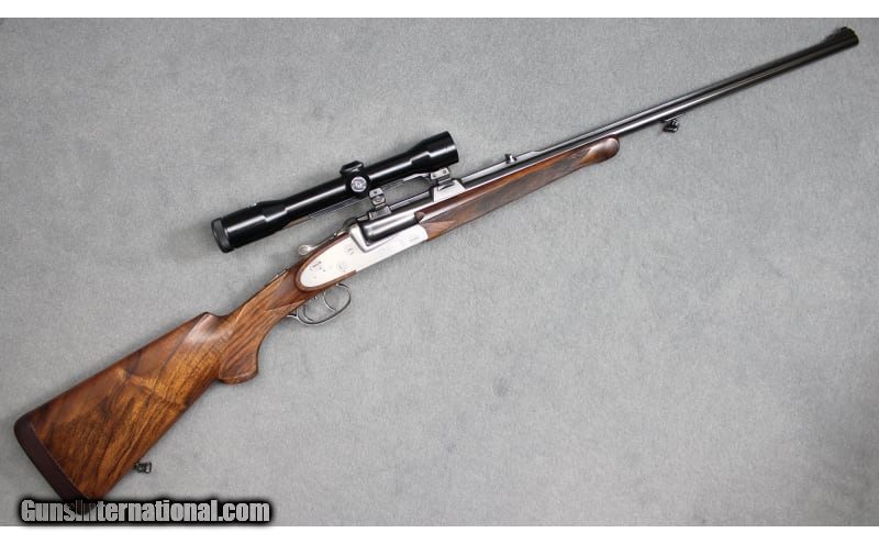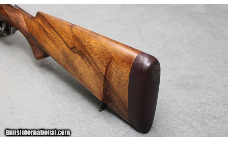 Description: Factory engraved Renato Gamba Mannlicher Mustang single shot rifle chambered in .270 Winchester. Features include a 25-1/4 inch blued barrel with extractor and coin-finished sidelock action with English scroll engraving. Engraving is signed "D.F." to the right of the triggers. The rifle also features a double set trigger and tang mounted manual safety switch. 1978 dated Italian proofs. Comes with a mounted Zeiss Diatal-Z 4x32mm scope in German claw mounts. .270 Winchester SOLD Metal Condition: Excellent with Minimal Handling Marks Wood Condition: Excellent with Minimal Handling Marks Bore Condition: Bright And Clear with No Pitting and Light Streaking Barrels: 25.25 inch Triggers: Double Set Stock Dimensions: 14.5 inch LoP Sights: Ramped Beaded Blade Front and Fixed Rear on Solid Rib; Mounted Rifle Scope Item Location: Fort Worth, TX |