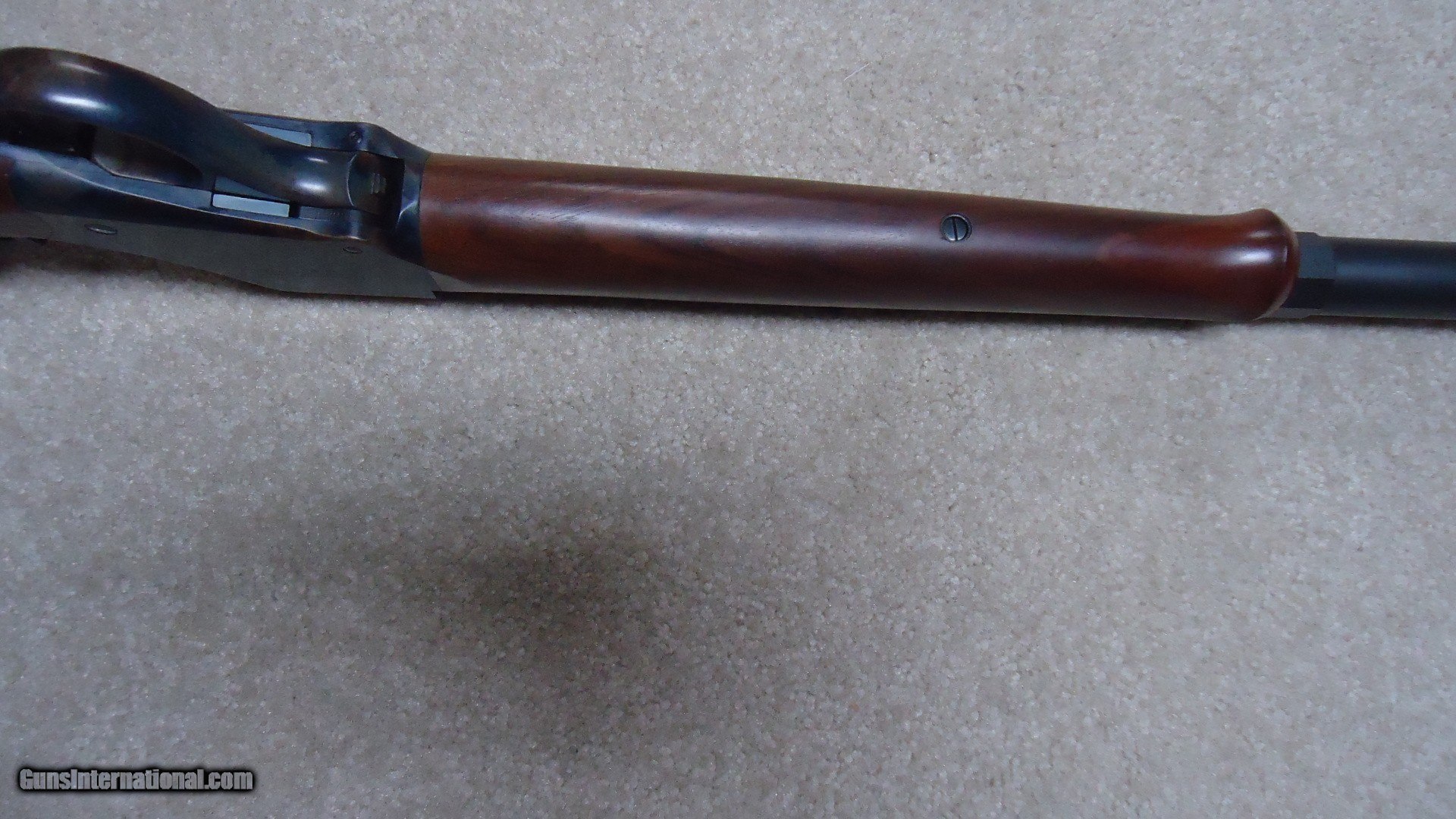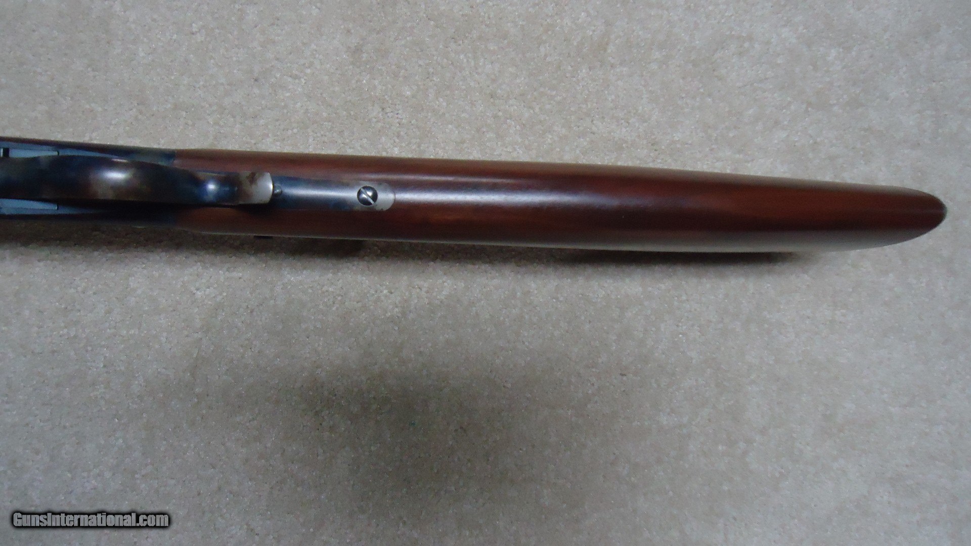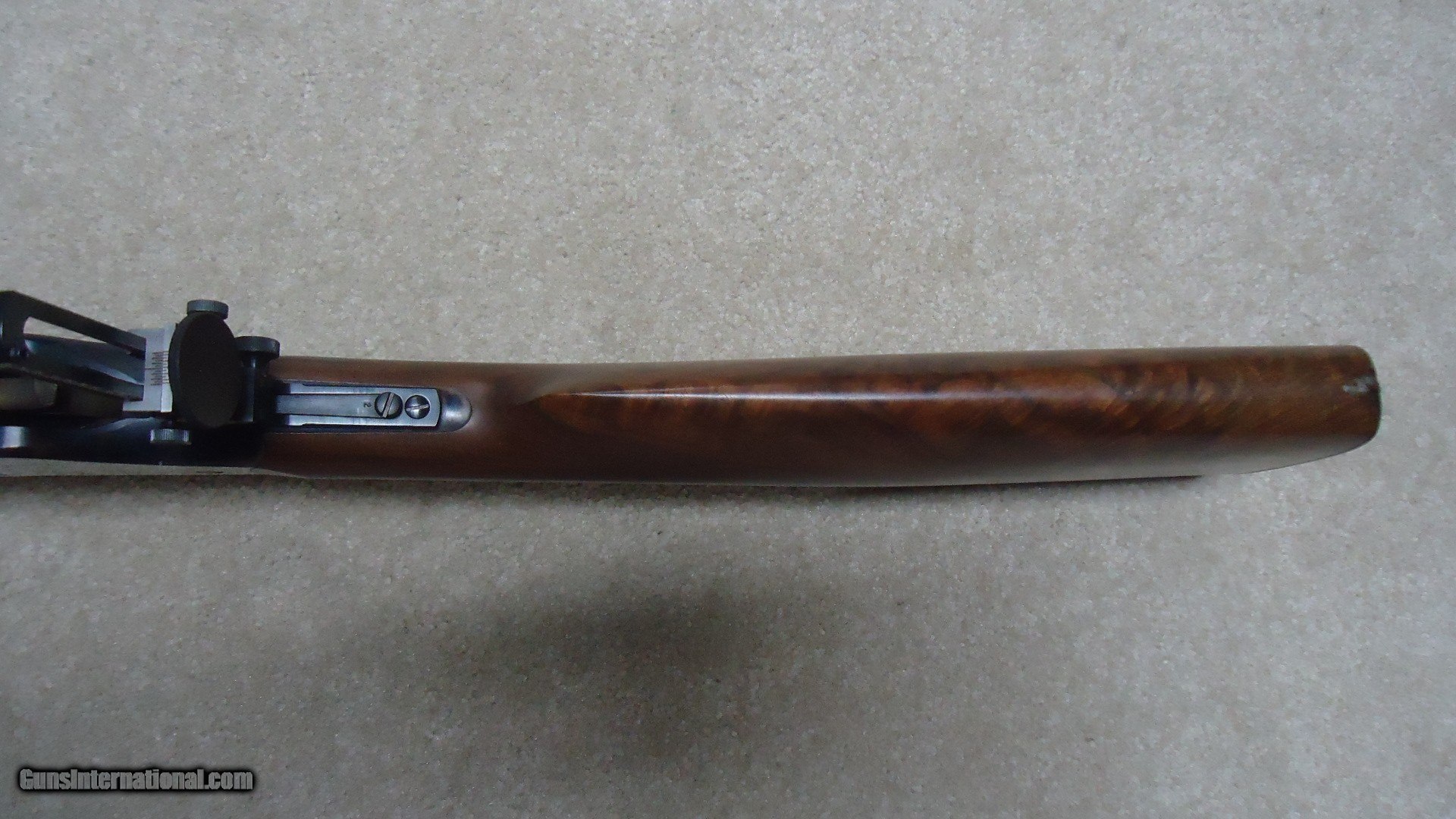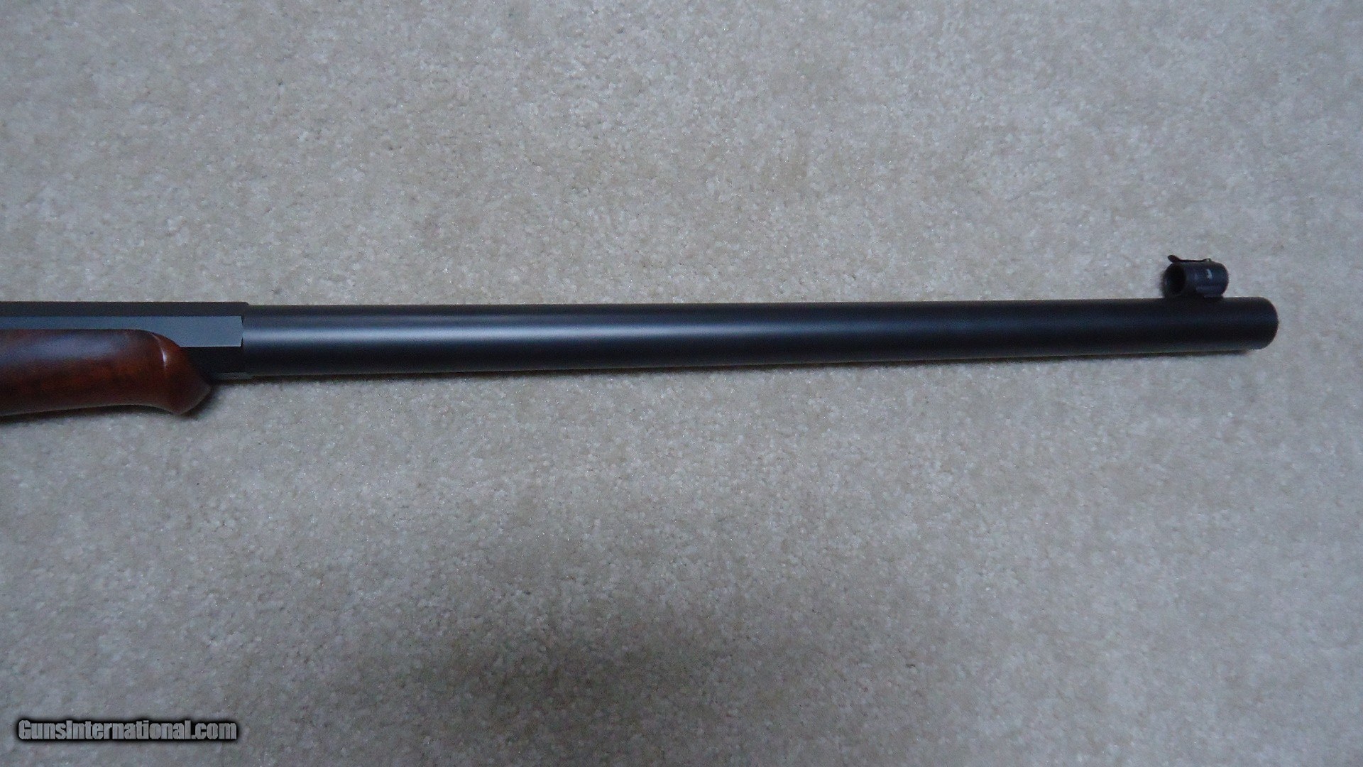 Description: CUSTOM C. SHARPS MADE IN BIG TIMBER, MONTANA, 1885 HIGHWALL SINGLE SHOT IN .30-40 KRAG CALIBER. These are beautifully made rifles on the Winchester pattern thick side Highwall action that is known for its fast lock time and strength. This one has a 28" #3 weight half-octagon barrel (medium weight and standard in antique Winchester Highwall rifles in this caliber). The barrel is fitted with a full buckhorn folding ladder rear sight with elevation slide paired with a globe front sight that will take inserts (a post insert in in the globe now). It is also fitted with a C. Sharps marked mid-range fully adjustable for windage and elevation vernier tang sight. The semi-fancy walnut stock and forend show some nice grain and are a n attractive deep brown color. The butt is fitted with a case colored checkered steel shotgun butt plate. The receiver is case colored and the trigger pull is light and crisp. Overall, this rifle appears about new and unfired. These are always back ordered with a long delivery wait time. This one is also in a great, traditional caliber that was quite popular in Winchester Highwalls in the late 1890s to early 1900s. A super hunting or target rifle. Weighs approx. 10 1/2 lbs. SOLD Rifle Caliber: .30-40 Krag Manufacturer: C. SHARPS Model: 1885 HIGH WALL Serial Number: 85-6XX Barrel Length: 28" HALF OCT. Condition: LIKE NEW |