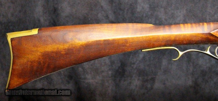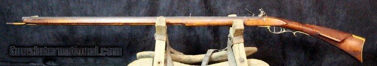 Description: .32 cal, NVSN, 39 inch barrel, rust blue finish, hard wood stock (maple?), brass furniture, hand made sight, no fore end cap,. Condition: some storeage dings other wise new. SOLD Antique: Yes |