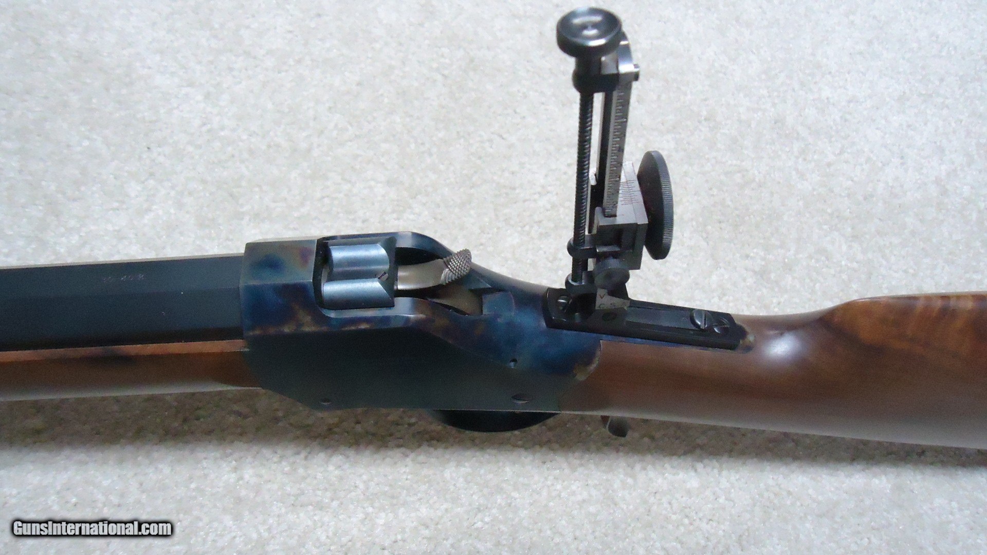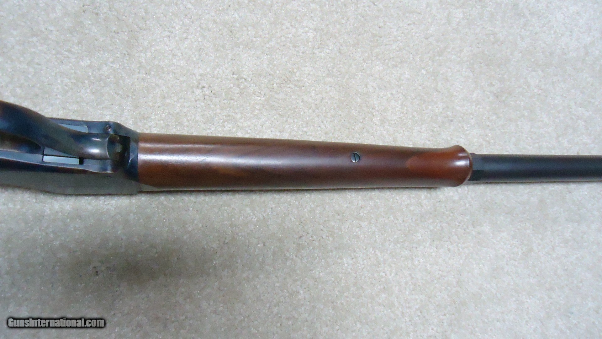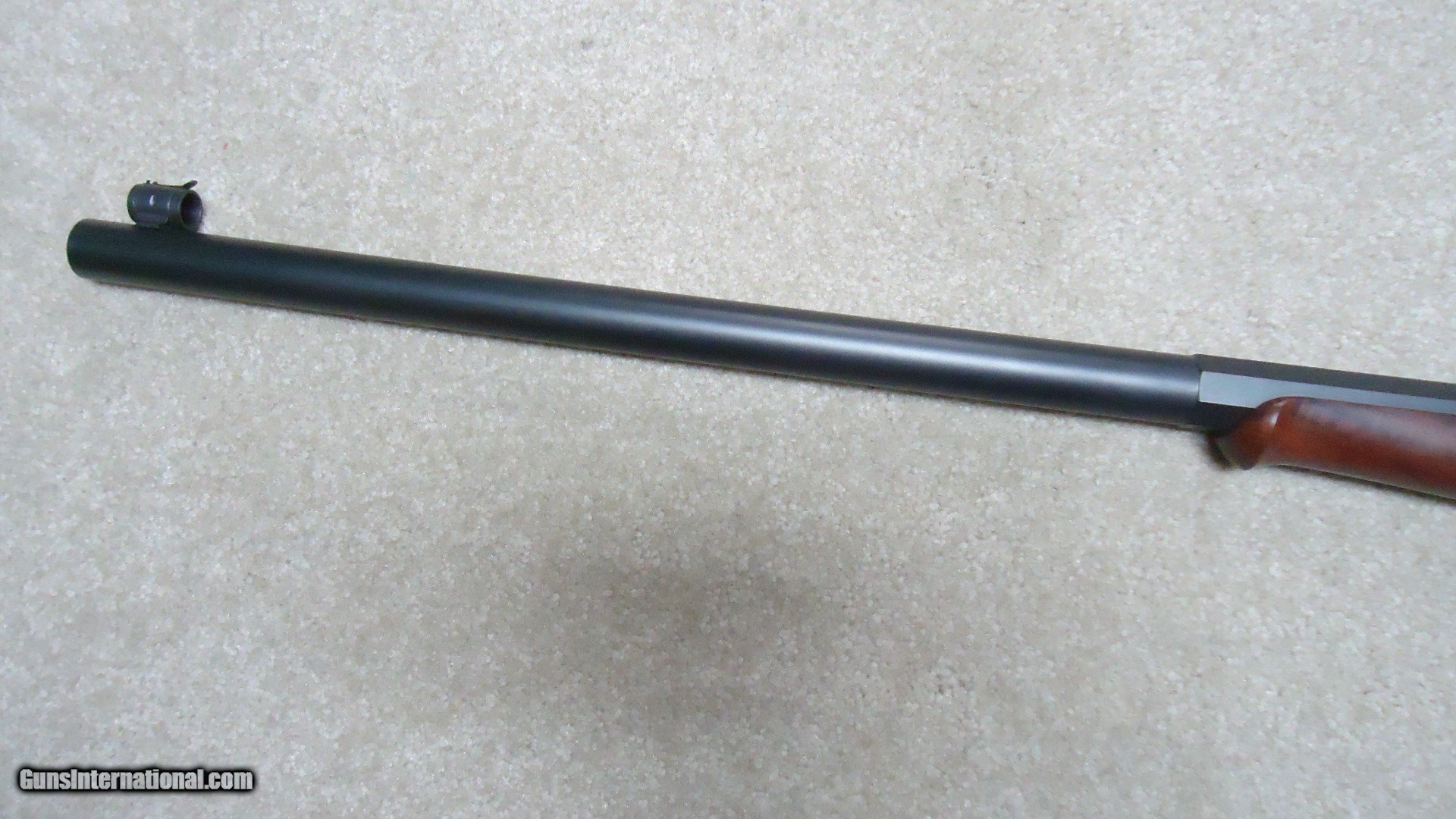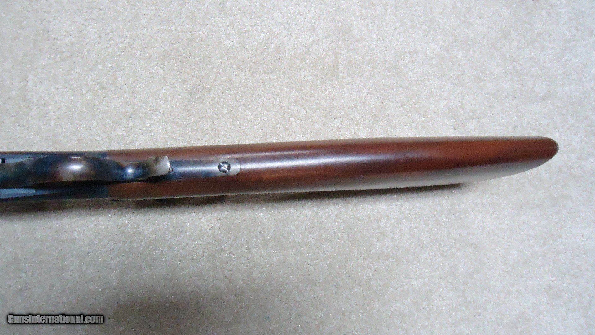 Description: CUSTOM C. SHARPS MADE IN BIG TIMBER, MONTANA, 1885 HIGHWALL SINGLE SHOT IN .30-40 KRAG CALIBER. These are beautifully made rifles on the Winchester pattern thick side Highwall action that is known for its fast lock time and strength. This one has a 28" #3 weight half-octagon barrel (medium weight and standard in antique Winchester Highwall rifles in this caliber). The barrel is fitted with a full buckhorn folding ladder rear sight with elevation slide paired with a globe front sight that will take inserts (a post insert in in the globe now). It is also fitted with a C. Sharps marked mid-range fully adjustable for windage and elevation vernier tang sight. The semi-fancy walnut stock and forend show some nice grain and are a n attractive deep brown color. The butt is fitted with a case colored checkered steel shotgun butt plate. The receiver is case colored and the trigger pull is light and crisp. Overall, this rifle appears about new and unfired. These are always back ordered with a long delivery wait time. This one is also in a great, traditional caliber that was quite popular in Winchester Highwalls in the late 1890s to early 1900s. A super hunting or target rifle. Weighs approx. 10 1/2 lbs. SOLD Rifle Caliber: .30-40 Krag Manufacturer: C. SHARPS Model: 1885 HIGHWALL Serial Number: 85- Barrel Length: 28" HALF OCT. Condition: LIKE NEW |