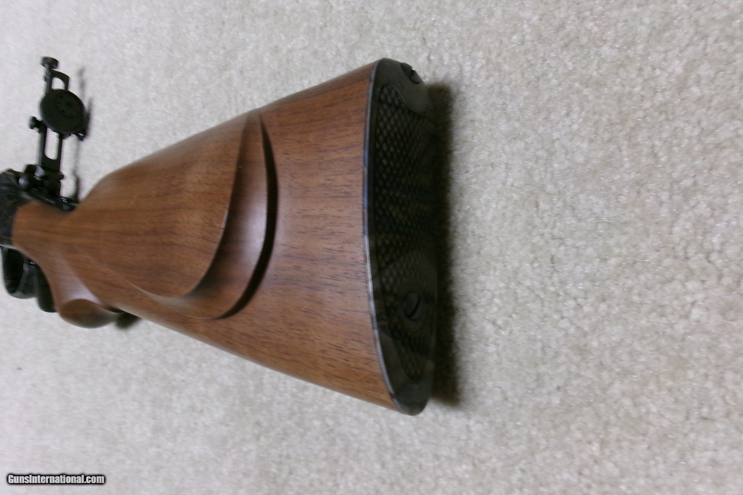 Description: CUSTOM ORDERED C. SHARPS 1885 HIGHWALL IN .45-70. This rifle was completed in December 2023 and appears unused in the original box with paperwork/factory test target etc. It features a 30” standard half-octagon barrel without rear sight dovetail, single set trigger, pistol grip butt stock with curved schnable pistol grip bottom, cheek piece with accent line, checkered color case hardened steel shotgun butt plate, schnable forend tip, straight grained walnut in the butt stock with some figure in the forend, 13 ¾” length of pull, tang sight with windage and elevation adjustments and fitted with one standard eye disc and one Hadley adjustable aperture eye disc, front sight is a globe with spirit level with inserts. Weighs about 10 ¼ lbs. Catalog price for this beautiful rifle would be over $3700 with considerable build and delivery time. Perfect for target shooting, recreational shooting or hunting. Rifle Caliber: .45-70 Government Manufacturer: C. SHARPS Model: 1885 HIGH WALL Serial Number: 85-1XXX Barrel Length: 30" HALF-OCT. Condition: LIKE NEW IN BOX Price: $3,250.00 Contact Seller |