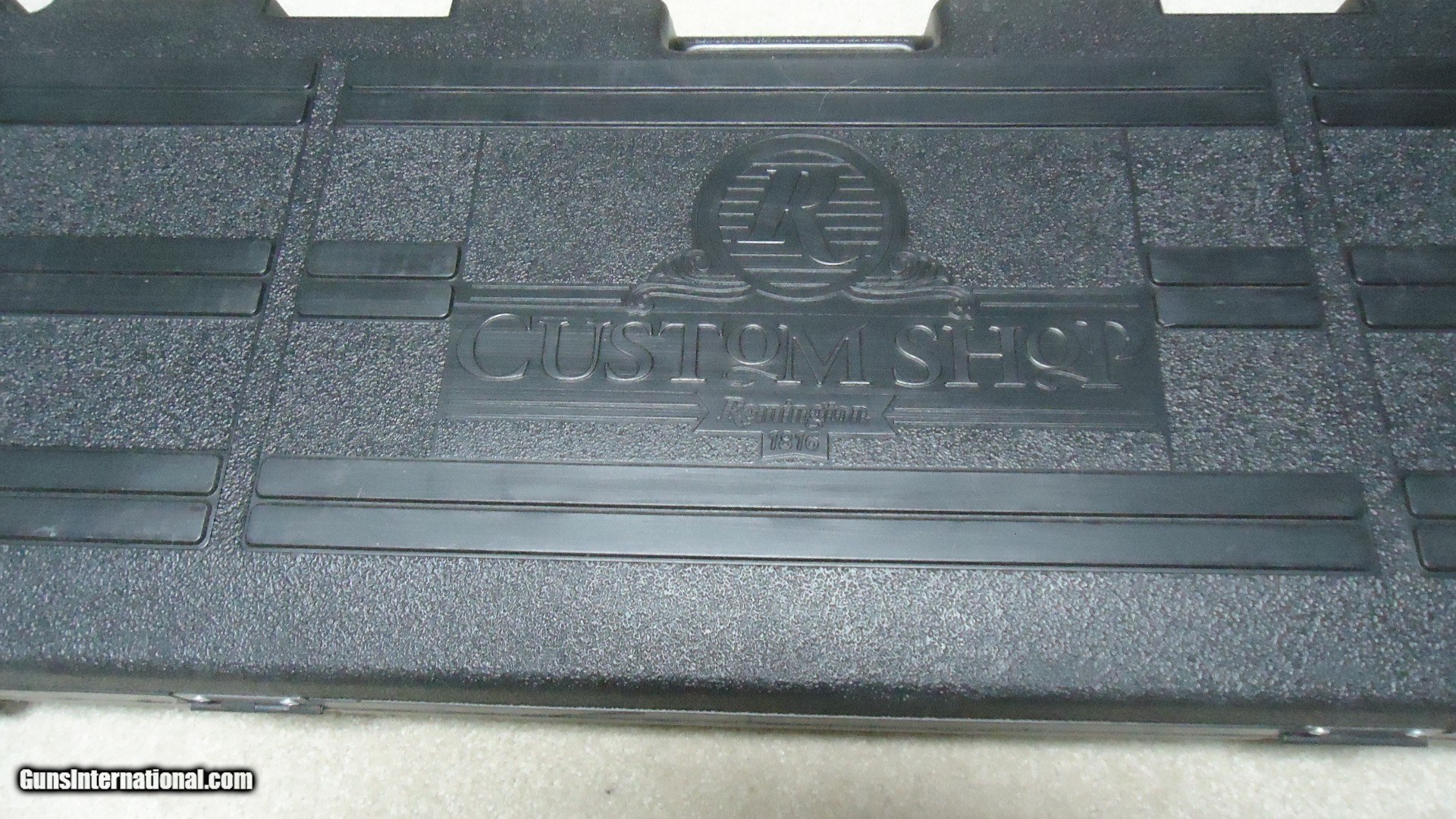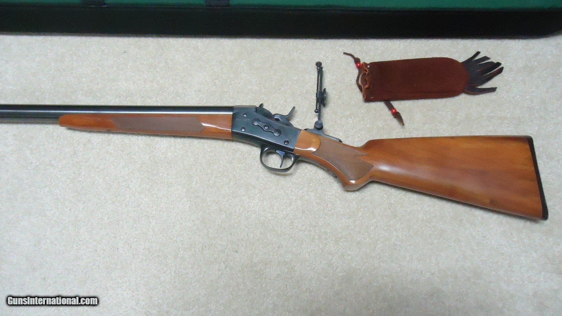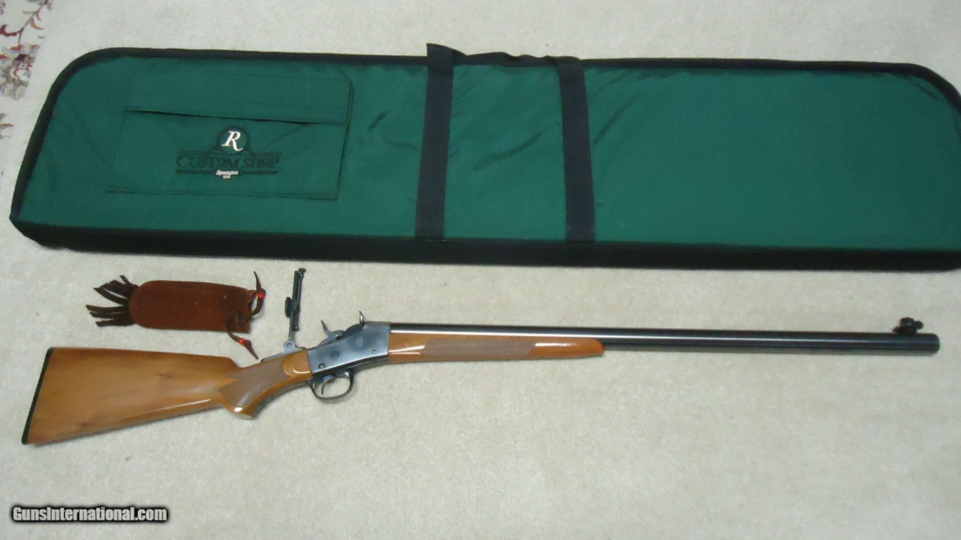 Description: REMINGTON CUSTOM SHOP, CASED .45-70 ROLLING BLOCK PISTOL GRIP, CHECKERED HEAVY SPORTING/TARGET RIFLE, #RB01XX, MADE 2007. Here's from the Remington catalog of the time: Remington No. 1 Silhouette rifle. Illustration courtesy of Remington Arms Co. Inc. For 2007 the No. 1 Rolling Block in .45-70 Government caliber is available through the Remington Custom Shop in Mid-Range Sporter (standard contour barrel) and Silhouette (heavy barrel) versions. The Silhouette is similar to the Sporter, but has a 1 1/8" diameter, heavy round barrel. The barrel has a dovetail for a front sight, but is supplied without sights to allow the shooter the option of after market sights. A single set trigger is standard equipment on the Silhouette rifle, which meets NRA blackpowder cartridge rifle (BPCR) silhouette requirements (Click this portion of text for photos) Here are the basic specifications of the No. 1 Silhouette: