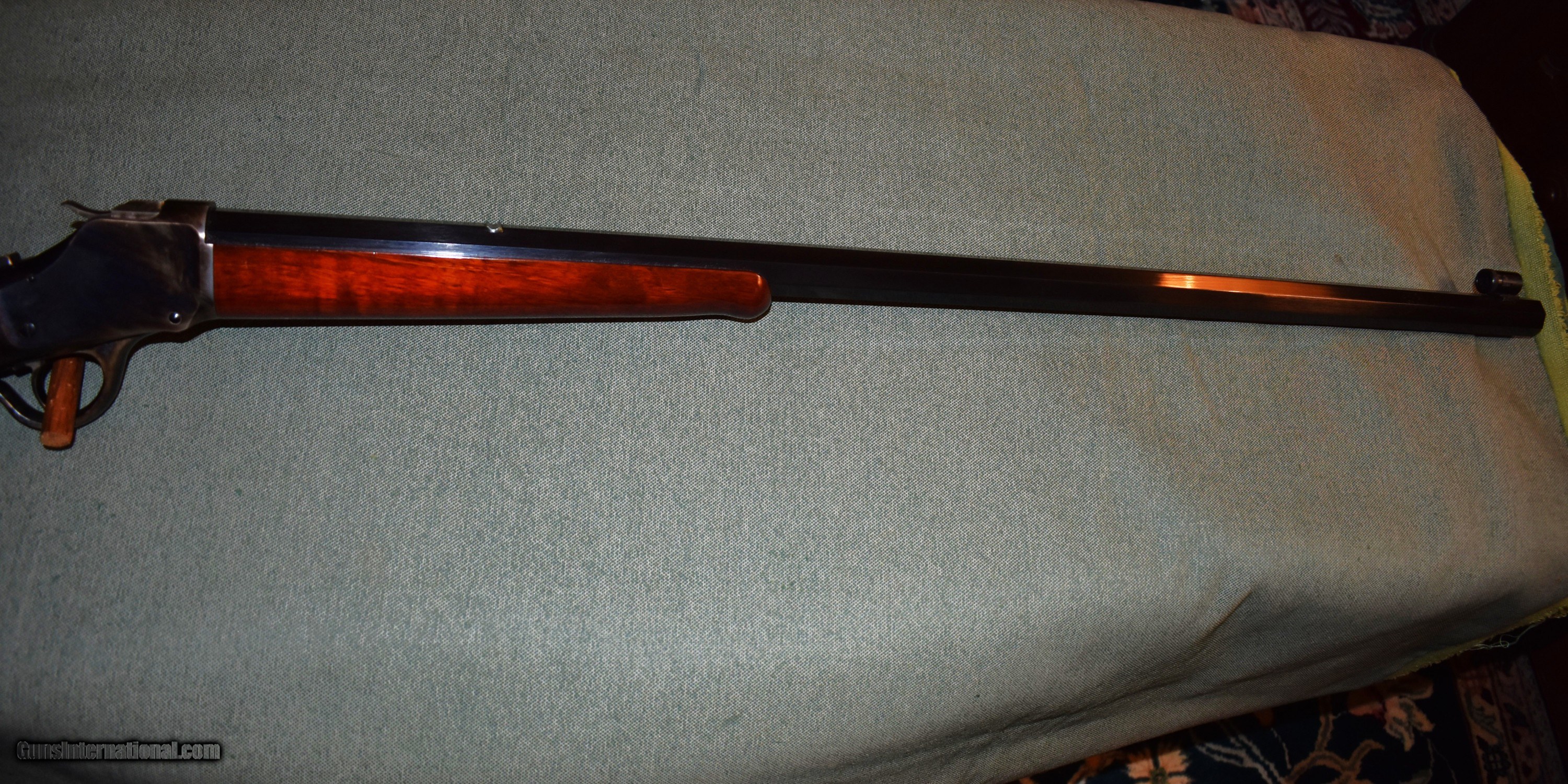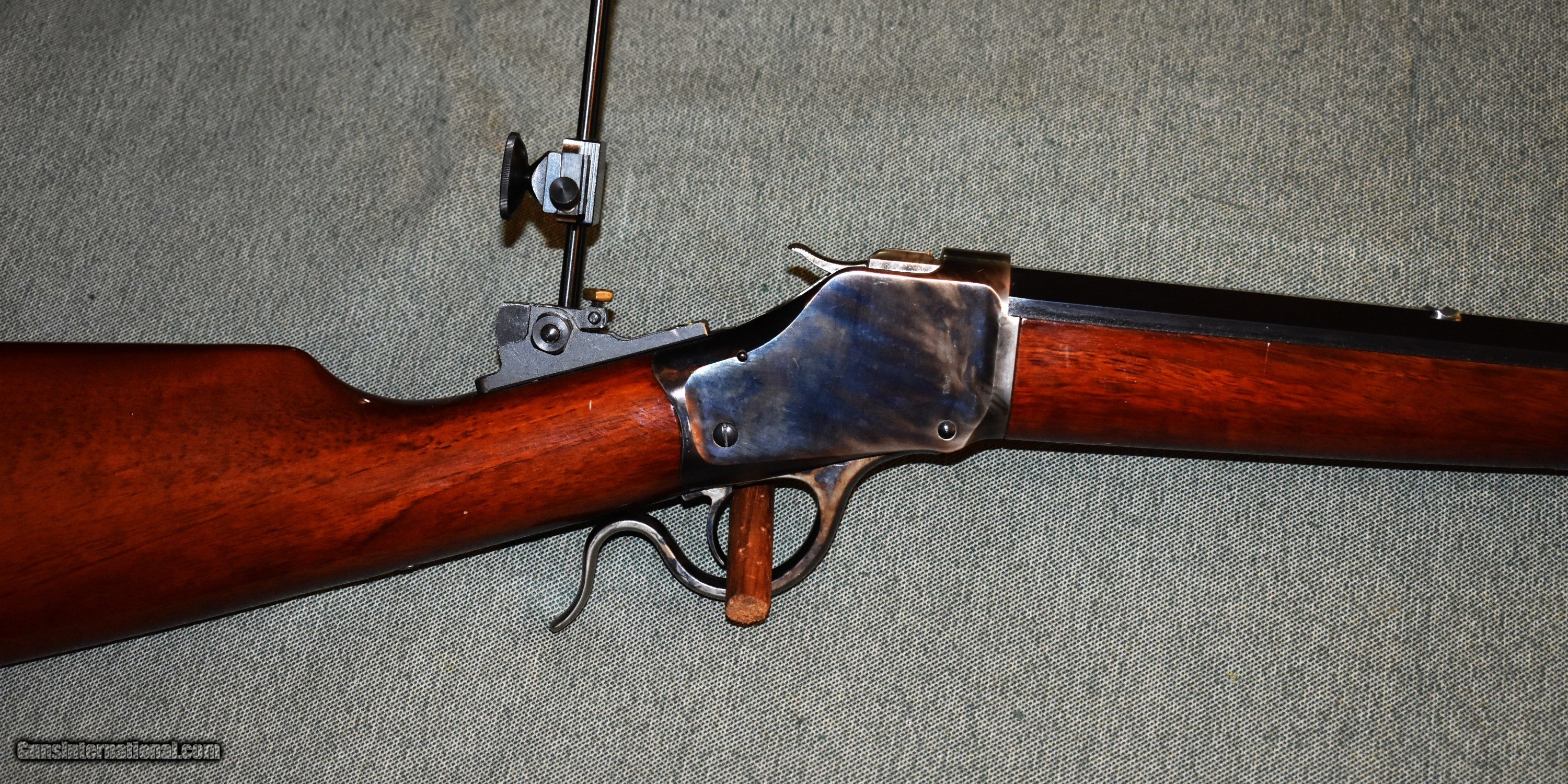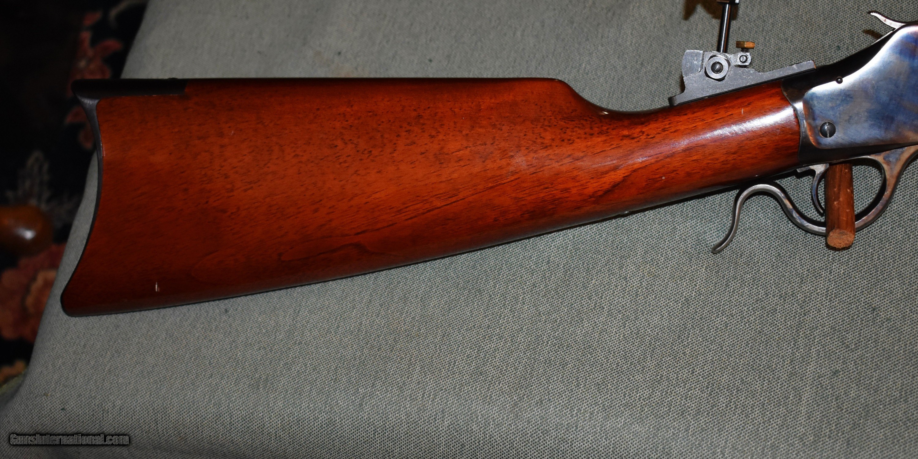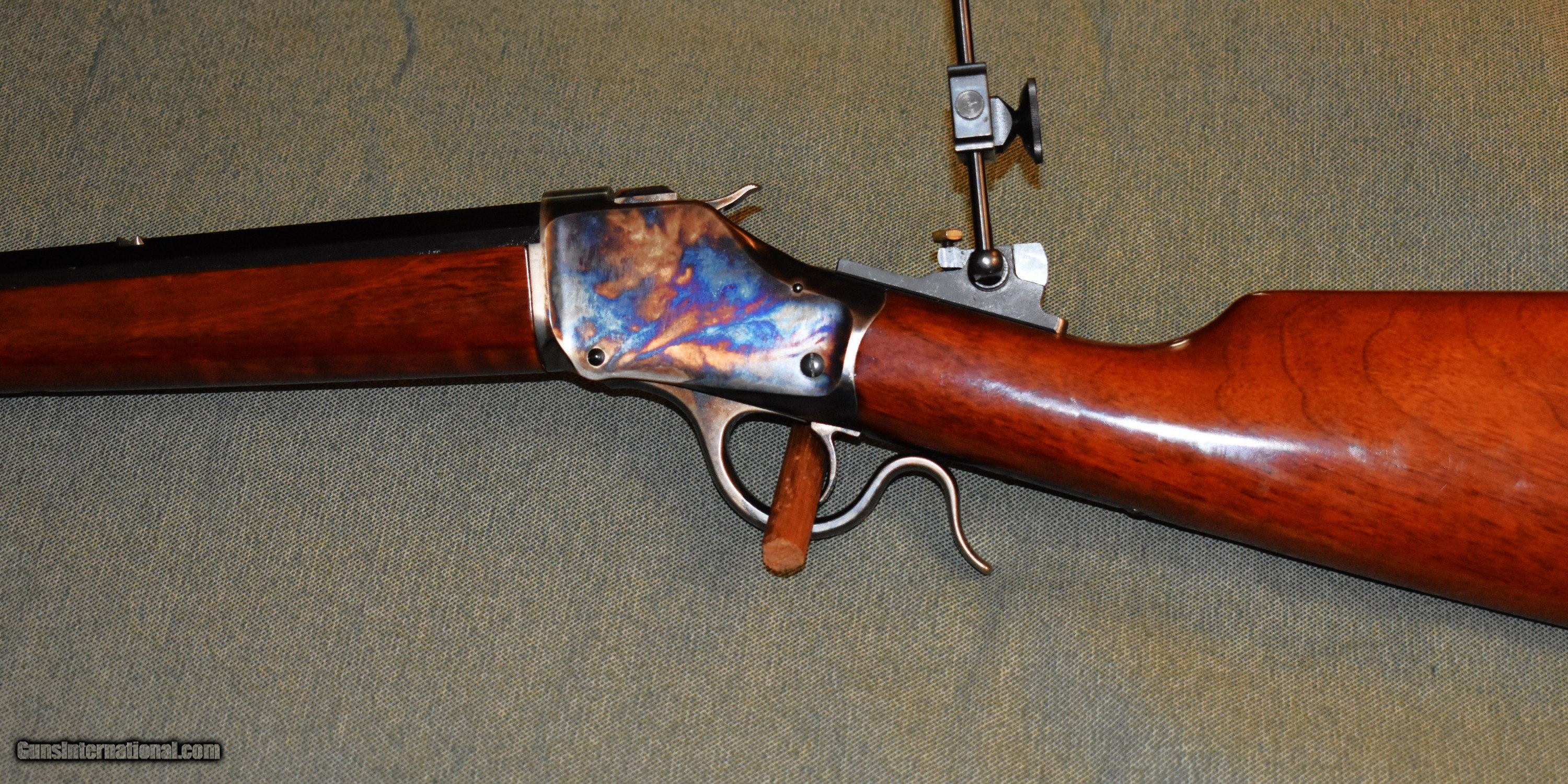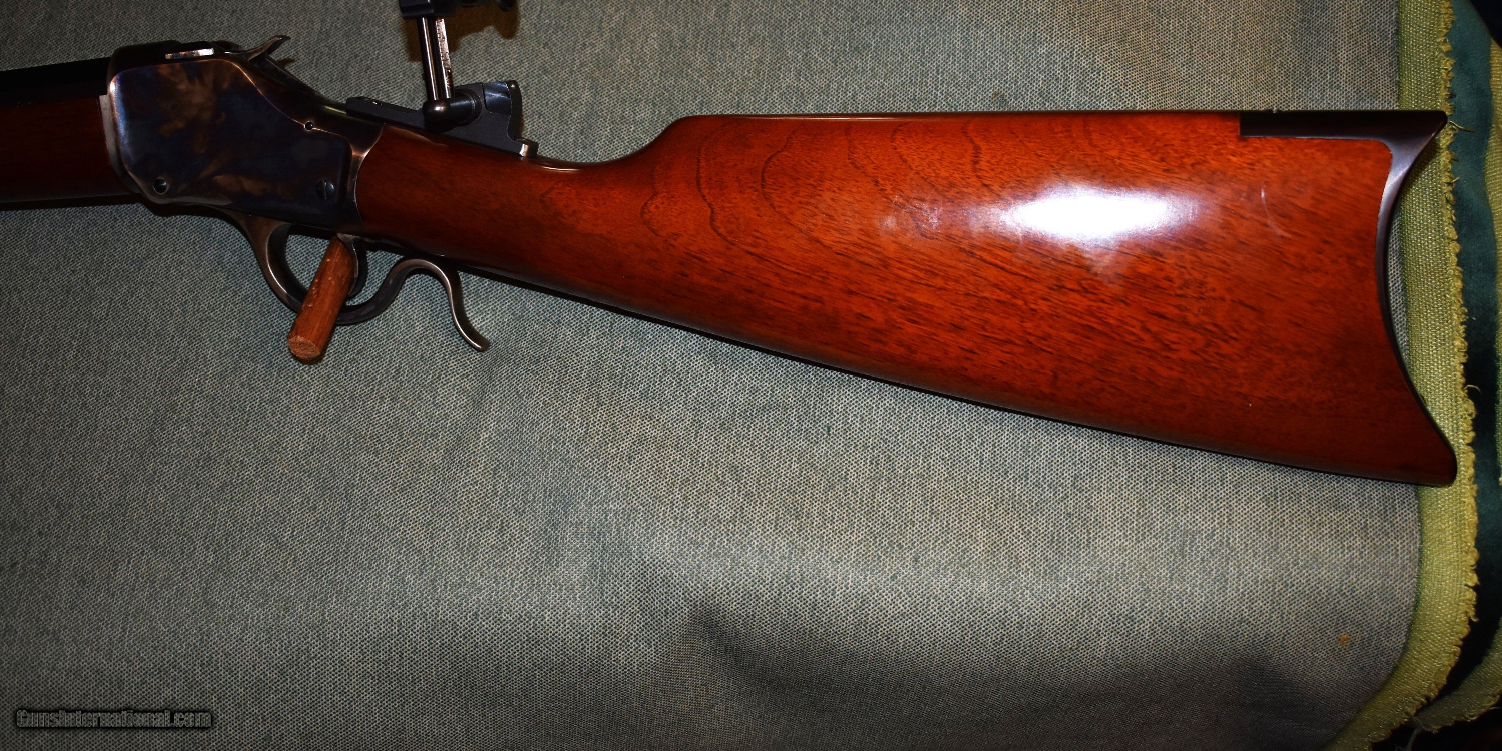 Description: Tayloer and Co. model 1885 highwall single shot rifle. This is a high quality replica of the Winchester 1885 highwall. Thig rifle has a 30" octagon barrel chambered for 38-55. The rifle is in like new condiiton retaining 100% of the original case colors, barrel blue,and wood finish. It has a Creedmore adjustable tang sight installed. Set up for target shooting but it would make a fine deer rifle in states that allow this cartridge. Prices at half of the cost for a new rifle of the same type. Price includes shipping to your FFL. SOLD Rifle Caliber: .38-55 Winchester Manufacturer: Taylor and Co. Model: 1885 Highwall Serial Number: S07198 Barrel Length: 30 Condition: mint Metal Condition: mint Wood Condition: mint Bore Condition: m Barrel Type: octagon Action: Single Shot Extras: Tang Sight |
