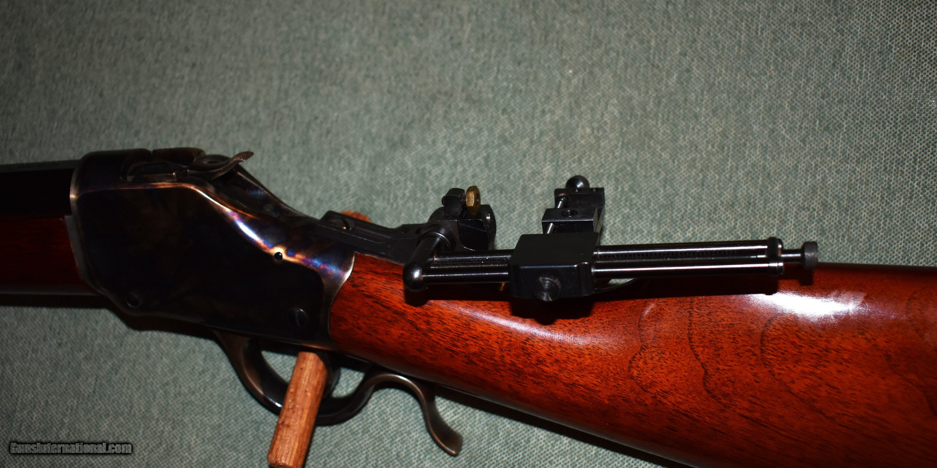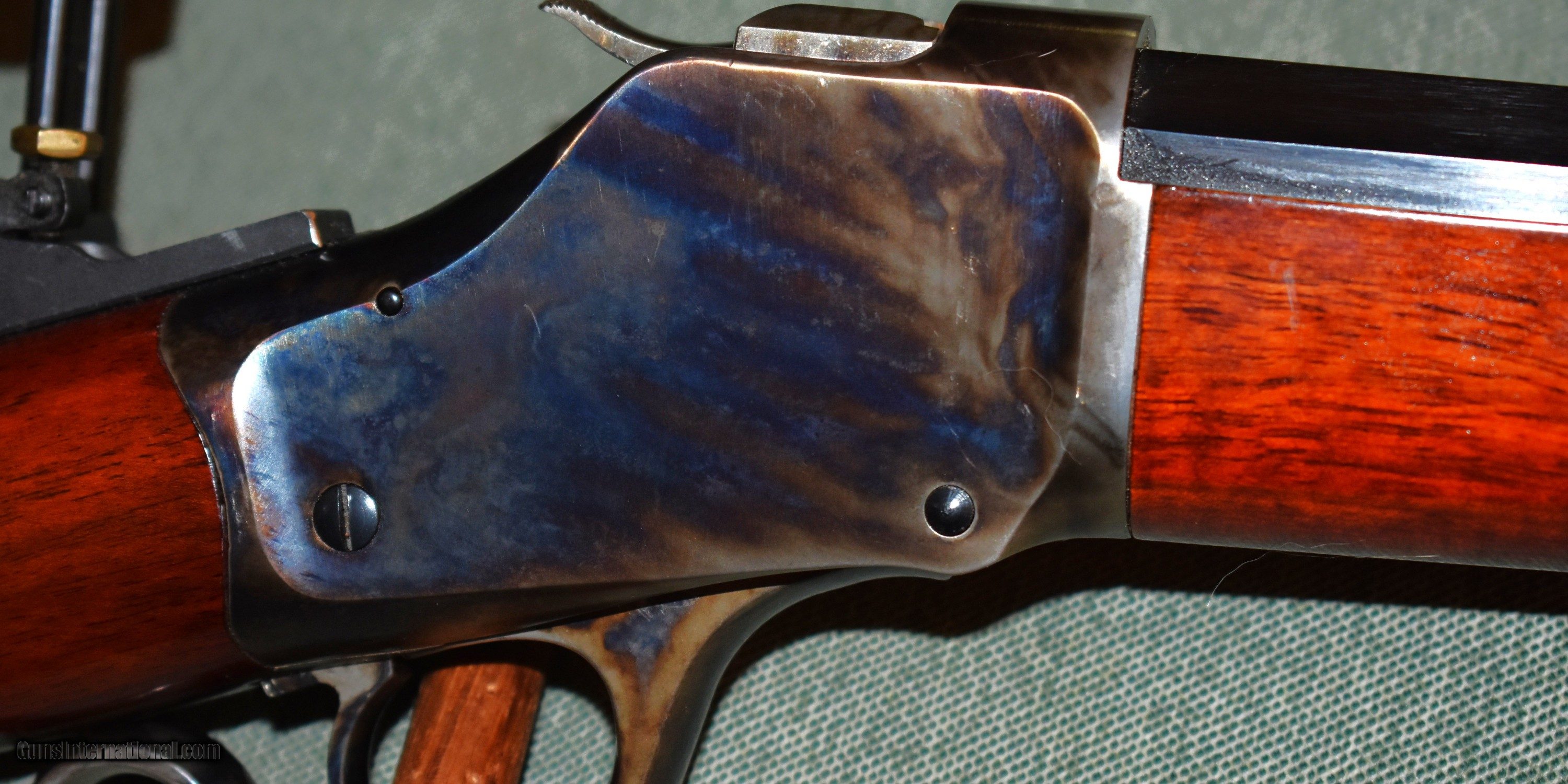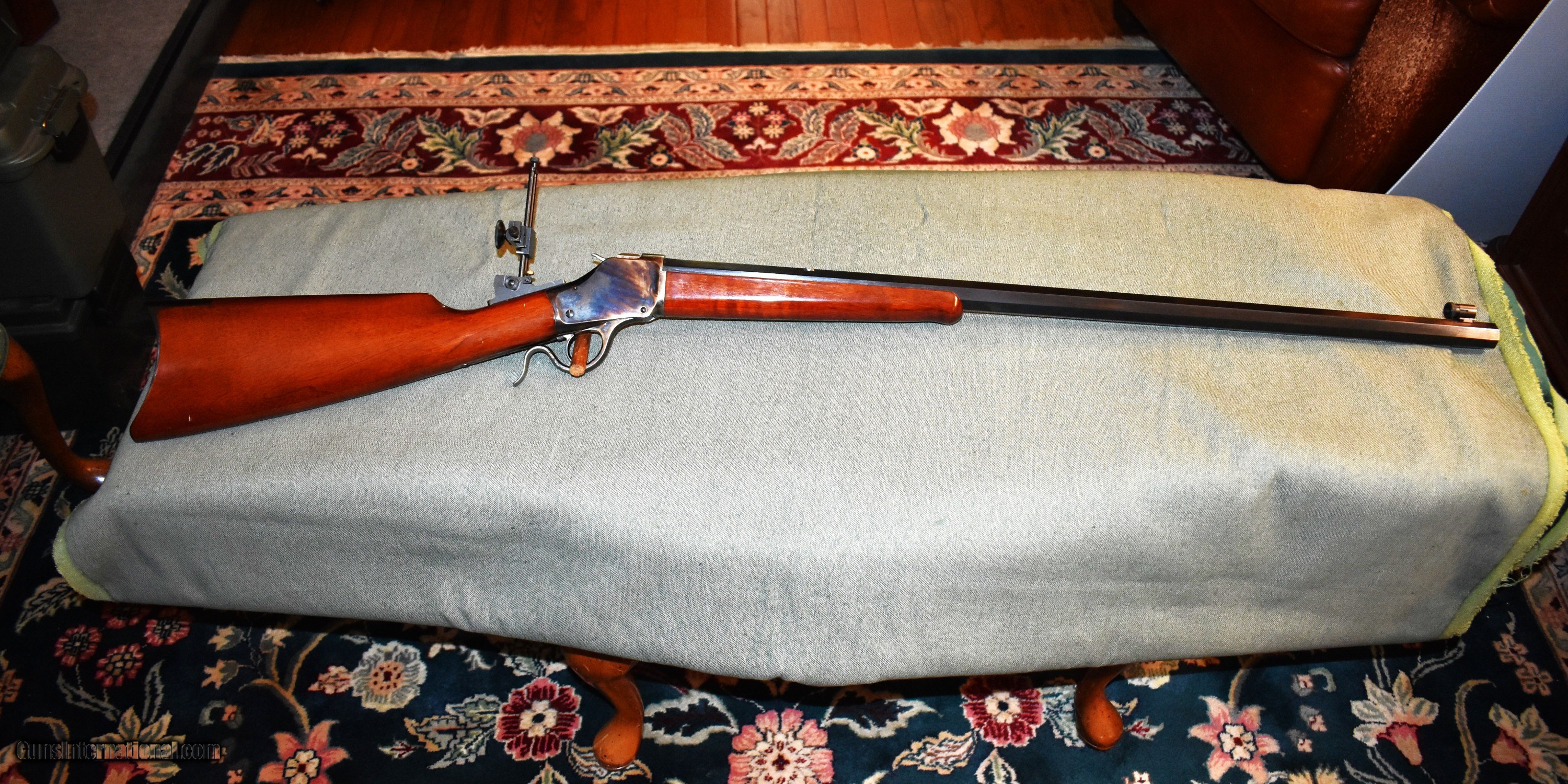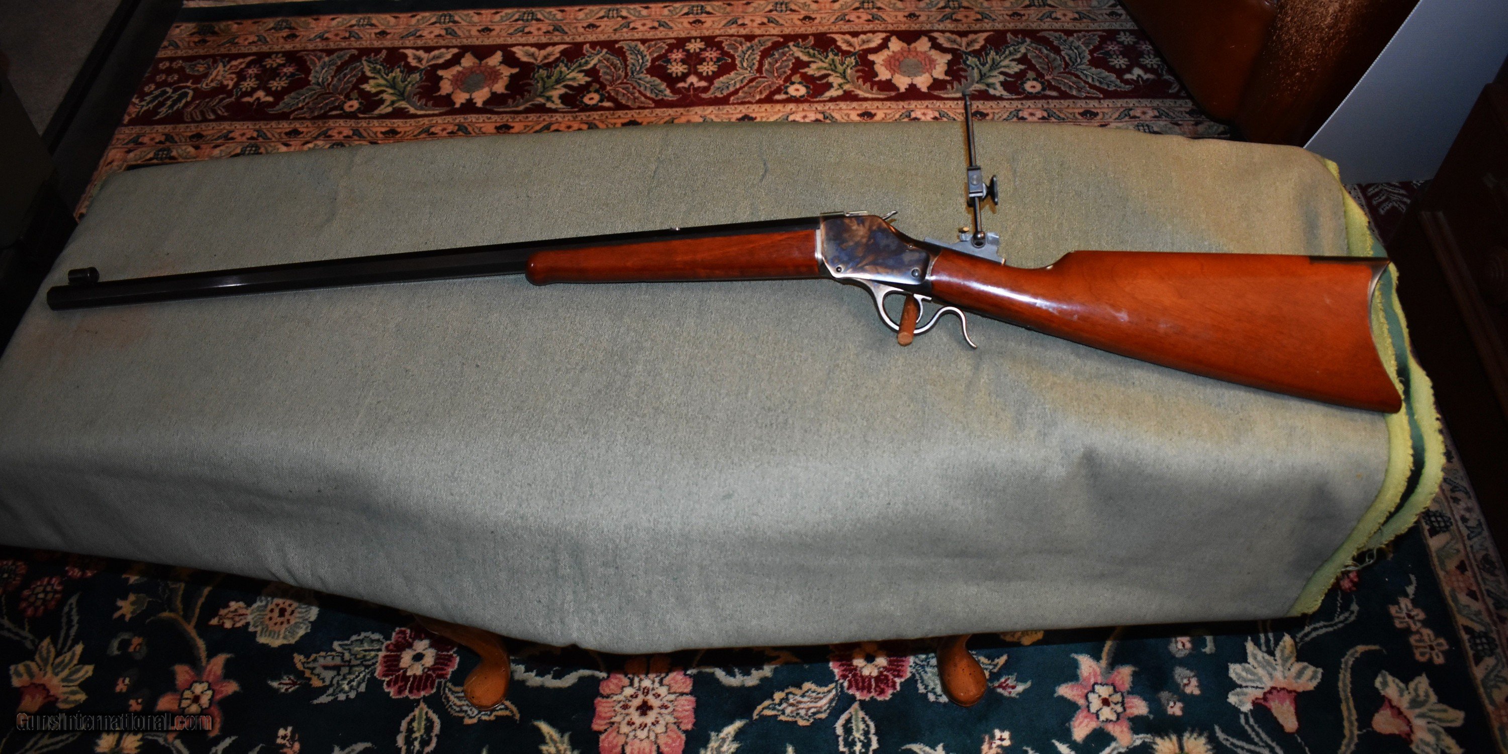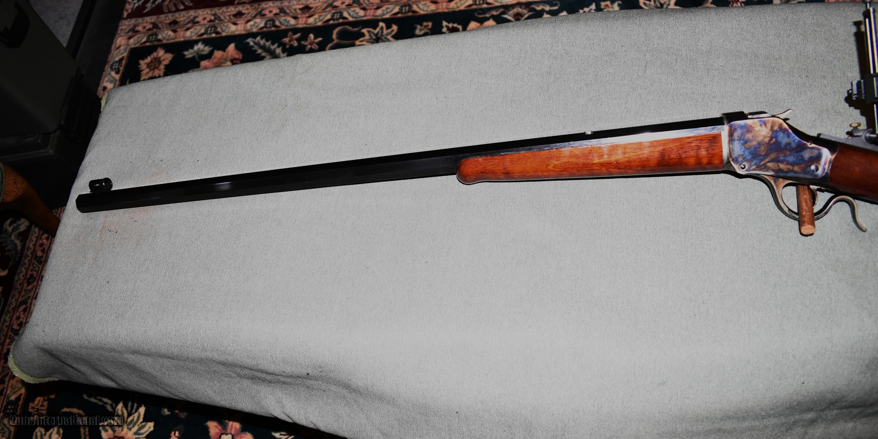 Description: Tayloer and Co. model 1885 highwall single shot rifle. This is a high quality replica of the Winchester 1885 highwall. Thig rifle has a 30" octagon barrel chambered for 38-55. The rifle is in like new condiiton retaining 100% of the original case colors, barrel blue,and wood finish. It has a Creedmore adjustable tang sight installed. Set up for target shooting but it would make a fine deer rifle in states that allow this cartridge. Prices at half of the cost for a new rifle of the same type. Price includes shipping to your FFL. SOLD Rifle Caliber: .38-55 Winchester Manufacturer: Taylor and Co. Model: 1885 Highwall Serial Number: S07198 Barrel Length: 30 Condition: mint Metal Condition: mint Wood Condition: mint Bore Condition: m Barrel Type: octagon Action: Single Shot Extras: Tang Sight |