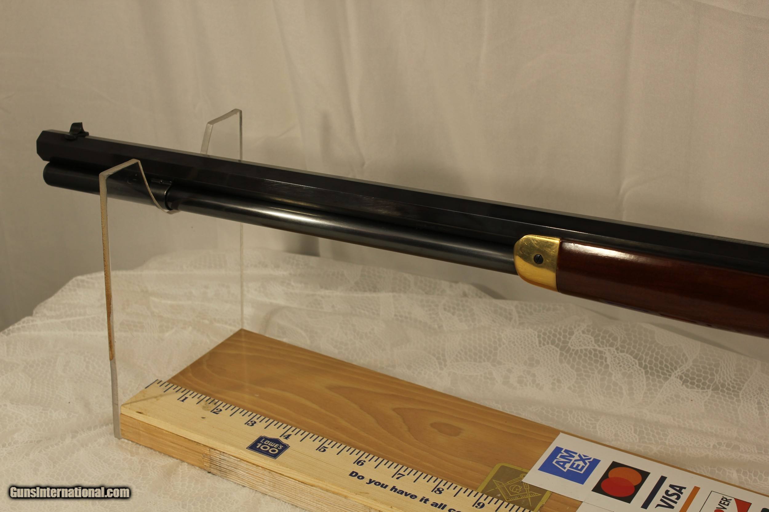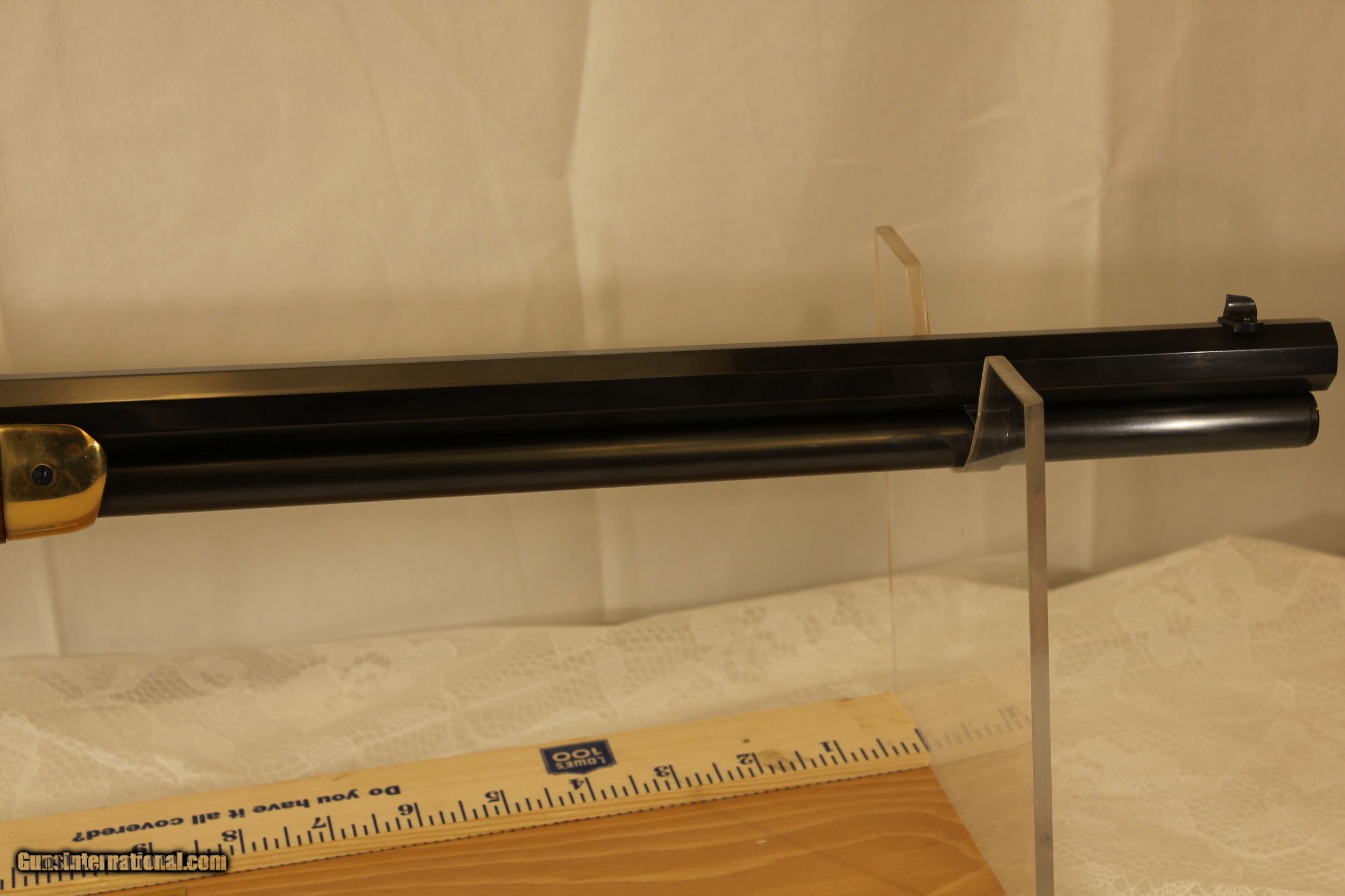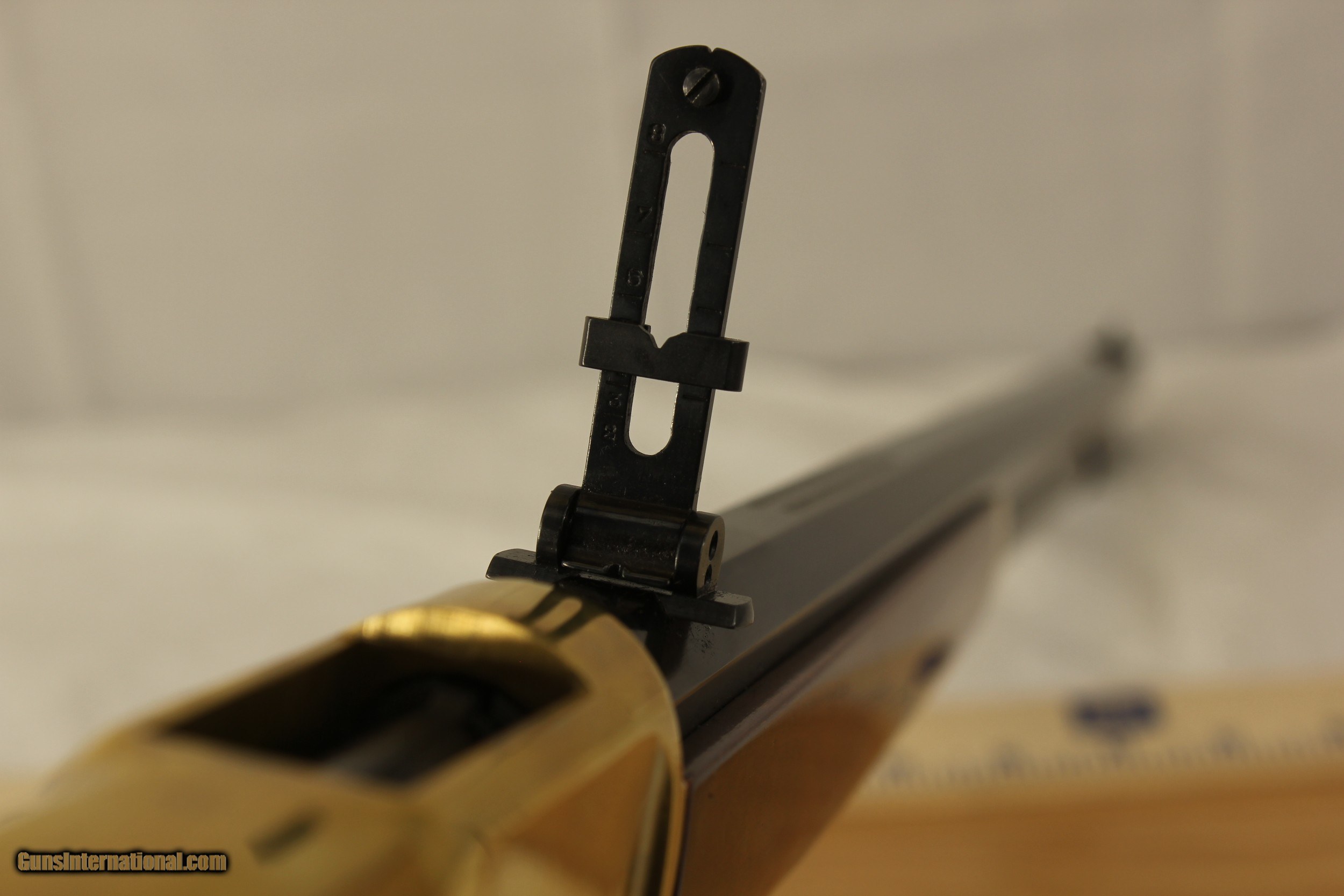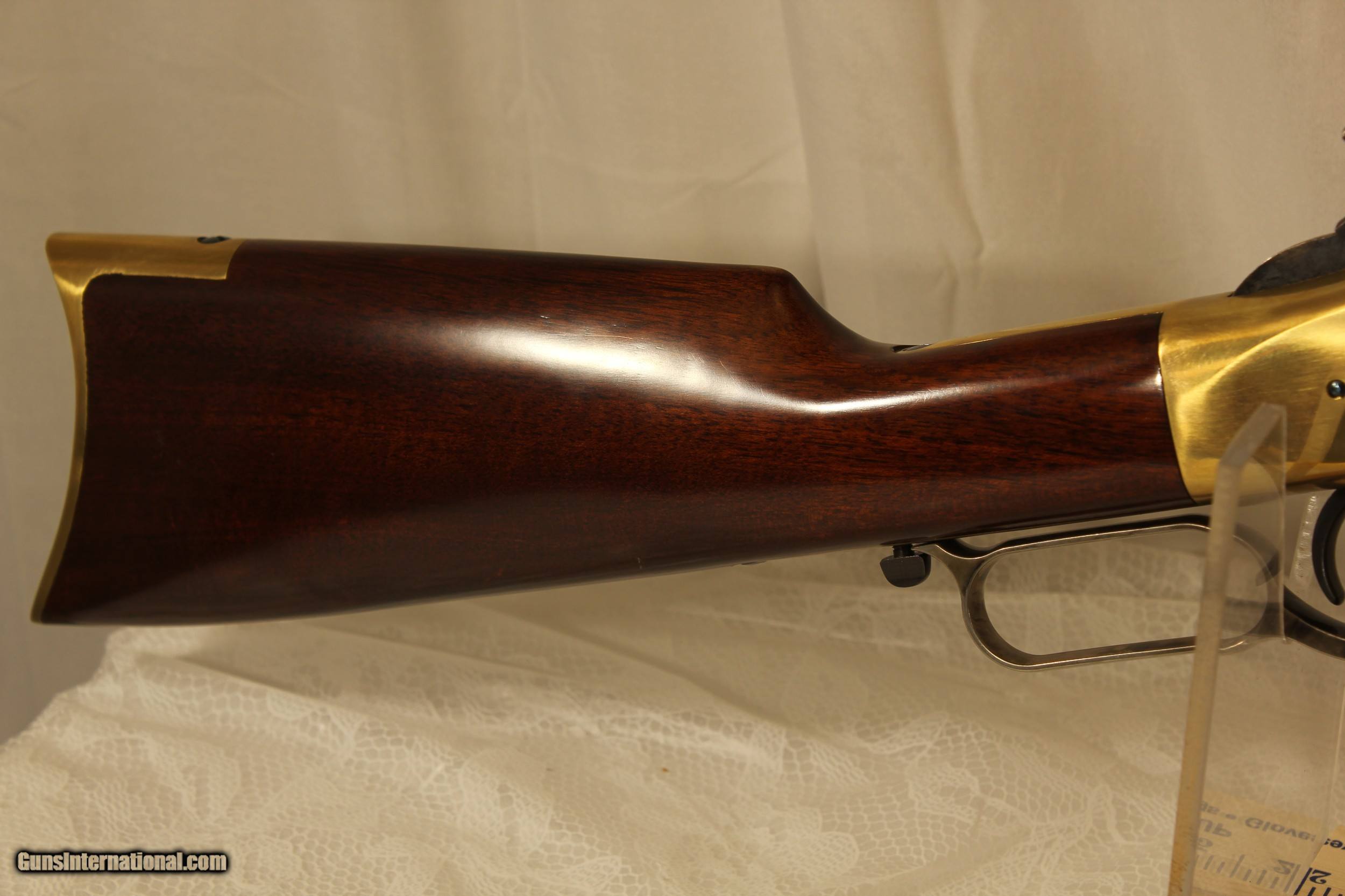 Description: SOLD SOLD SOLD This Yellow Boy replica model 1866 Winchester is an excellent copy of the Winchester 1866 rifle. It has an Octagon barrel and a ladder rear sight. It is 98% condition. Uberti is the foremost and quality replica maker. A real quality rifle. This gun has a 24 inch barrel. $60.00 shipping via Priority Mail. SOLD |