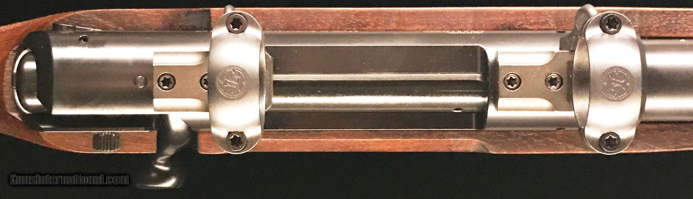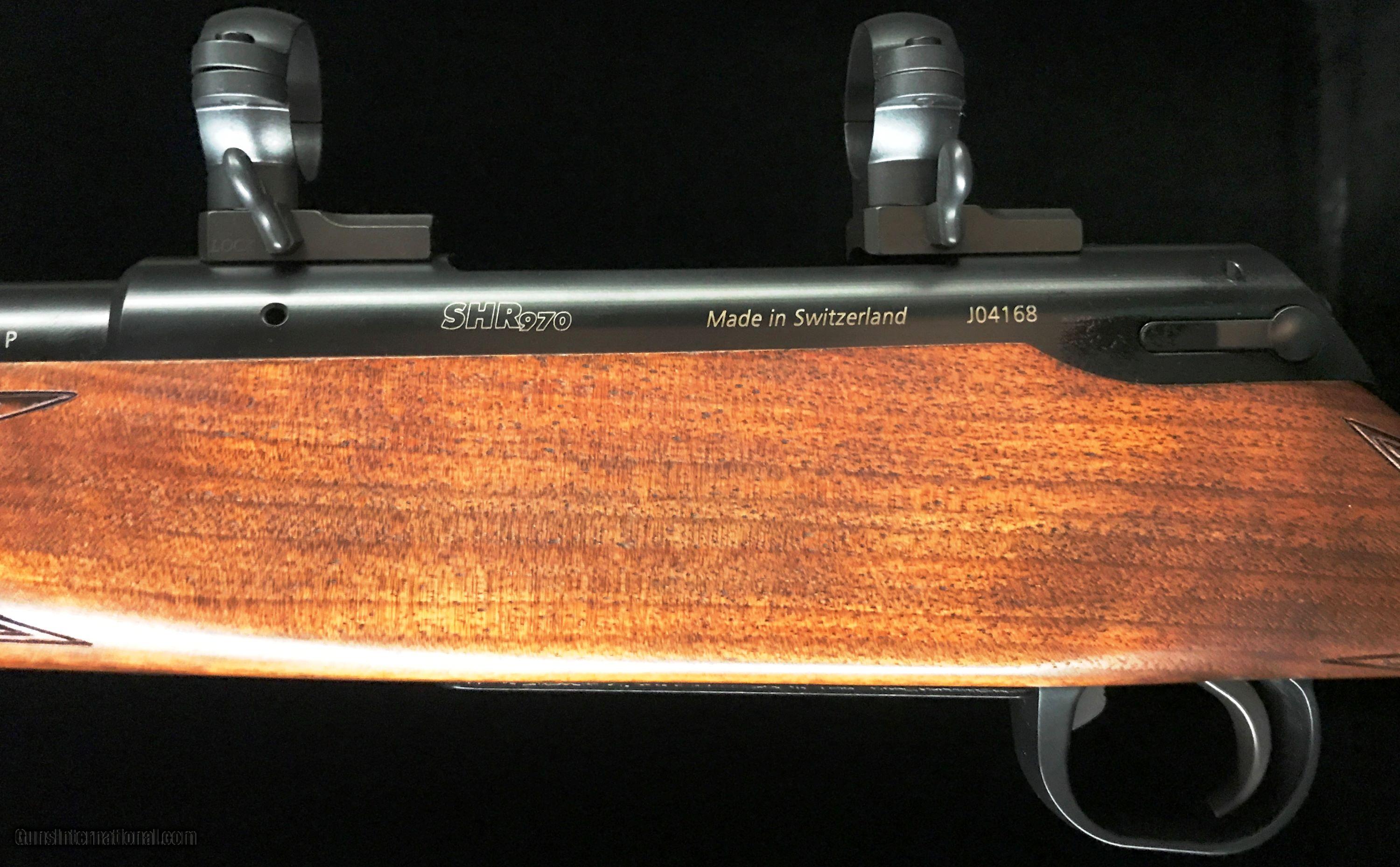 Description: Swiss Arms SHR 970 comes with Leupold base & rings. Smooth bolt action. Nice checkering on the pistol grip and forearm. Cheek piece and schnabel forearm with ebony tip make this a elegant looking rifle. SOLD Manufacturer: Swiss Arms Model: SHR 970 Serial Number: J04168 Caliber Info: .300 Win. Mag. Condition: Pre-Owned Metal Condition: 99% Wood Condition: 99% Bore Condition: Mirror Barrels: 28 Action: Bolt Triggers: Single Butt Pad: Factory LOP: 14 Finish: Satin Weight: 8lb 4oz Sights: None Extras: Leupold Base & Rings Case: Yes Item Location: Springfield, MO |