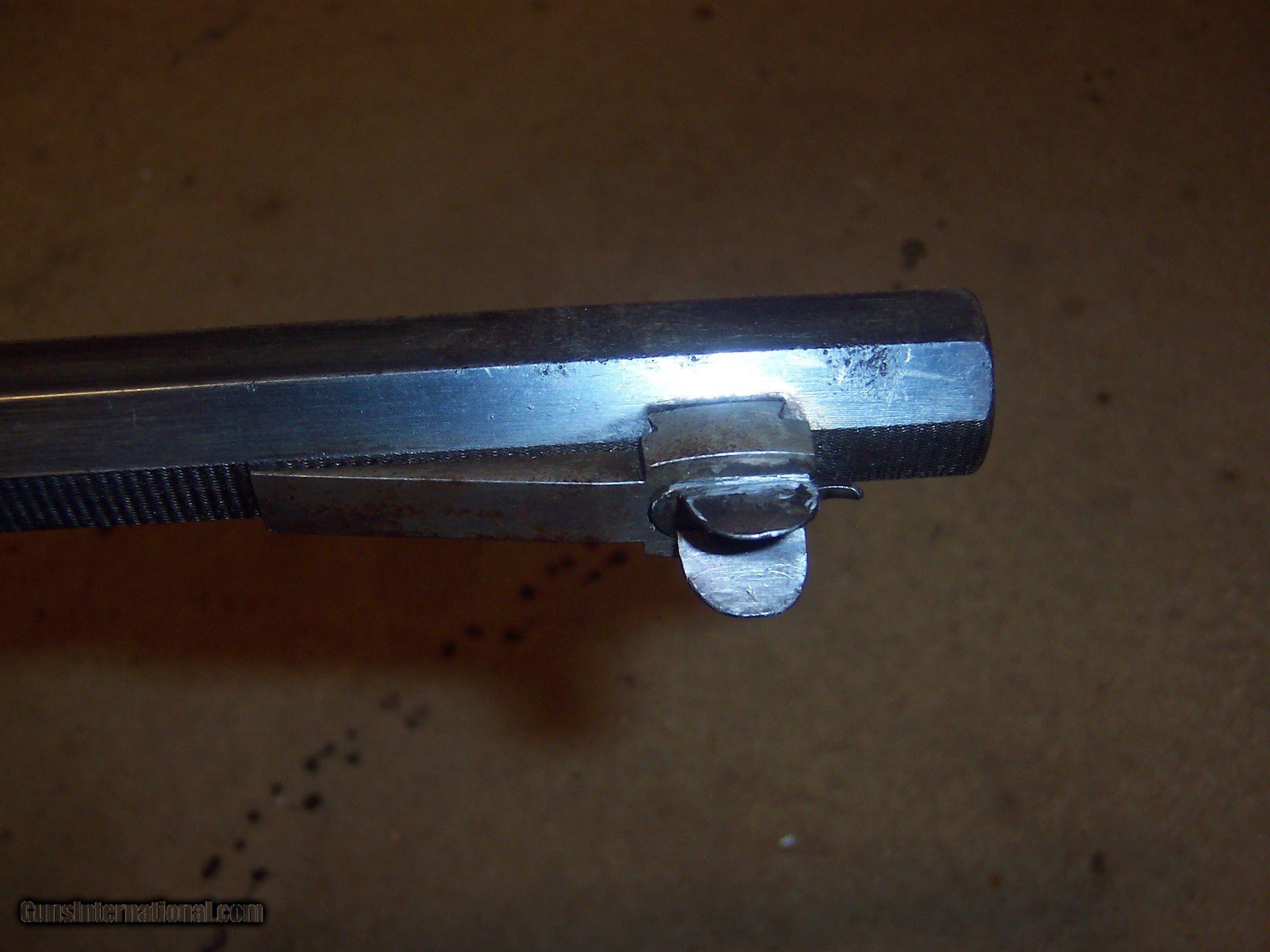 Description: VERY GOOD ORIGINAL CONDITION , UNKNOWN CALIBER , REMOVABLE ACTION , ONLY MARK IS AKAH ON BARREL , BORE DIAMETR .31 INCHES , VERY GOOD BORE, ALL SEEMS TO WORK IN DRY FIRE, GOOD CASE ON ACTION,. SMALL SIGHT ADJUST TOOL ON TIE STRAP, removable action , wood nice removable front sight small repair to front sight wing SOLD Curio/Relic: Yes Manufacturer: AKAH Model: SCHUTZEN Bore: .3 |