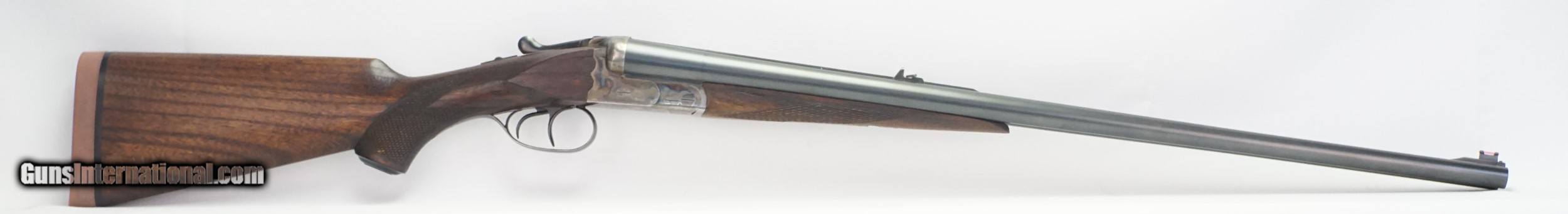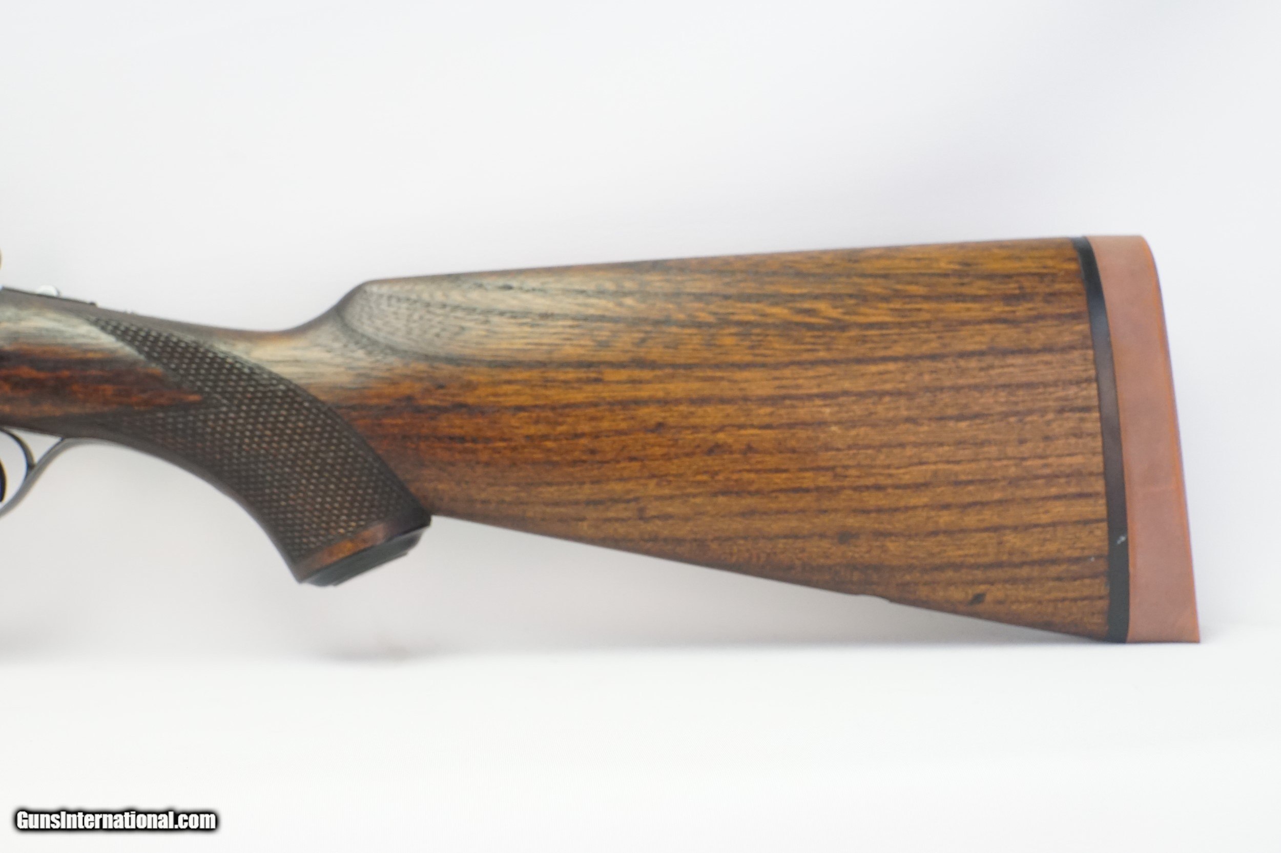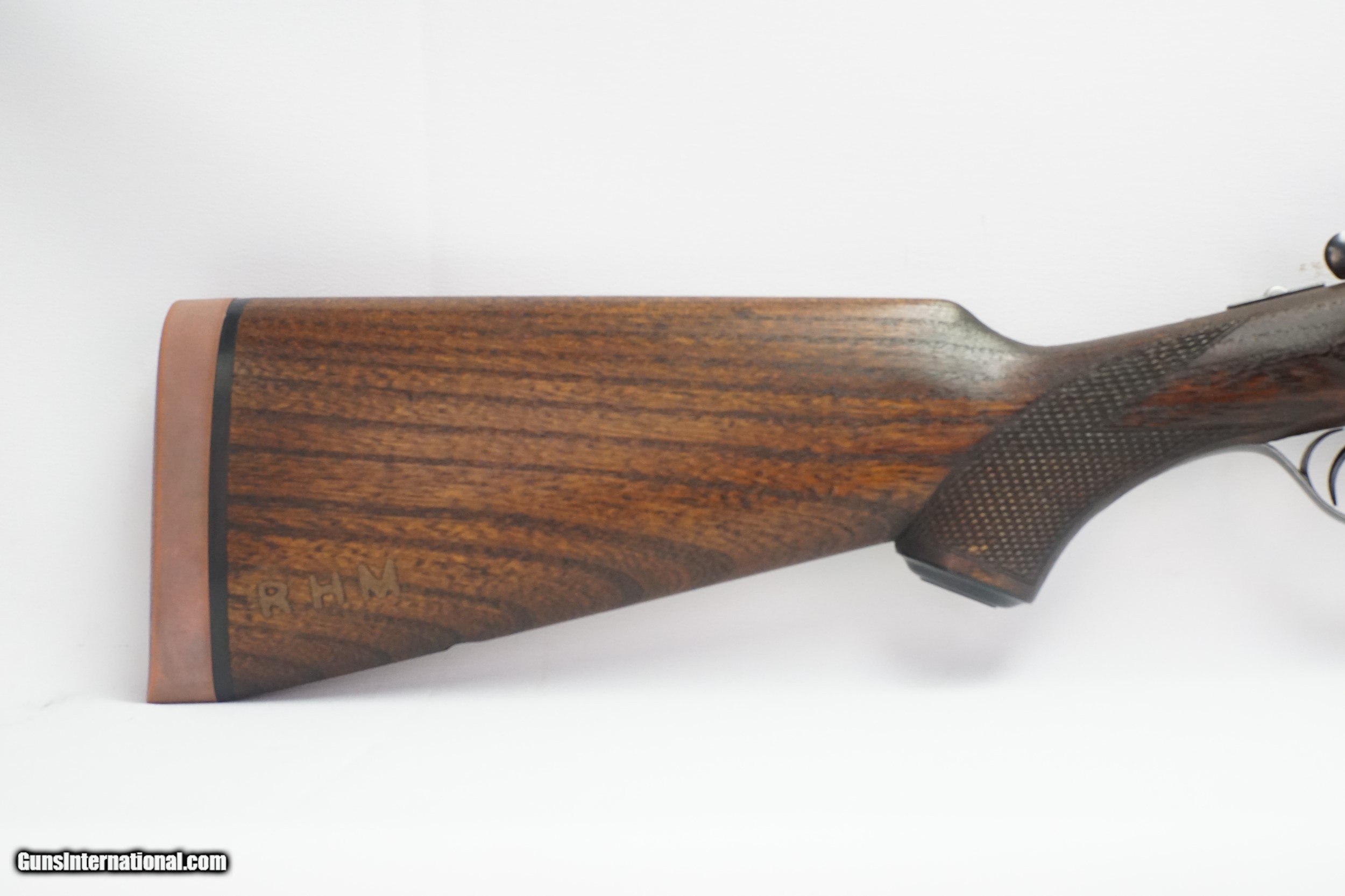 Description: 450 NE 3 1/4" Double Rifle Started life as a Simpson Shotgun and then was rebarreled by Aaron Little here in Tx. The wood on the rifle is the original Simpson wood that has been refinished not a mark on it 14.5" LOP Barrels are Pac Nor and regualted with Hornandy factory ammo 26". (Shoots about 1.5" at 50yds) The overall work is great on this rifle if the avaergae person picked it up they would have no clue it was built off a shotgun action. The overall feel and balance is great. Extractors Comes with 40 rounds once fired brass and a set of CH4D dies. $3500 shipped SOLD Manufacturer: Simpson Caliber Info: 450 NE |