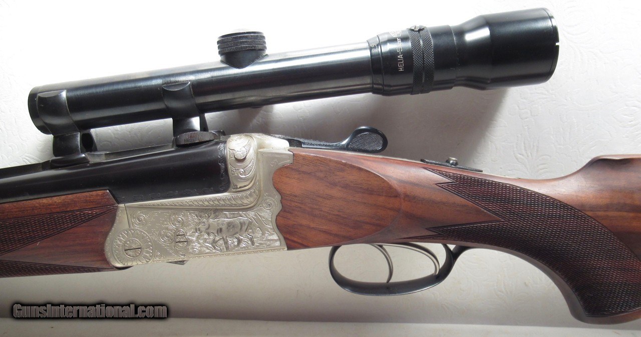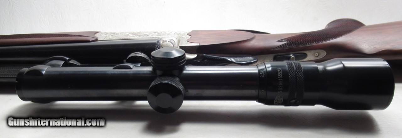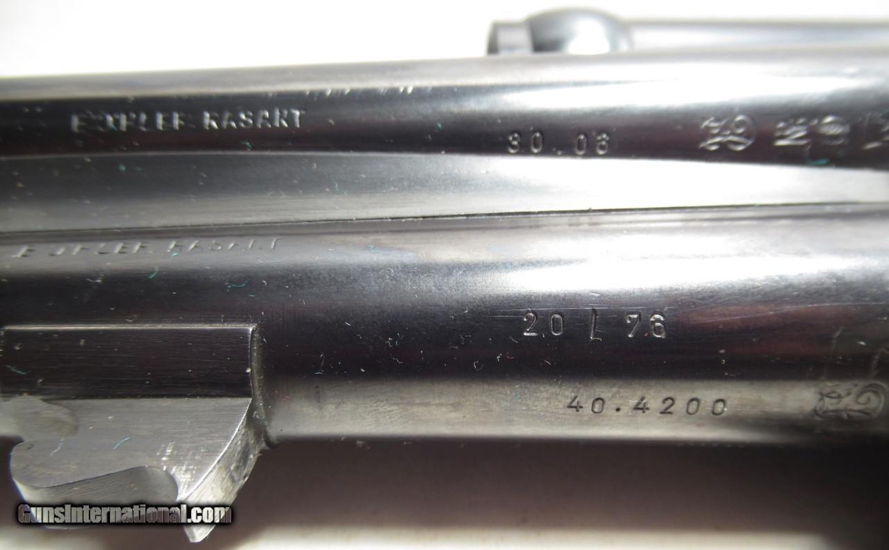 Description: Combo Rifle Made by Waffen Dschuinigg-Salzburg; Serial No. 404200; Double 30-06 Over 20 Gauge; 24” Barrels; Weighs 10 lbs. with Scope and 9 lbs. without Scope; 15" L.O.P. to Front Trigger; White Line Butt Pad; Comes with Kkahles Wien Made Kelia-Super Scope with Perfect Optics and Heavy German Plex-Crosshairs; Perfect Action and Excellent Bright Shiny Bores; Original Leather Case with Key also Included; This Rifle was Owned by Alaska Big Game Trophy Club Inc. Editor Norman B. Grant, Jr. – 1971 Edition “Records of Alaska Big Game” Book Included; Like New Condition; 99+% Metal and Wood Finish Present; See All Photos for Condition; No Texts; Call (254)541-5765 or Email Only; PERSONAL PROPERTY of Harold Wieser; NOTICE: We Do Not Do Any Consignments - All Items Listed are Owned by Us - NO SALES to New Jersey or New York City - Antiques Only to Massachusetts and California; Price: $7,975 + $75 S&H Via USPS PRIORITY MAIL; Payment Address: Harold Wieser - 1466 U.S. Hwy 77 - Rosebud, TX 76570; SEND PAYMENTS VIA USPS PRIORITY MAIL; BEWARE of SCAMS!!! – DO NOT SEND MONEY or CORRESPONDENTS ELECTRONICALLY UNLESS YOU HAVE SPOKEN to HAROLD WIESER FIRST! 254-541-5765 SOLD Manufacturer: Waffen Dschuinigg Model: Combo Serial Number: 404200 |