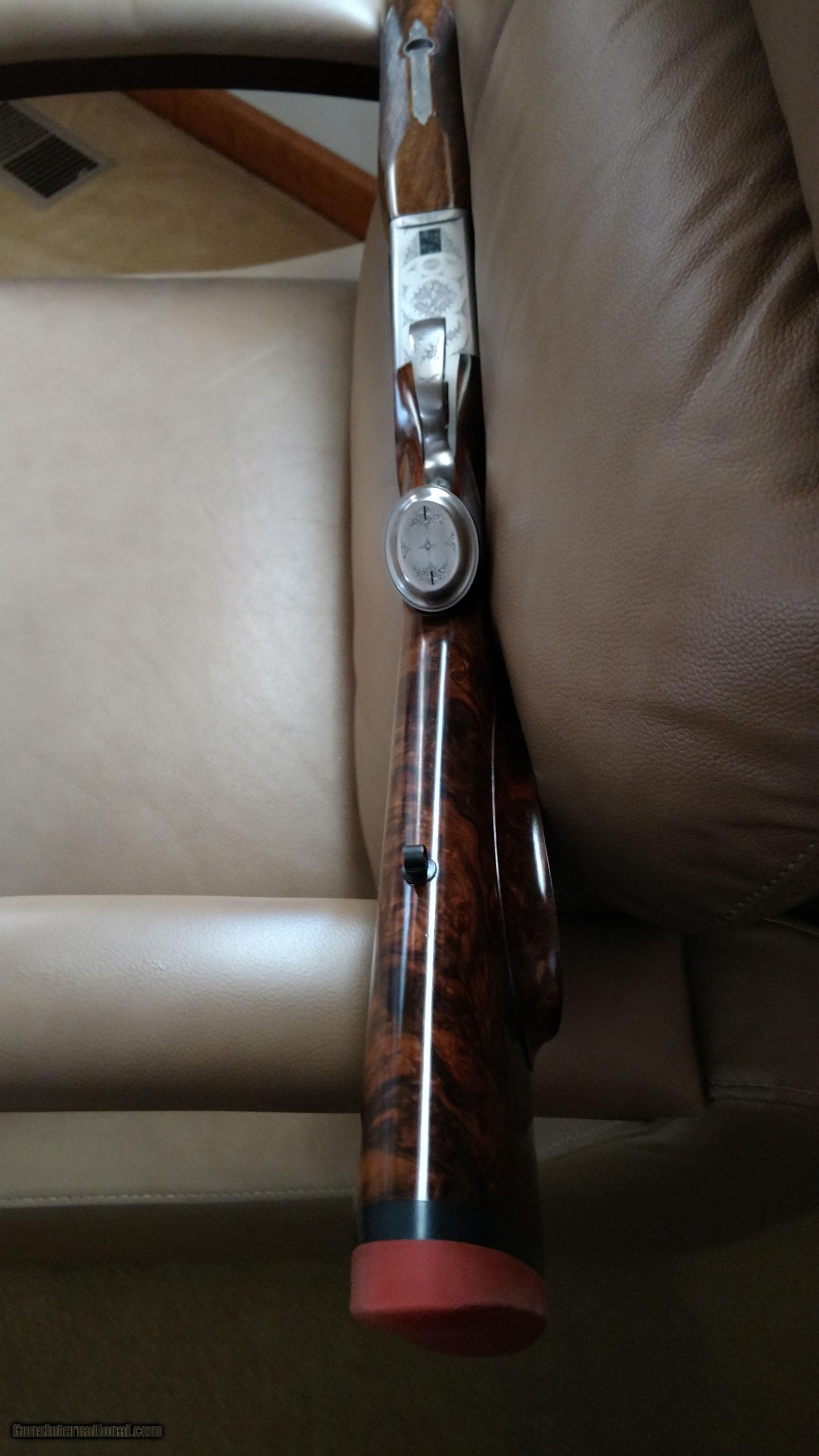 Description: Heym Safari 470 Nitro Express, ejectors, highly upgraded engraving and exhibition wood, 10lbs 6 oz, 14 11/16" from front articulated trigger, slim beavertail forend, long tang engraved pistol grip area, regulated with Hornady 500gr DGX bullets new, unfired since left factory. German engineering at its finest.....includes new high quality leather case. This is a magnificient, well crafted piece, highly prized by professional hunters....including both Ivan Carter and Mark Sullivan....seldom available outside special order. From my personal collection. Pictures simply do not do it justice...$125 shipping to FFL dealer..No sales to New York or other locations prohibited by law. A&D Boxlock with Triple Lockup (Purdey Double Underbite with Greener Crossbolt) Barrels | Krupp Steel | Hammer-Forged, In-House at HEYM Non-automatic safety SOLD Manufacturer: Heym Model: Safari Caliber Info: 470 NE Condition: New LOP: 14 11/16 Weight: 10lb 6oz Extras: Wood upgrade $2000 |
