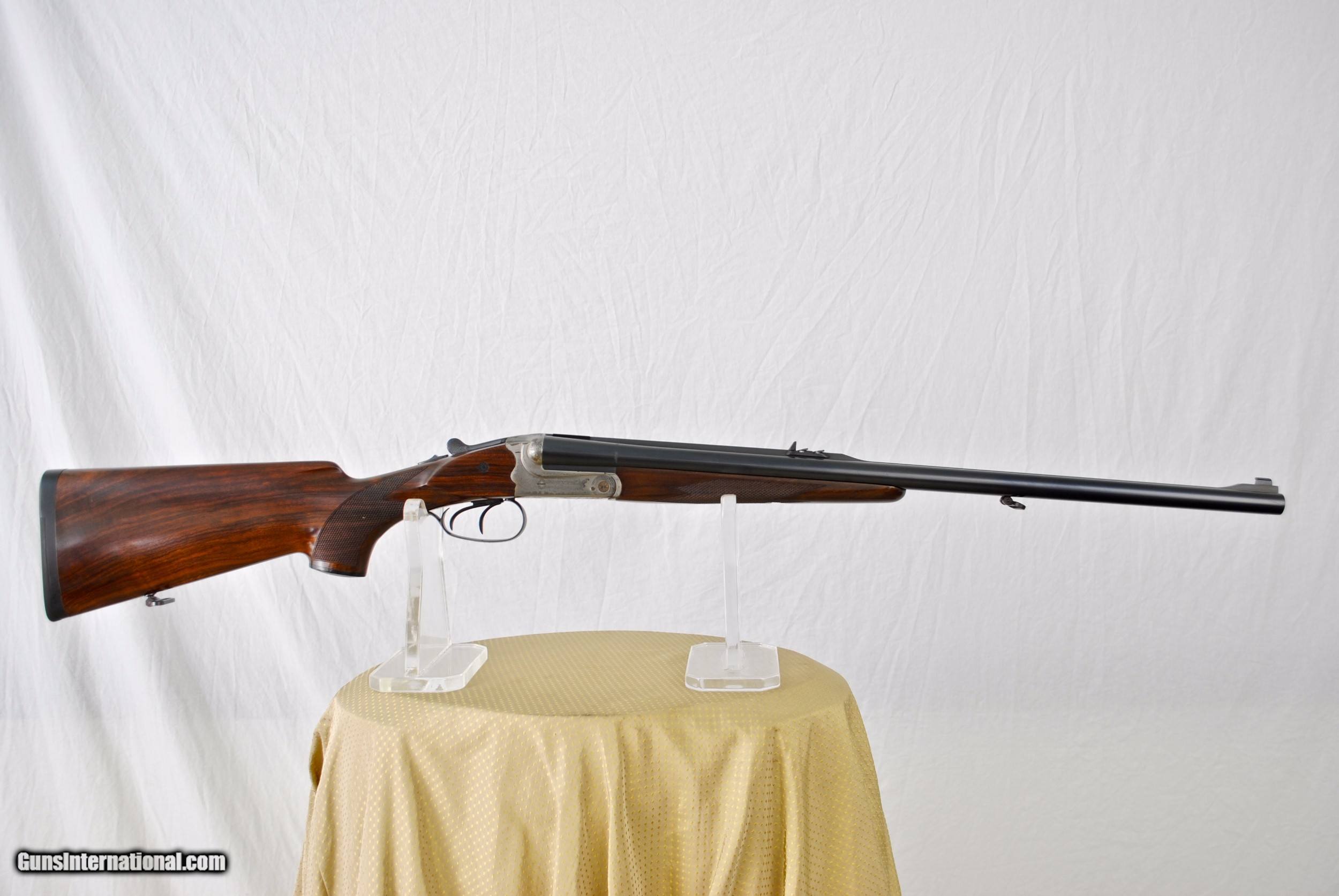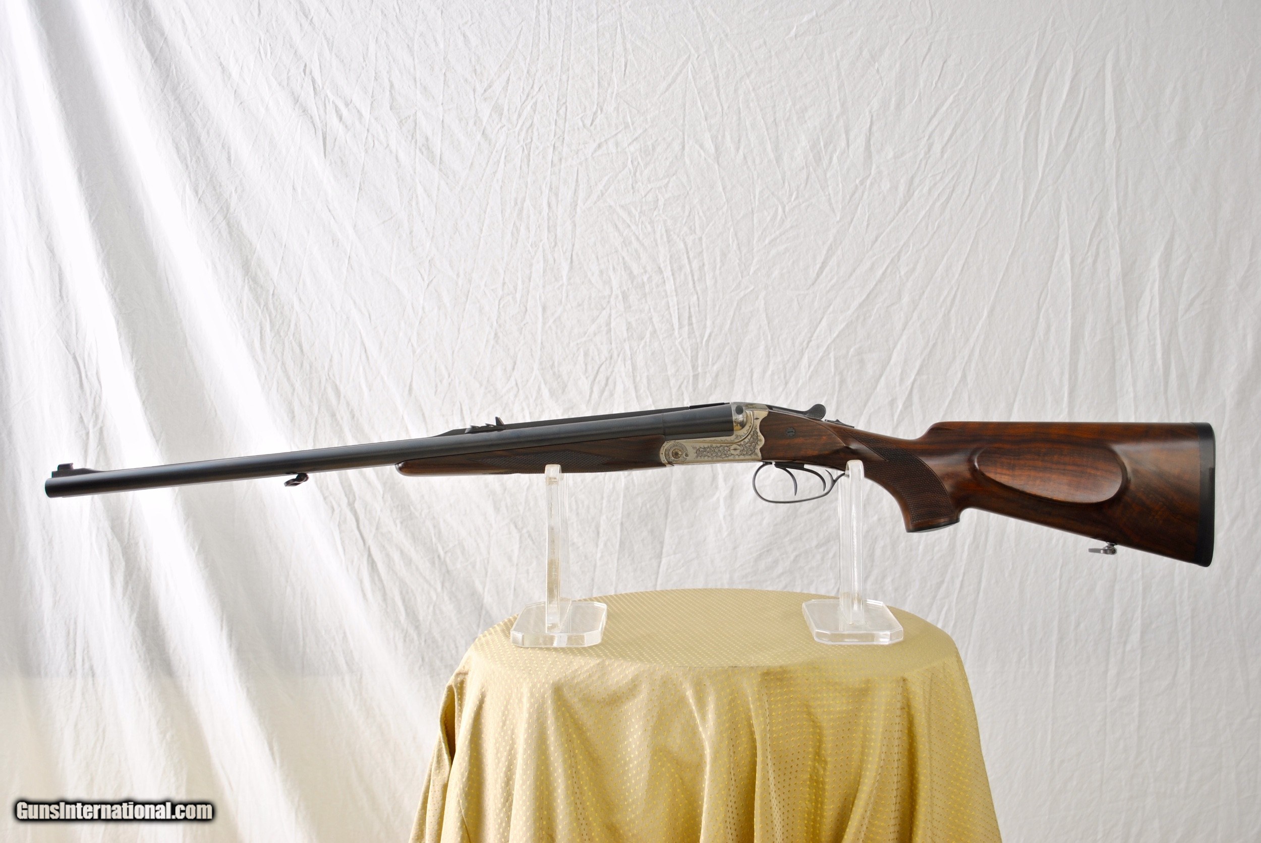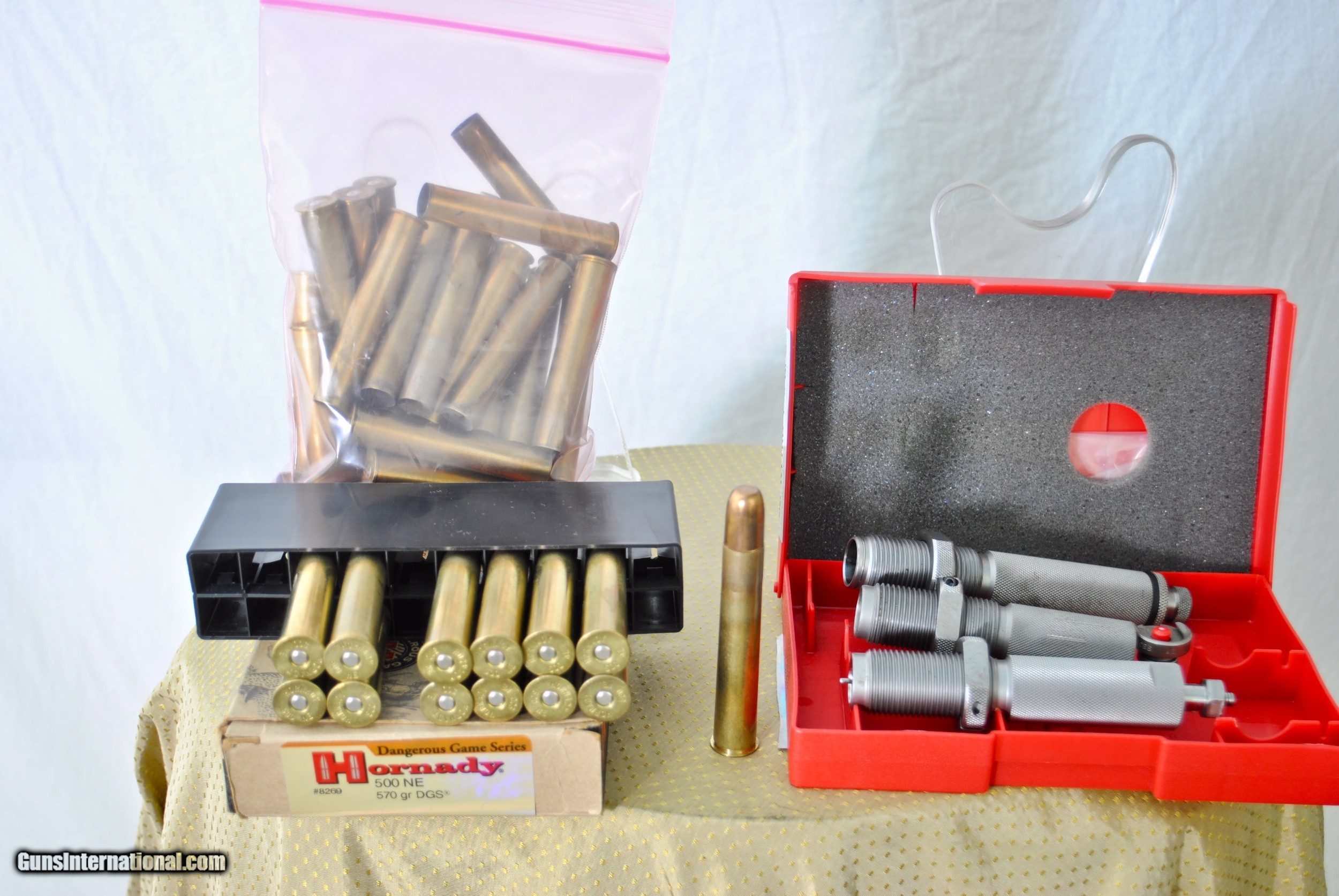 Description: Here is a Merkel 140 AE Safari in 500 Nitro Express ready for the dangerous game. This gun has all the features of a high quality European gun with ejectors, scroll engraving, disk set strikers and factory trunk case. Dies and cartridges are also included as shown. Barrels are 23 1/2". Sights are fixed front blade with two rear flip ups marked 50 and 75. Weight of the gun is 10 LBS 10 OZ. Shipping is $75. Credit cards OK with no additional fee. LOP is 14 1/2". For inquiries please call Guy - 407-721-3748 SOLD Rifle Caliber: .500 Nitro Express |