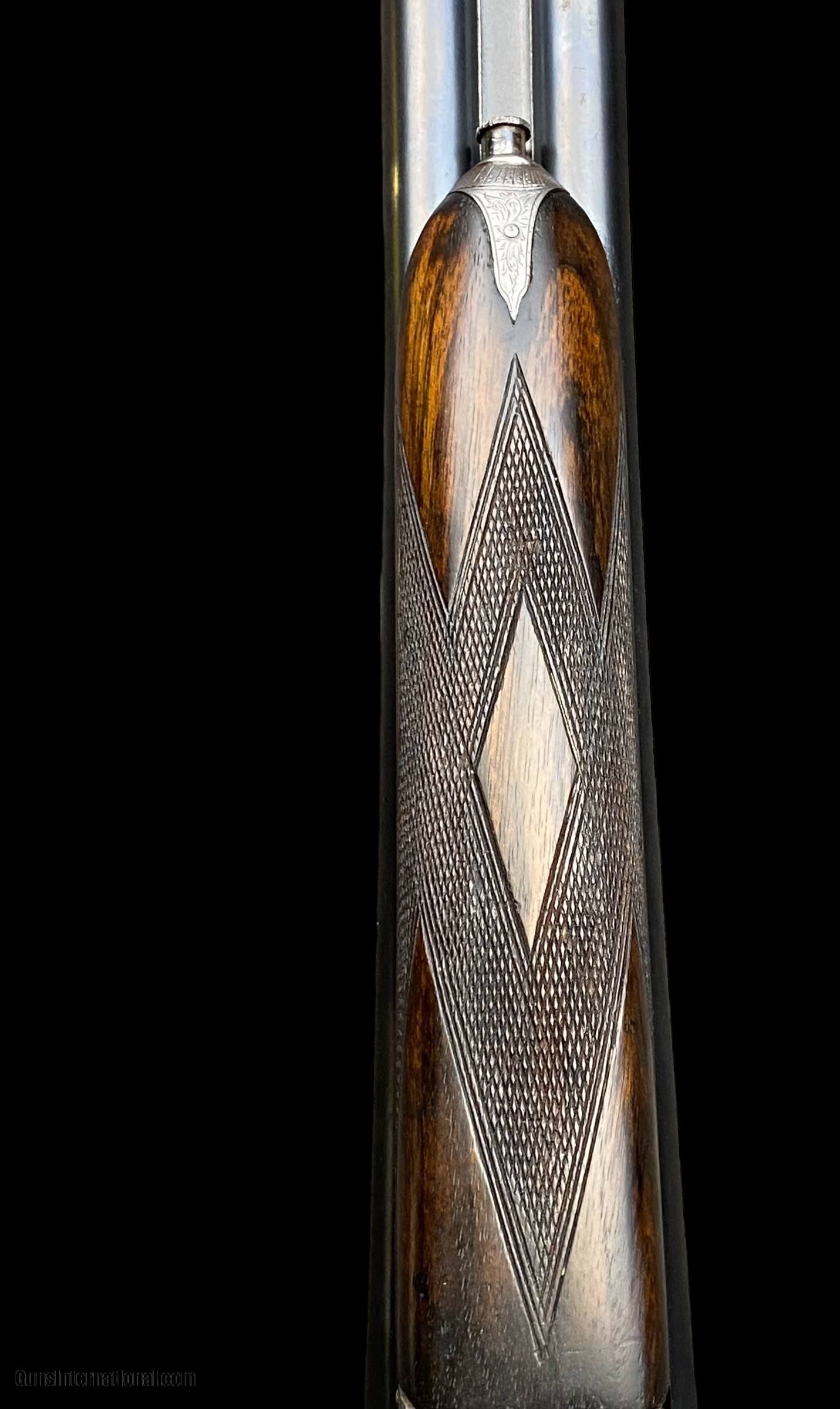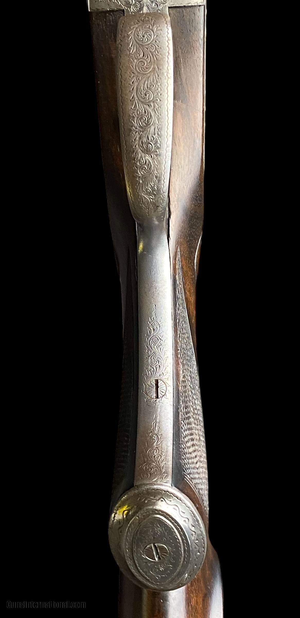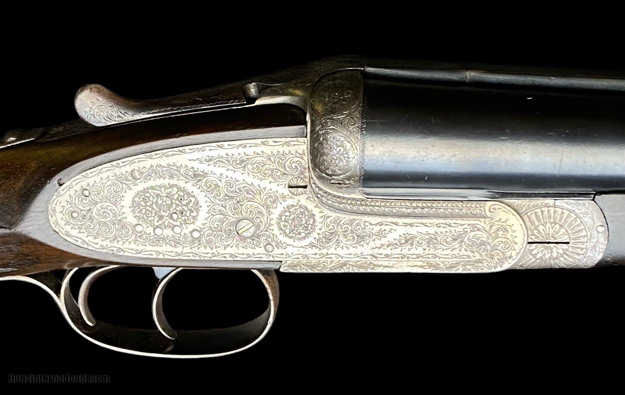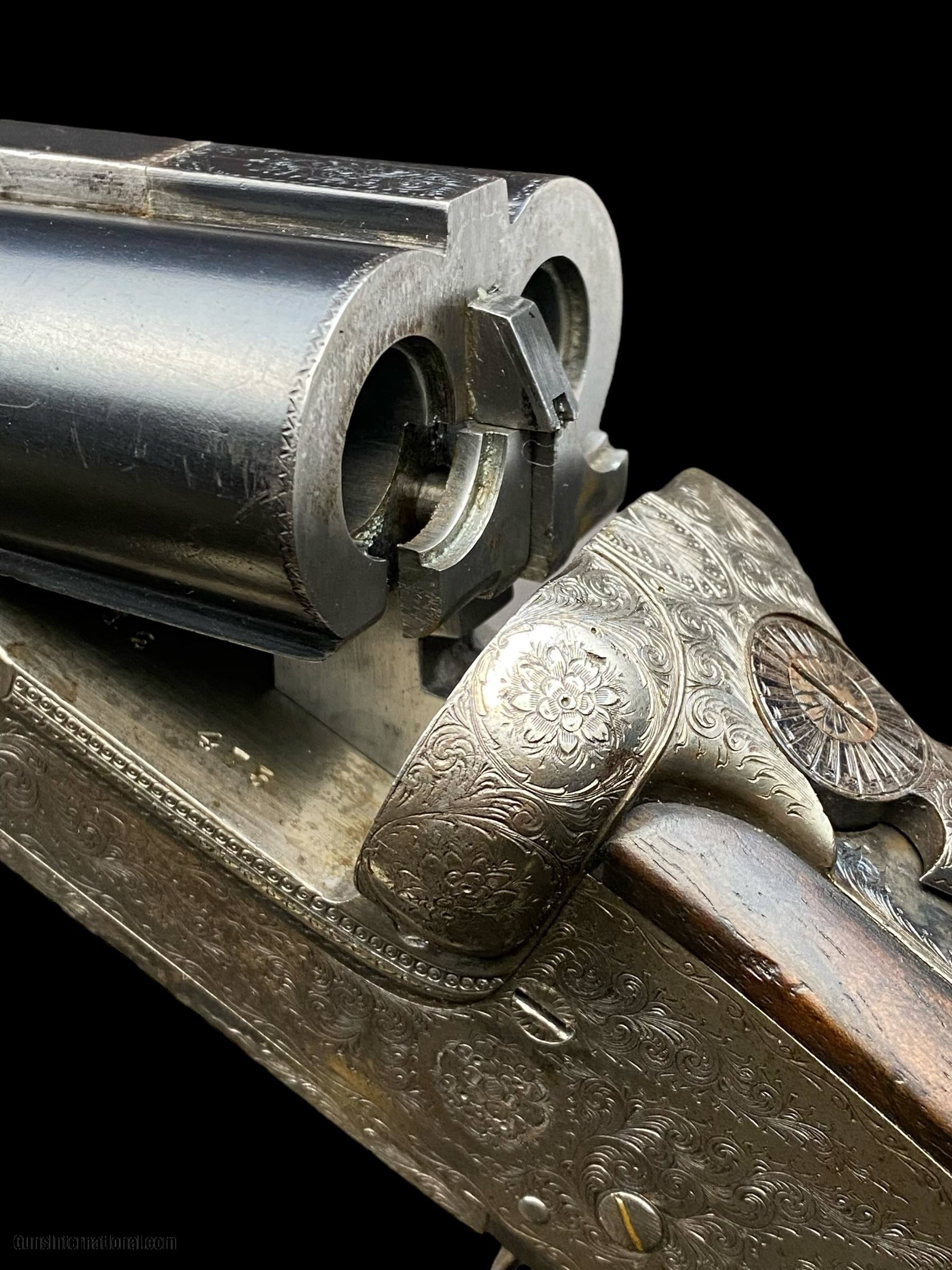 Description: VICTOR SARASQUETA - EIBAR, SPAIN SAFARI SIDELOCK EJECTOR DOUBLE RIFLE ROSE AND SCROLL COIN FINISHED RECEIVER SUPER STRONG DOUBLE UNDERLUG AND HIDDEN THIRD FASTENER CAL: 475 NO 2 - JEFFREY NITRO EXPRESS BBL: W/ ONE STANDING REAR SIGHT. - MARKED "VICTOR SARASQUETA - EIBAR ESPANA" EJECTORS DOUBLE TRIGGERS W/ HINGED FRONT TRIGGER EXTENDED BOTTOM TANG. ENGRAVED STEEL PISTOL GRIP CAP AUTO SAFETY WITH "S" IN GOLD NICELY FIGURED EUROPEAN WALNUT STOCK WITH CHEEKPIECE AND SILVERS STYLE SOLID RED PAD DIM:14.75" LOP WEIGHT: 9LBS 9OZ CONDITION: GUN IS IN VERY GOOD OVERALL CONDITION WITH LONDON QUALITY REBLACK.. BARRELS TIGHT ON FACE. BORES CLEAR WITH STRONG RIFLING. EJECTORS STRONG AND IN-TIME. STOCK RETAINS WHAT APPEARS TO BE ALL ORIGINAL OIL FINISH WITH SCANT LIGHT SURFACE MARKS FROM USE. CHECKERING ONLY SLIGHTLY SOFTENED. NICE GUN READY FOR YOUR NEXT SAFARI. GENTLEMEN, THIS IS A FANTASTIC SAFRI-READY DOUBLE RIFLE IN THE POWERFUL 475 #2 JEFFREY NITRO EXPRESS CARTRIDGE. WITH A 500 gr (32 g) BULLET, THIS CARTRIDGE RUNS 2,120 ft/s (650 m/s) AND DELIVERS A WHOPPING 5,000 ft⋅lbf (6,800 J) OF STOPPING POWER. NICE QUALITY GUN AND A VERY GOOD PRICE WHEN COMPARED TO OTHER DOUBLE RIFLES LIKE HOLLAND & HOLLAND, RIGBY, WESTLEY RICHARDS, ETC. PLEASE CALL NOW! FFL REQUIRED (C&R OKAY) FLAT $50 S/H/I CARD FEE APPLIES SOLD Curio/Relic: Yes Rifle Caliber: .475 No 2 Nitro Express Manufacturer: SARASQUETA Model: SLE DOUBLE RIFLE Serial Number: 97122 Ejectors: YES Action: SIDELOCK Triggers: DOUBLE |