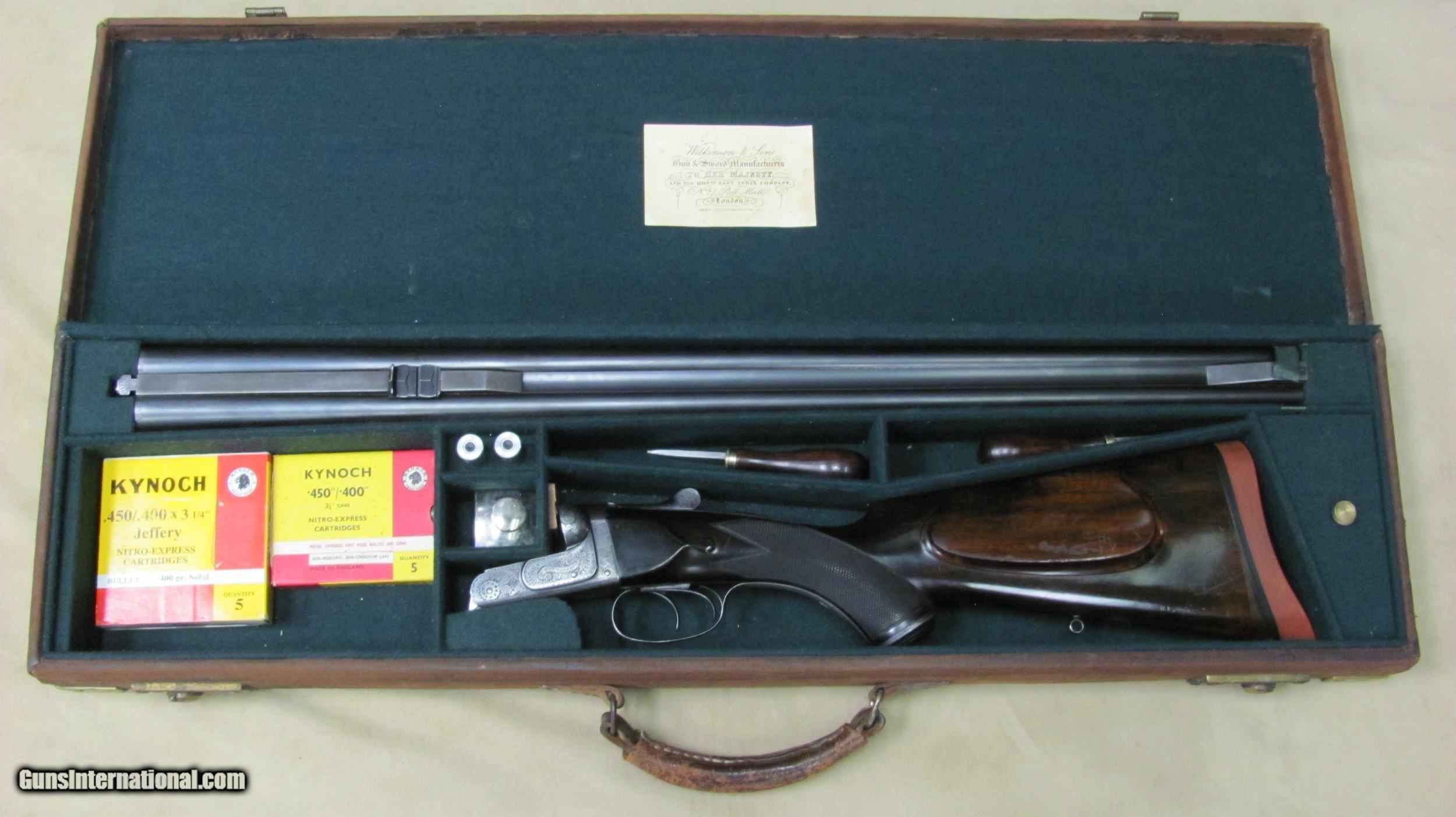 Description: Wilkinson Double Rifle in .450/400 caliber with 3 1/4" chambers. Rifle has none automatic safety and extractors. Barrel bores are in perfect condition. A beautiful English double rifle in original condition. SOLD Curio/Relic: Yes Rifle Caliber: .450/400 Nitro Express Manufacturer: Wilkinson Model: Double Rifle Serial Number: 51207 Barrel Length: 28 Chambers: 3 1/4' Ejectors: No Condition: Very good Metal Condition: Very Good Wood Condition: Very Good Bore Condition: Excellent Action: Box Lock Triggers: Double Triggers LOP: 14 1/4 Inches Weight: 10lbs. 10oz. Engraving: Heavily Engraved Proof:Nitro: Nitro |