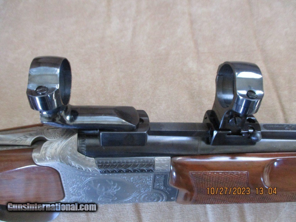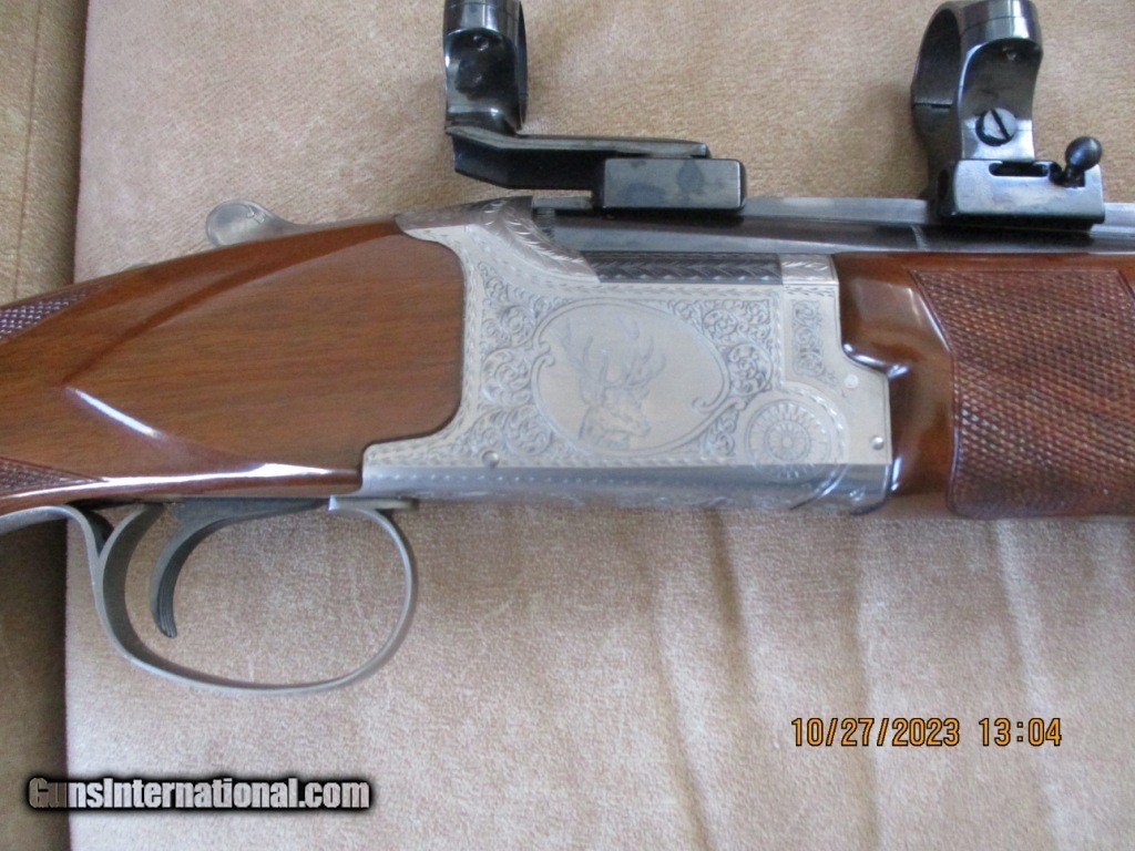 Description: Winchester Grand European double over under in 9.3 x 74R caliber. Has 23 1/2" barrels with ejectors. Comes with EAW Quick Lock rings and bases (1") for 100% return to zero. Comes in Winchester case with locks. Shipping is $40.00, to the CONUS but does not include insurance. If wanted it is extra. $4200. Price Reduced Will consider reasonable offers. SOLD Rifle Caliber: 9.3x74mmR Manufacturer: Winchester Model: Grand European Ejectors: Yes Condition: V Good Metal Condition: V Good Wood Condition: V Good Bore Condition: V Good Barrels: 2 |