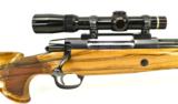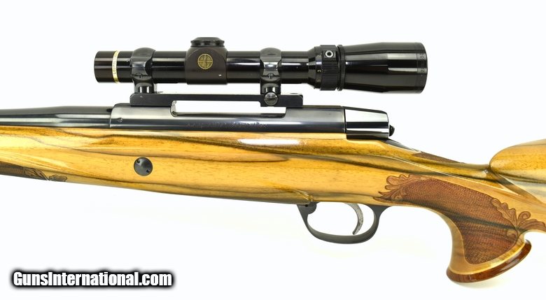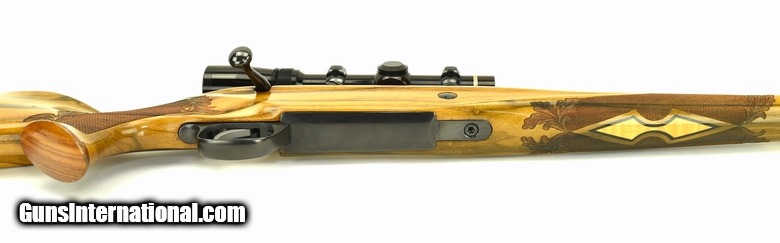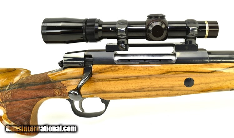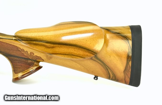 Description: Kleinguenther K14 .375H&H caliber rifle. Vintage Kleingunther rifle with beautiful Harry Lawson custom stock. The rifle is in excellent condition and top quality work that Kleingunther is known for. The stock is of gorgeous Circassian walnut and features Lawson’s signature carving and inlays. Topped with a Leupold 1.5x5 scope. An outstanding custom rig.