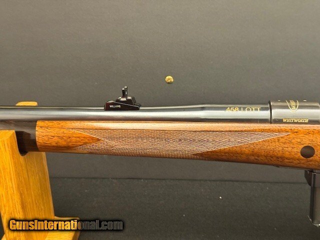 Description: **EXCELLENT CONDITION ** INTERARMS MARK X 458 LOTT SAFARI RIFLE WILL MAKE AN EXCELLENT AFRICAN SAFARI RIFLE ARE ANY BIG GAME THESE 458 LOTTS ARE VERY HARD TO FIND IN THIS CONDITION 5 ROUND ACCURACY CLIP HAS A PIECE OF IVORY MOUNTED IN THE HEEL SEE PICTURES , I DONT THINK THEY ARE IN CURRENT PRODUCTION .