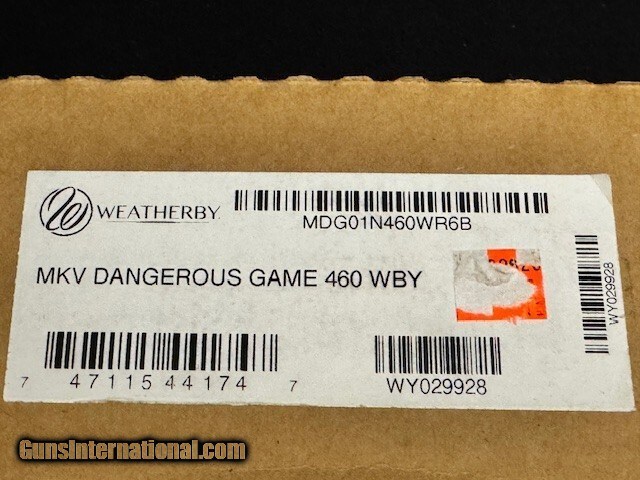 Description: **NEW IN BOX** WEATHERBY 460 MARK V MAGNUM DANGEROUS GAME RIFLE FROM MY PERSONAL COLLECTION NO LONGER IN PRODUCTION WILL MAKE AN EXCELLENT ADDITION TO YOUR COLLECTION OR A GREAT AFRICAN SAFARI RIFLE OR ANY BIG GAME COMES WITH MUZZLE BREAK AND THE THREAD PROTECTOR** WYOMING MADE **