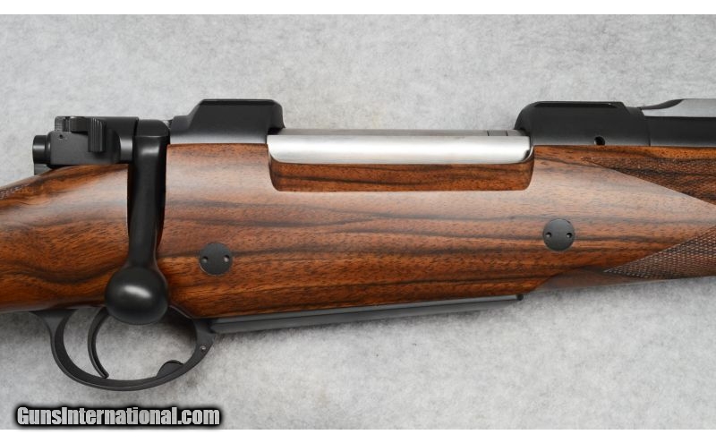 Description: SOLD Caliber Info: .400 H&H Metal Condition: Excellent. Wood Condition: Excellent. Bore Condition: Bright shiny with crisp rifling. Barrels: 26 Stock: Checkered walnut. Fore End: Checkered walnut. Butt Pad: Polymer recoil pad. Weight: 9-lbs., 7-ozs. Sights: Hooded front bead, 2-position rear blade. Item Location: Fort Worth, TX |
