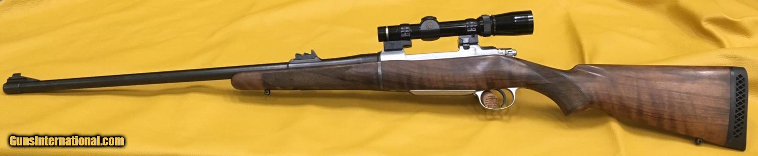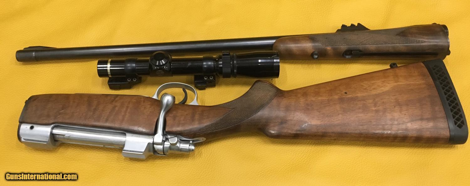 Description: Sold #21416. BRNO 602 375H&H Take down. 25” BRNO barrel 95% condition inside and out. 98% condition nickel factory finish receiver. Weight is 9 pounds14Oz without the 1.5 to 5 Leupold scope in BRNO mounts, 9 pounds without. Stock is in 90% condition with a LOP of 14 ¼” over a 1” pad. I did the take down mechanism in 1998 for a friend going to Africa . Then practical, rugged , and reasonably priced was the idea . SOLD Manufacturer: BRNO Model: 602 Take down Serial Number: 21416 Caliber Info: 375HH Barrels: 95 LOP: 14 1/4 Weight: 9 Lbs. 14 Oz. |