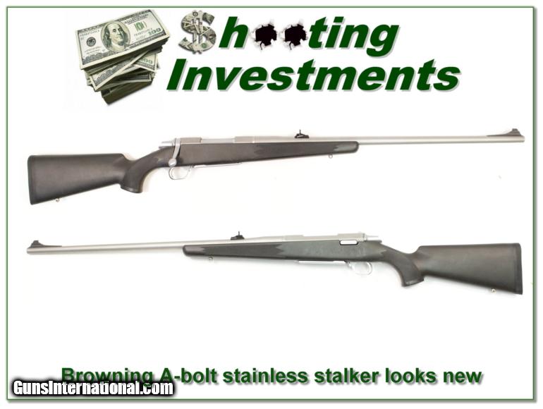 Description: Hard Weather and Dangerous game hunters, this is a no longer made A-bolt Stainless Stalker in 375 H&H. The gun looks new with no marks I see. If shot, not more than a few rounds. It will make a perfect gun for your next Alaskan hunting trip. Shipping and insurance is $30 or $18 more if you want it shipped in a new Plano hard case. Please email me with any questions or larger pictures. (I now consign quality firearms only 10%! Let me know if you have any you would like to sell!) [14-0704] Terms & Conditions Payment: Payment is by Money Order, Cashiers Check or Personal Check. I can now also accept MasterCard and Visa with a 3% convenience fee. PayPal can be used for some items but never firearms. Please let us know if you would like to pay via PayPal. Shipping: The shipping charge will be listed in each description. It is $30 for most guns. Some heavy guns or those insured for over $2000 may be higher. Shipments to Alaska and Hawaii are higher because air shipment is required. Most firearms are shipped within 5 days of receipt of payment. We prefer shipping at the beginning of the week to avoid firearms in transit over weekends. We package all shipments carefully and insure them for the full purchase price, rounded up to the next $100. In the unlikely event that damage occurs, it is important that you save all packaging material for the claims process. Optics are shipped Priority Mail and most other non-firearm shipments are shipped First Class. Returns: Our return policy is simple. If for any reason you are not pleased with your purchase, you may return your item for a refund. The only exception is ammunition, it cannot be returned. It is important to us that you are happy. Guns cannot be fired or dissembled before returning them and must be returned in the same condition as received. Notification of a return must occur with-in 3 days of receipt at your dealer. Shipping, convenience and dealer fees are not refundable and are the responsibility of the buyer. Lay-a-way: If needed, we offer a 60 day lay-a-way option on most firearms. It is 1/3 now, 1/3 in 30 days and 1/3 in 60 days. Lay-a-way firearm sales are final. Consigning your firearms with Shooting Investments: We will help you get top dollar for your firearms. While most local guns shops charge 20% or more, our fee is only 10% with a minimum of $50. At your local gun shop it might take months to sell. Selling on-line provides instant access to thousands of interested buyers. You won’t find any other on-line dealer willing to sell your firearms for only 10% or listing every gun on 4 separate s. Selling through an House typically costs 15% and you have to wait several months to sell and longer to receive funds. If properly priced, we will sell your firearms in a week or two. Send us an email or give us a call and we’ll explain how easy it is for you to get top dollar. Trading: We collect guns and usually just trade for guns we want to add to our collections. We often sell guns for others wanting to purchase one of ours. We find this the most fair to both of us. Our Commission is only 10% and we hold the gun you want until yours sells. Please contact us if you want to sell one of yours to buy one of ours. Help for California Buyers: We are happy to ship to California. It is the buyer’s responsibility to make sure any item you buy is legal in your state. We are also happy to help with your purchase of a firearm from someone other than us. If you see a gun you would like to buy but the seller can’t or won’t ship to California we can help. You buy the gun and have it shipped to us. We’ll then ship it to your California dealer. The cost for this service is only $30 + shipping. Let me know if we can help! SOLD |