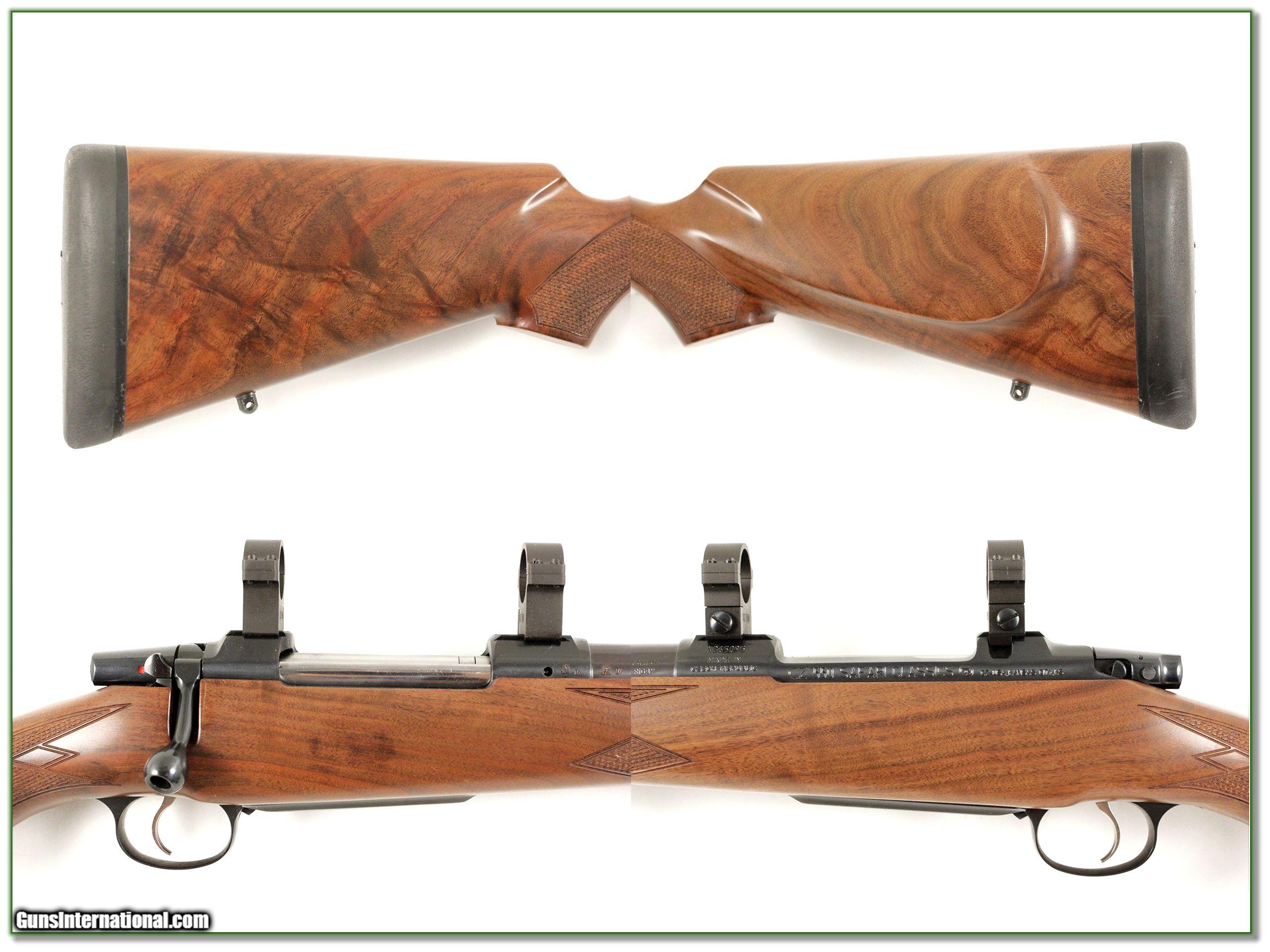 Description: Collectors and African hunters, this is a beautiful and like new CZ 550 Safari Classics (not to be confused with Safari American!) in the hard-hitting 416 Rigby. It has outstanding wood figure and I see no marks on blue or wood! Comes with factory rings and if fired I can’t tell! I am selling this one on consignment and as such, lay-a-way can’t be used. It does of course have the standard 3-day inspection. Shipping and insurance is $39 or $19 more if you want it shipped in a new Plano hard case. Please email me with any questions or larger pictures. (Consign your quality firearms with Shooting Investments for only 10%! Let me know if you have any you would like to sell!) 17-0891 Payment: Payment is by Money Order, Cashiers Check or Personal Check. I can now also accept MasterCard and Visa with a 3% convenience fee. PayPal can be used for some items but never firearms. Please let us know if you would like to pay via PayPal. Shipping: The shipping charge will be listed in each description. It is $39 for most long guns and $29 for most handguns. Some heavy guns or those insured for over $2000 will be higher. Shipments to Alaska and Hawaii are higher because air shipment is required. Most firearms are shipped on Tuesday and Thursday and usually in 5 days of receipt of payment. We package all shipments carefully and insure them. For long guns you can purchase a new Plano case for $19. They now cost us $22 when buying 100 at a time. Optics are shipped Priority Mail and most other non-firearm shipments are shipped First Class. Returns: Our return policy is simple. If for any reason you are not pleased with your purchase, you may return your item for a full refund of purchase price. Ammunition cannot be returned. It is important to us that you are happy. Guns cannot be fired or dissembled before returning them and they must be returned in the same condition as received. Notification of a return must occur with-in 3 days of receipt at your dealer. Shipping, convenience and dealer fees are not refundable and are the responsibility of the buyer. Lay-a-way: If needed, we offer a 60 day lay-a-way option on most firearms. It is 1/3 now, 1/3 in 30 days and 1/3 in 60 days. Lay-a-way firearm sales are final and if not completed the first payment cannot be returned. Consigning your firearms with Shooting Investments: We will help you get top dollar for your firearms. While most local guns shops charge 20% or more, our fee is only 10% with a minimum of $75. At your local gun shop it might take months to sell. Selling on-line provides instant access to thousands of interested buyers. You won’t find any other on-line dealer willing to sell your firearms for only 10% or listing every gun on 3 separate s. Selling through an House typically costs the seller 15% and the buyer an addition 15% (so 30%) and you have to wait several months to sell and longer to receive funds. If properly priced, we will sell your firearms in a few weeks. Send us an email or give us a call and we’ll explain how easy it is for you to get top dollar. Trading: Trading for use is really just buying your gun to re-sell. If you have a gun you want to trade, please email a picture and we will let you know what we can give or it. You will always get more if we sell it for you on consignment. Help for California Buyers: We are happy to ship to California. It is the buyer’s responsibility to make sure any item you buy is legal in your state. We are also happy to help with your purchase of a firearm from someone other than us. If you see a gun you would like to buy but the seller can’t or won’t ship to California they can ship to use and we’ll then ship it to your California dealer. The cost for this service is only $30 + shipping. Let us know if we can help! SOLD |